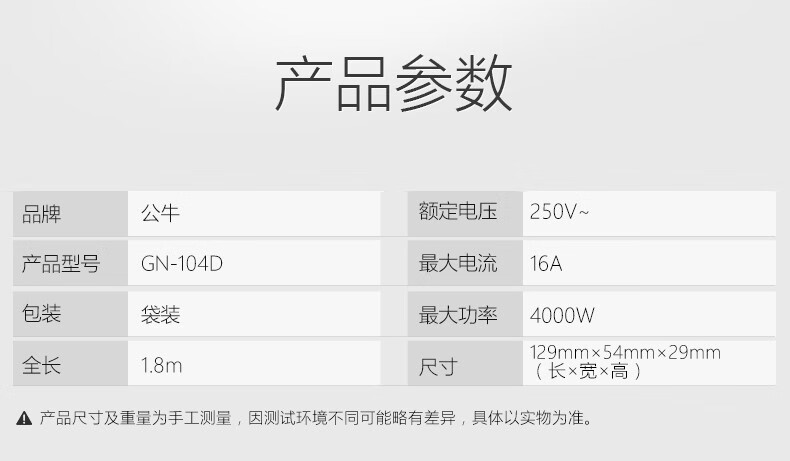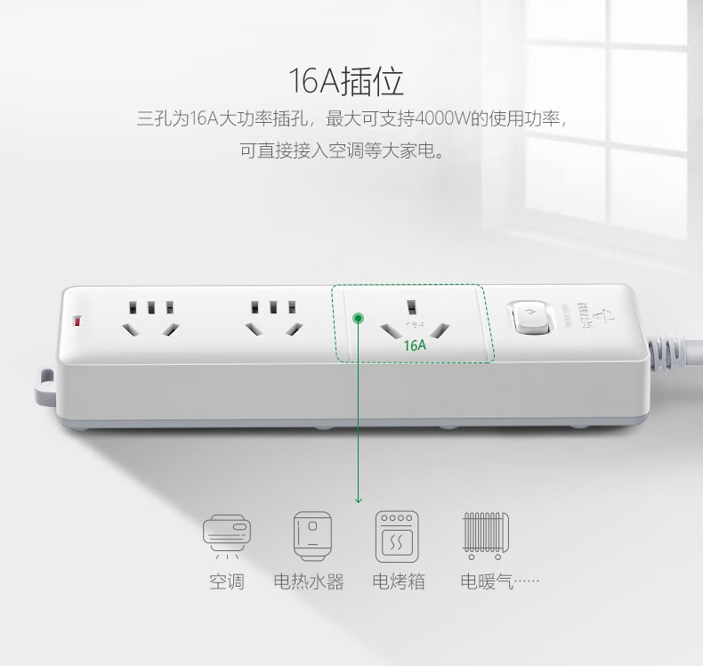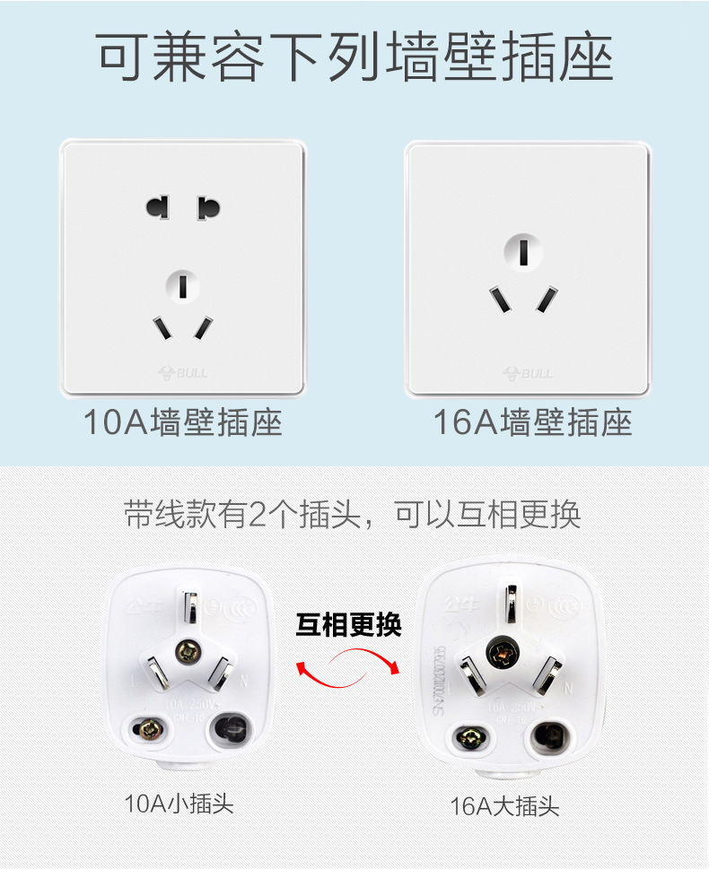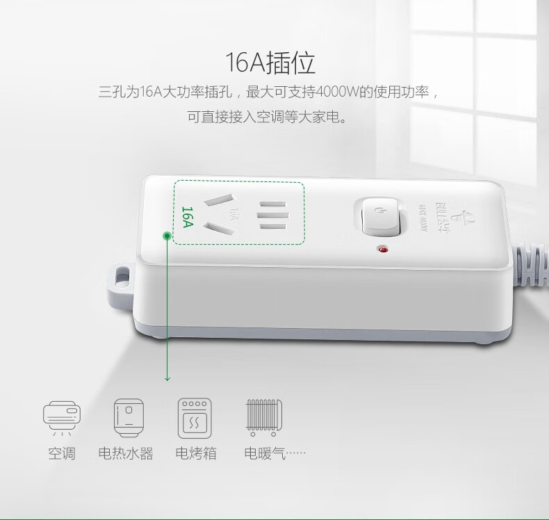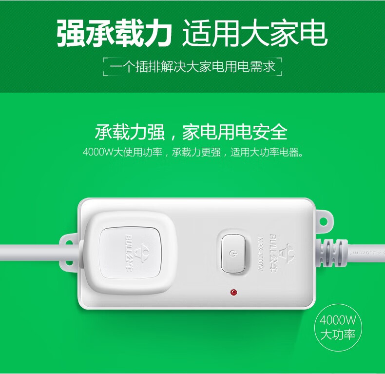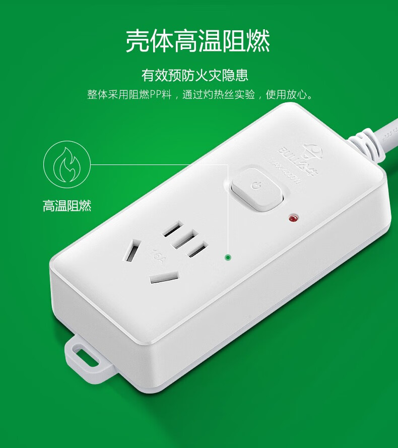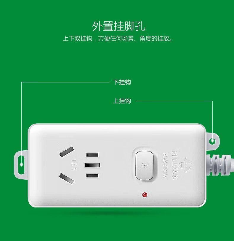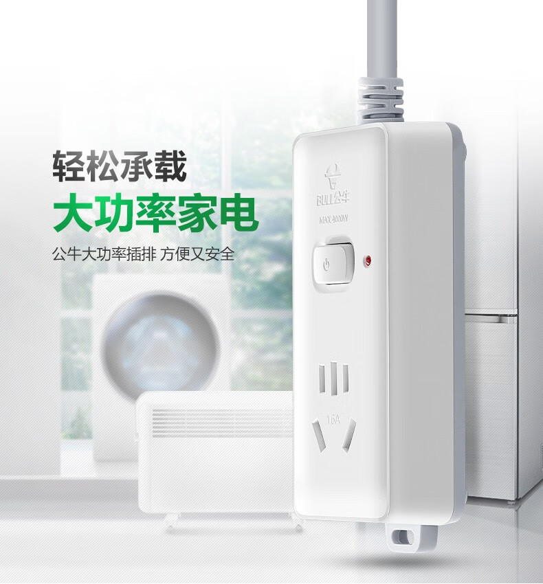 Bull (BULL) 16A electric heater special power strip 3000W electric heater plug-in extension cord electric oil heater 4000W high-power heater plug-in stove 16A large hole drag strip 16A 1.8m 3-socket GN-406D free 10A plug