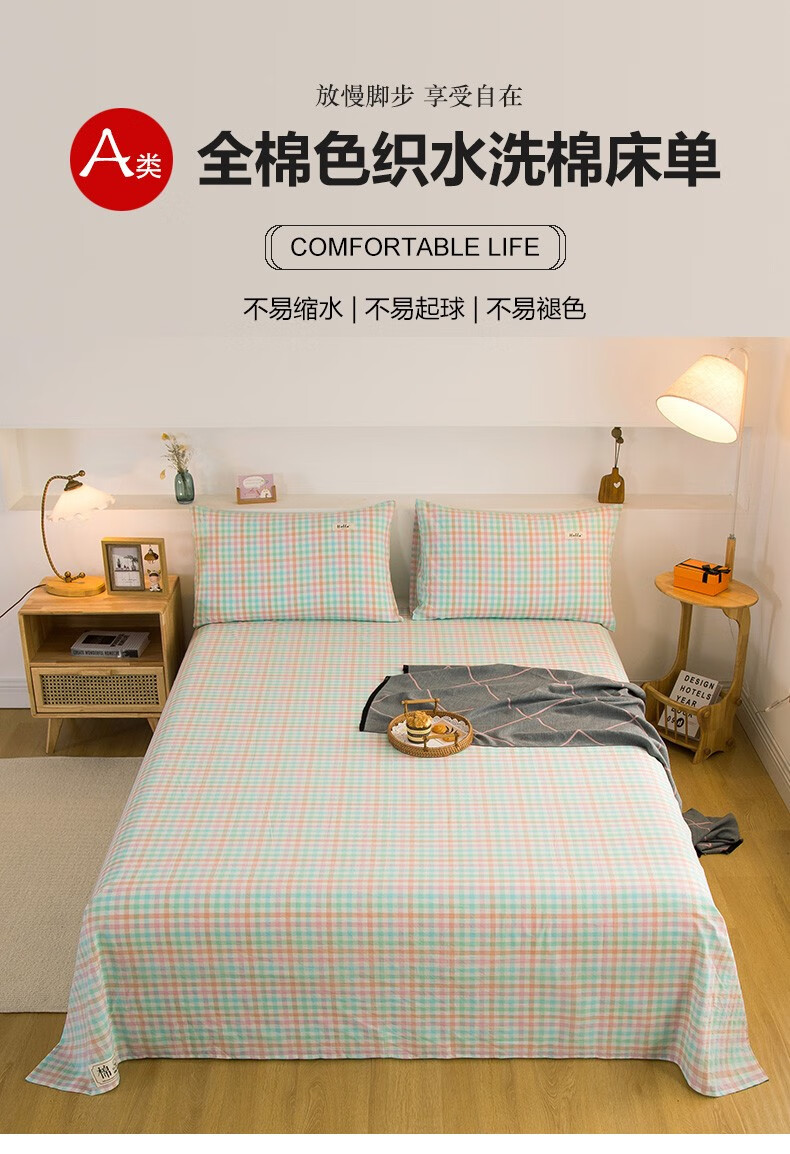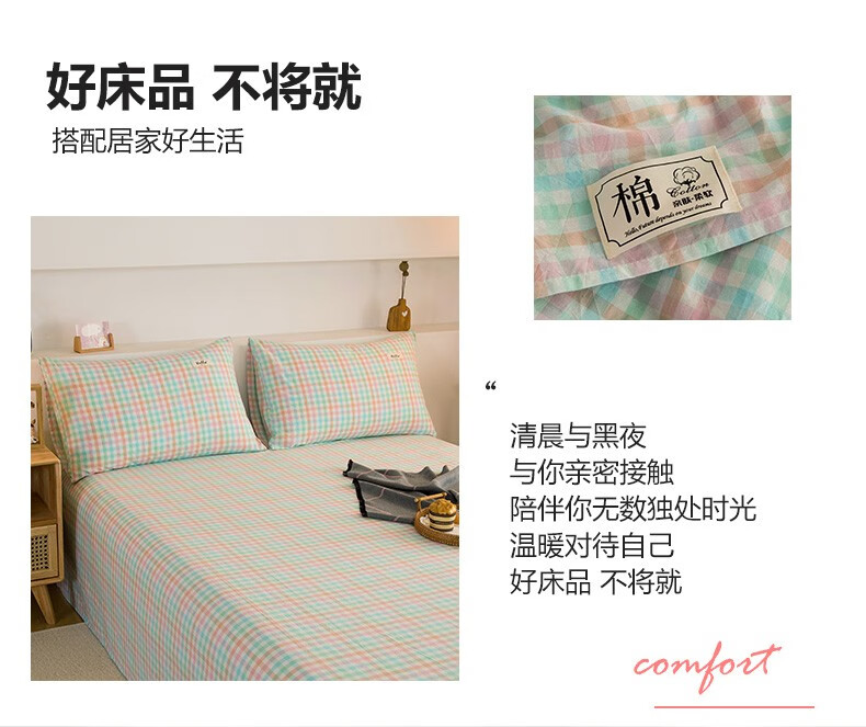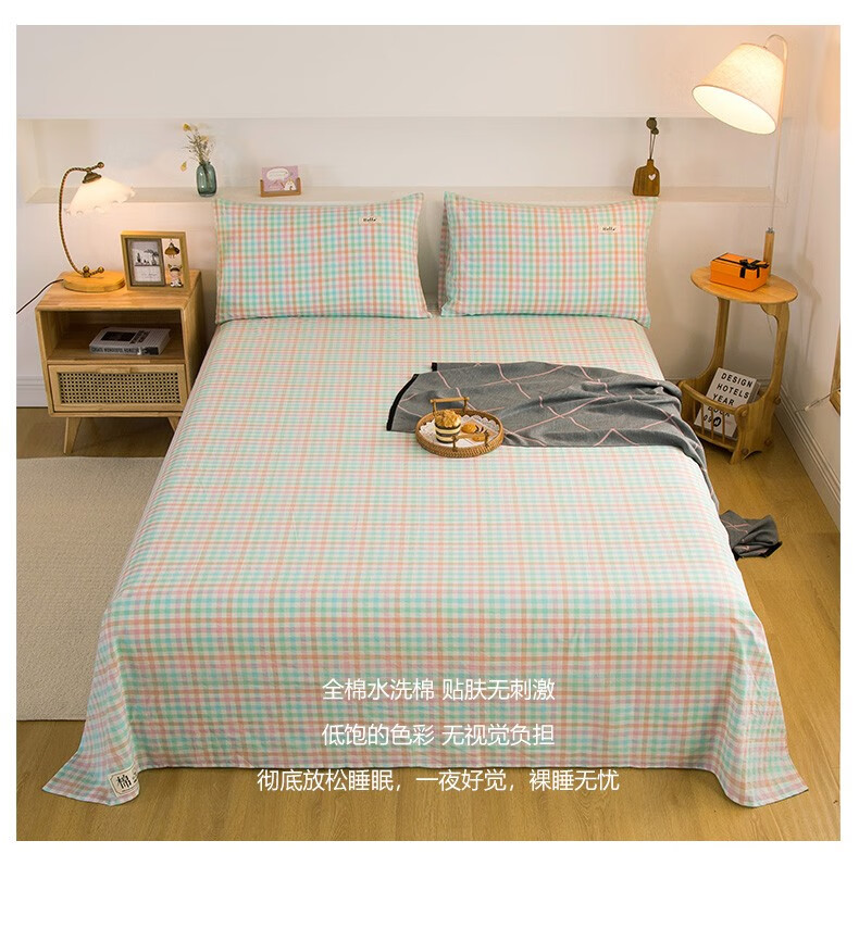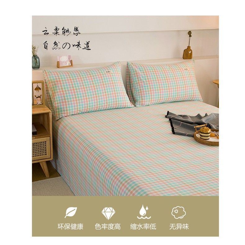 Nanjiren (NanJiren) home textile fitted sheet single piece pure cotton bed sheet bed cover can be equipped with cotton multi-piece anti-slip sheets thickened and tall thin mattress protector cotton washed cotton-light green fitted sheet 1.2X2.0 meters high 25cm