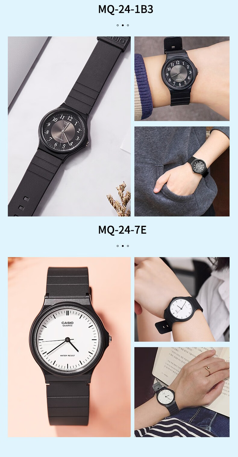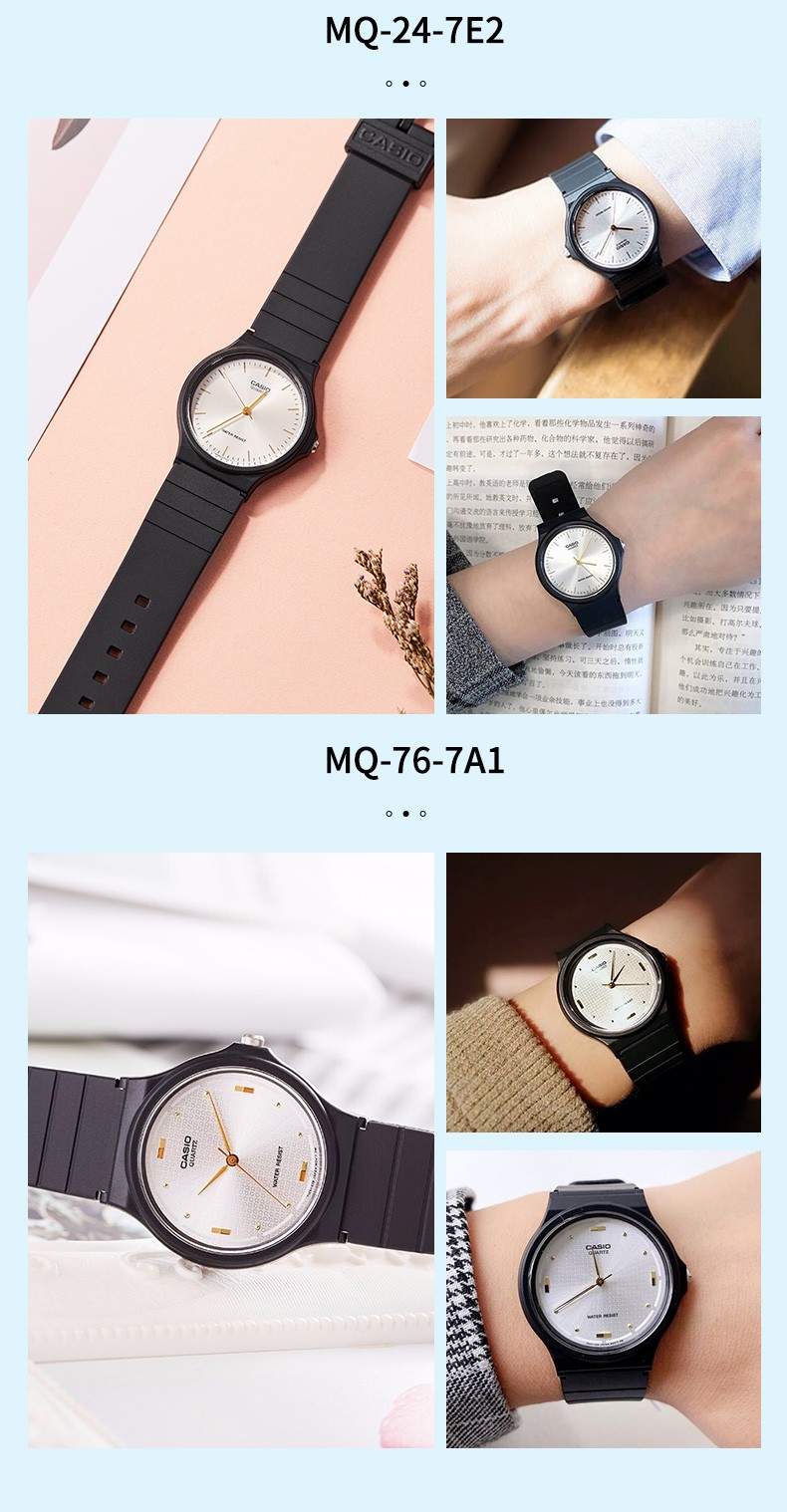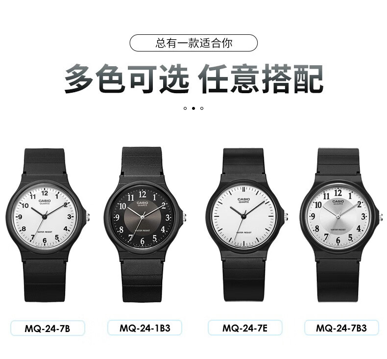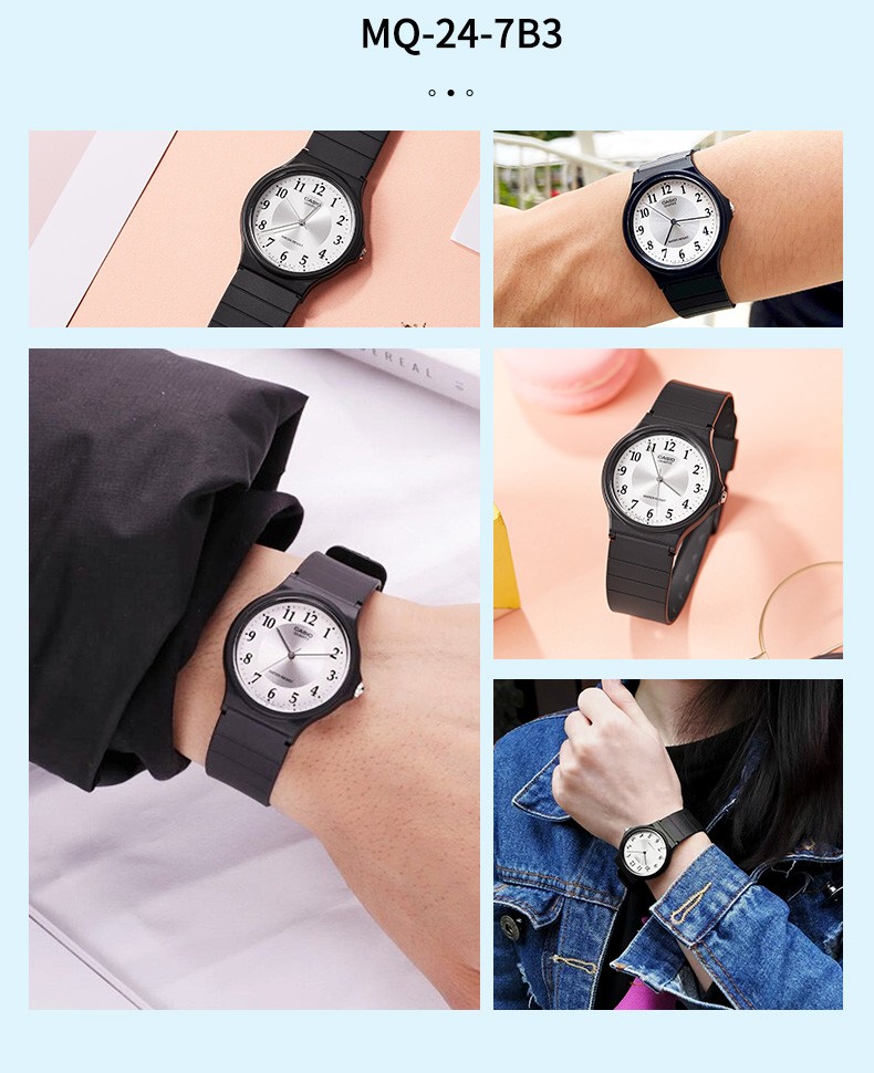 Casio watch student sports simple quartz small black watch casual pointer waterproof junior high school student watch Chinese Valentine's Day gift MQ-24-7B2