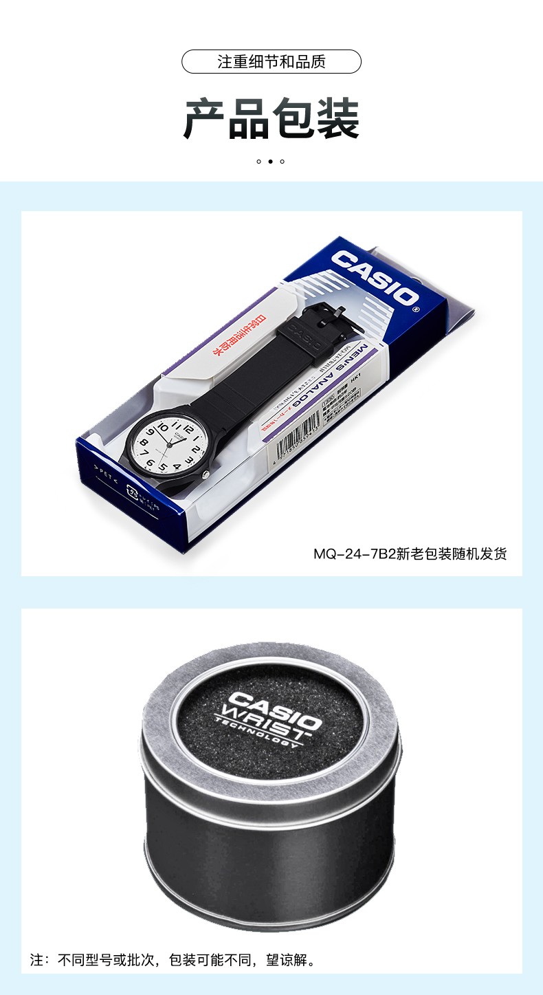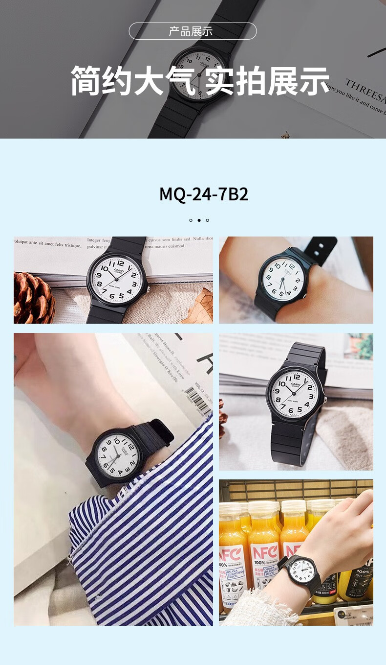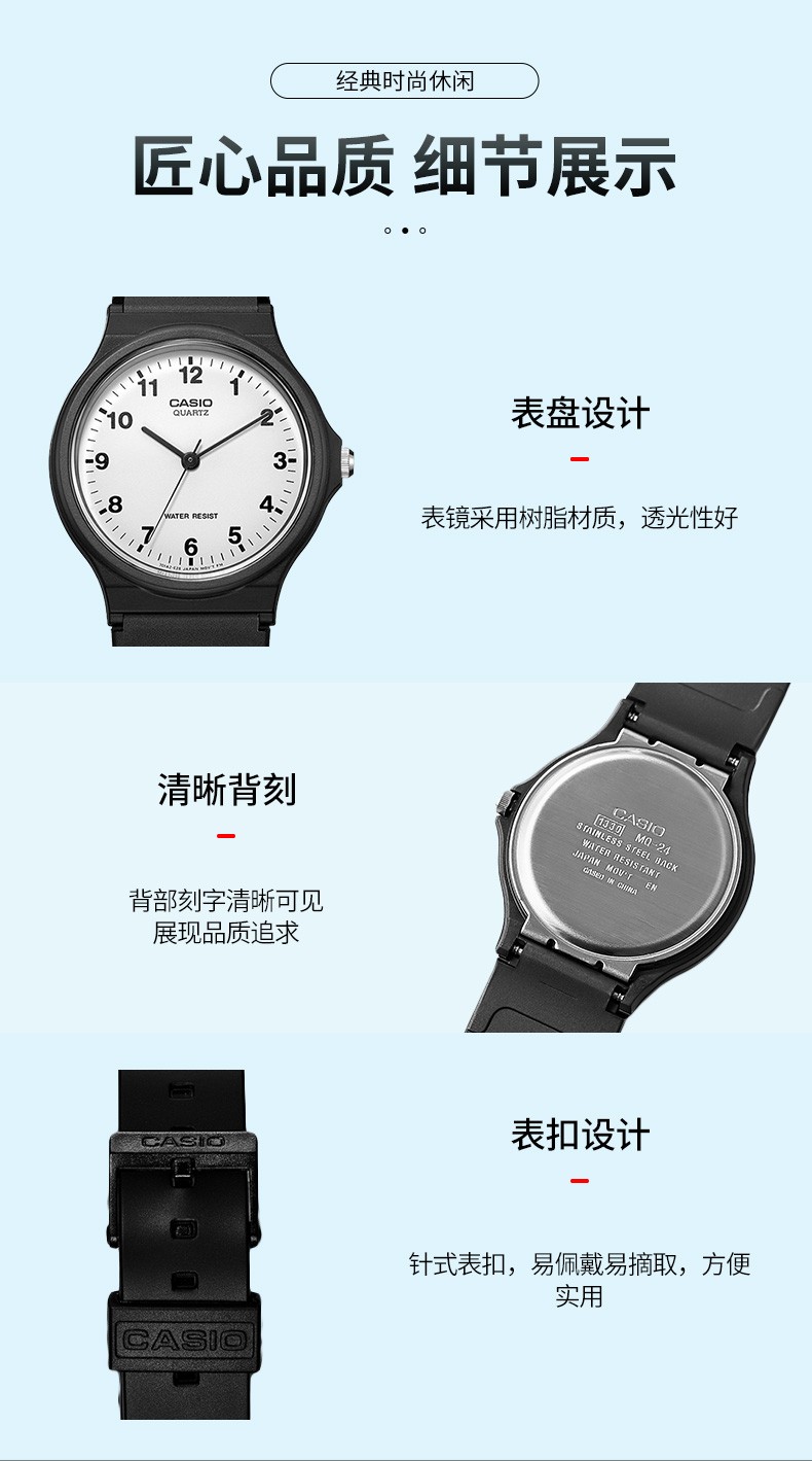 Casio watch student sports simple quartz small black watch casual pointer waterproof junior high school student watch Chinese Valentine's Day gift MQ-24-7B2