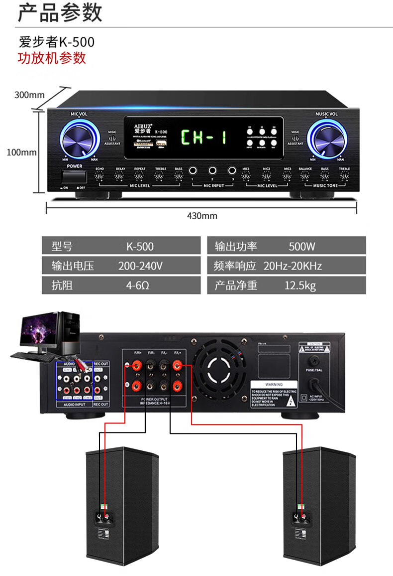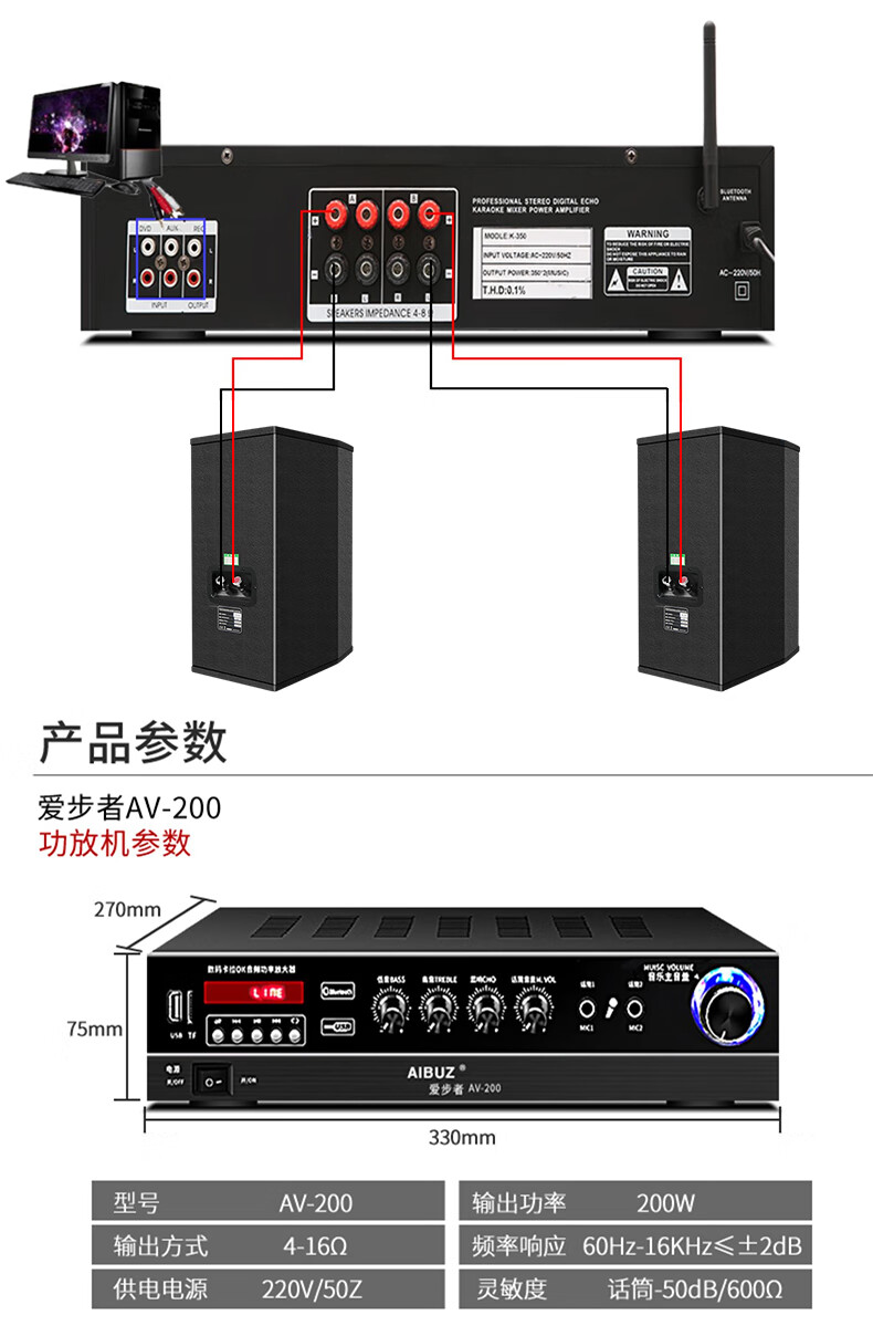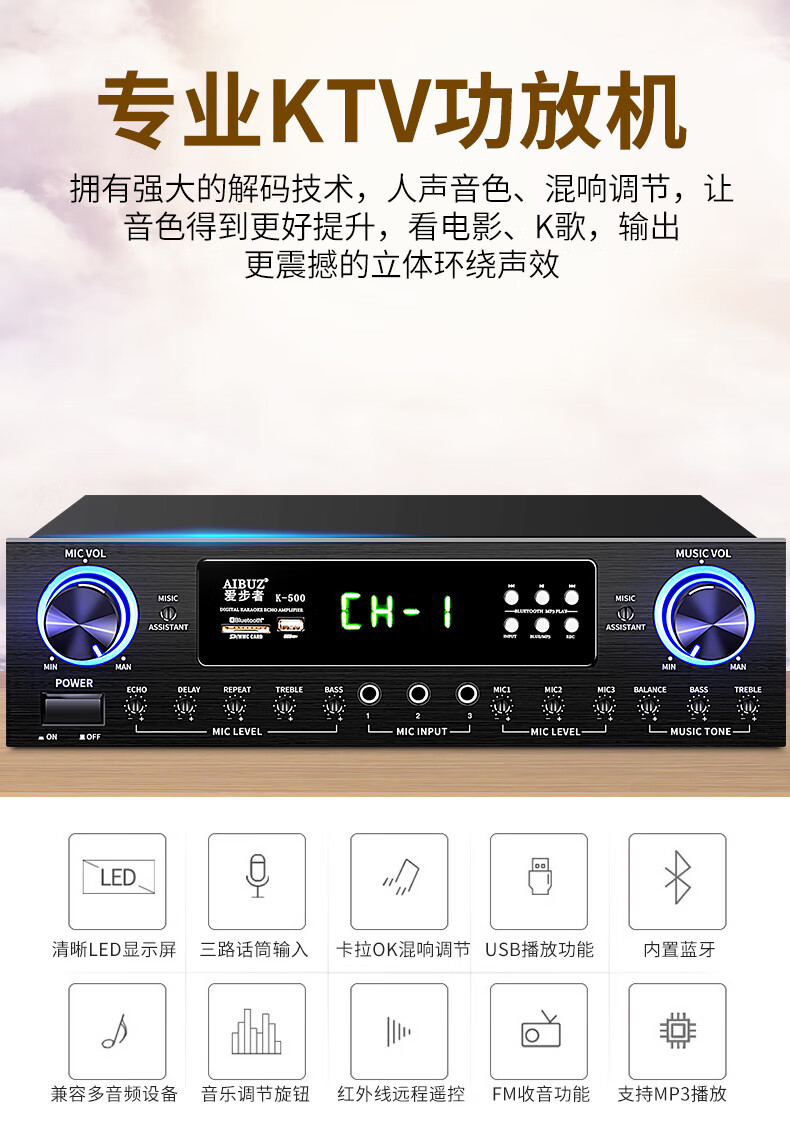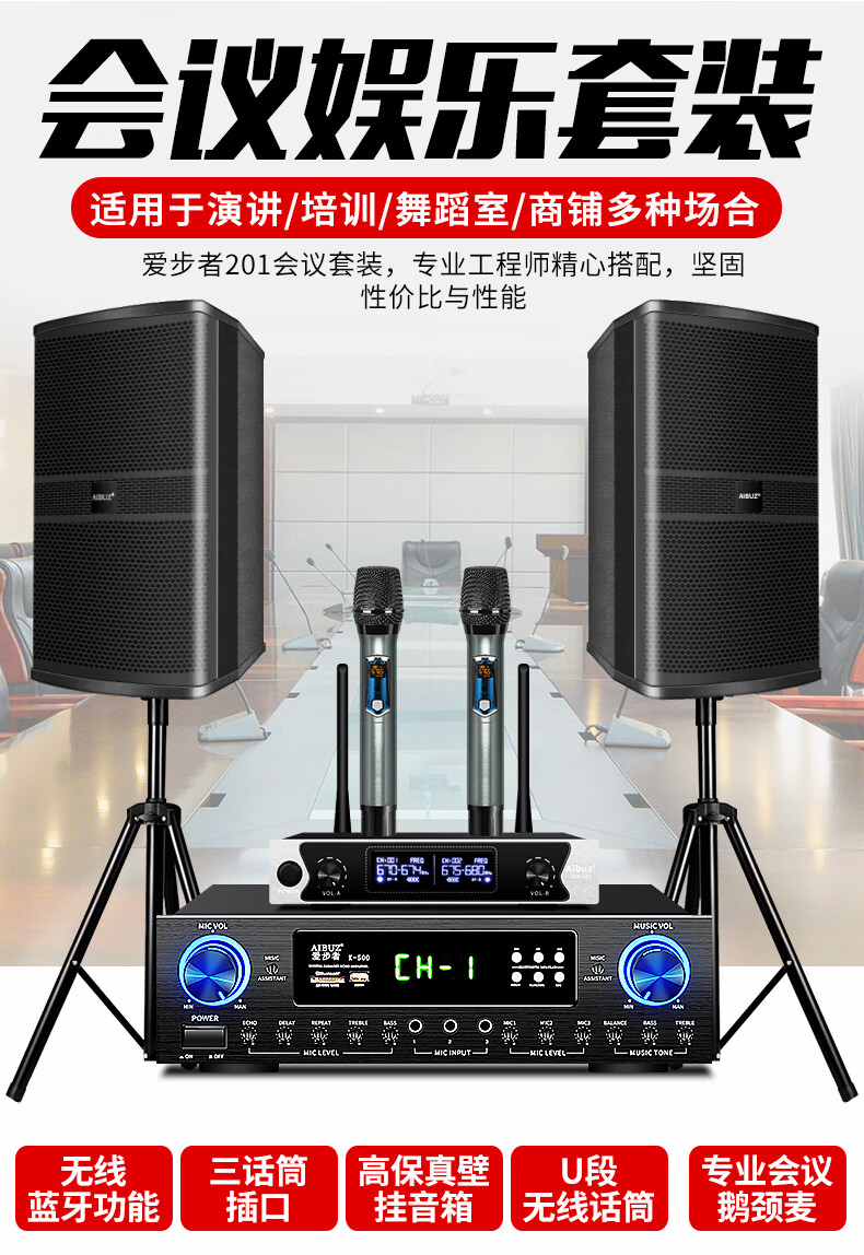 Aibuz 604 Home Bluetooth KTV Speaker Set Home Living Room Karaoke Professional Stage Conference Room Classroom Shop Training Speaker 2 6.5-inch Speakers
