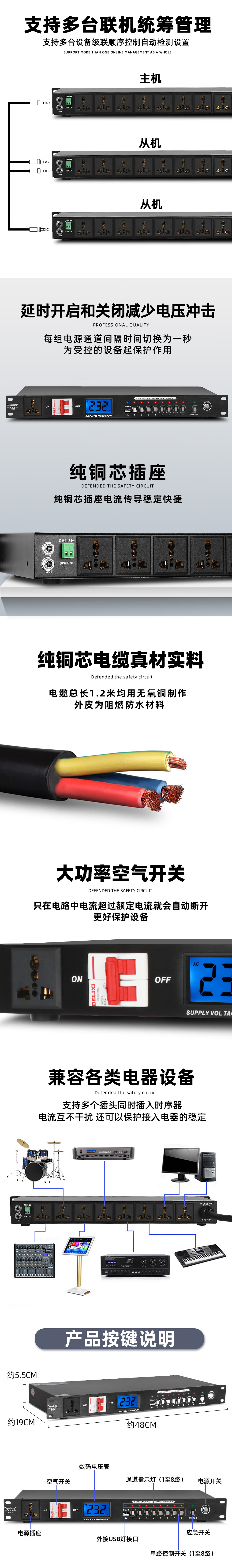 Depusheng Depusheng D628 power sequencer professional 9-way filter with display multi-functional stage conference controller engineering D628 sequencer