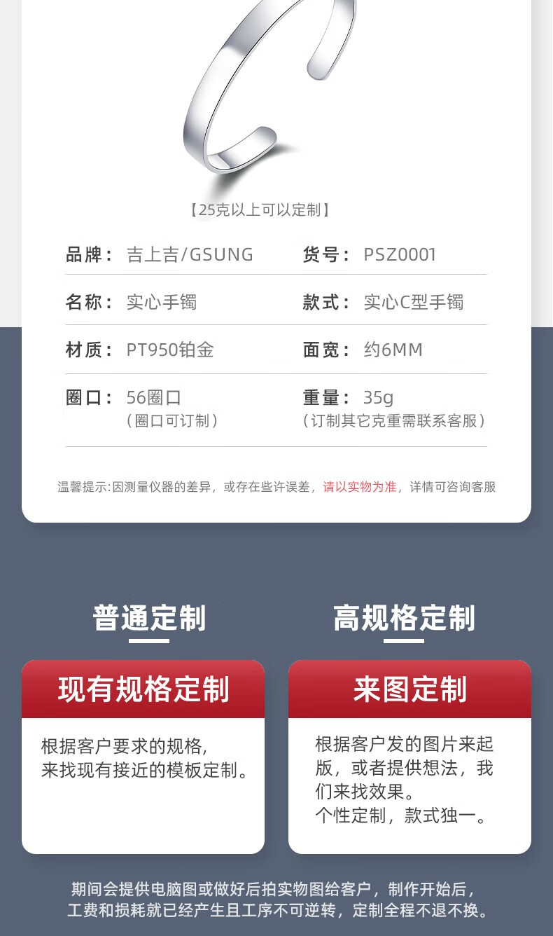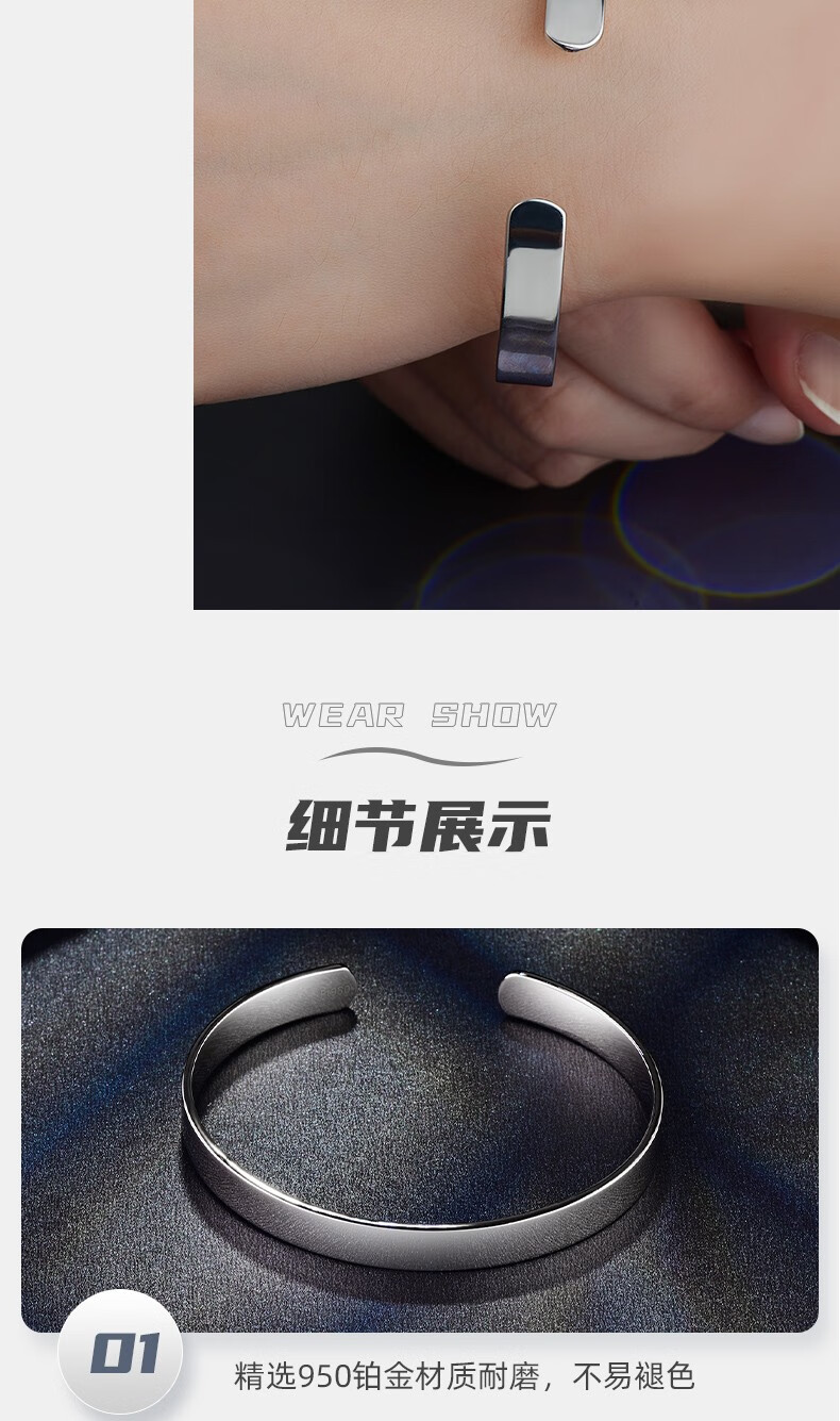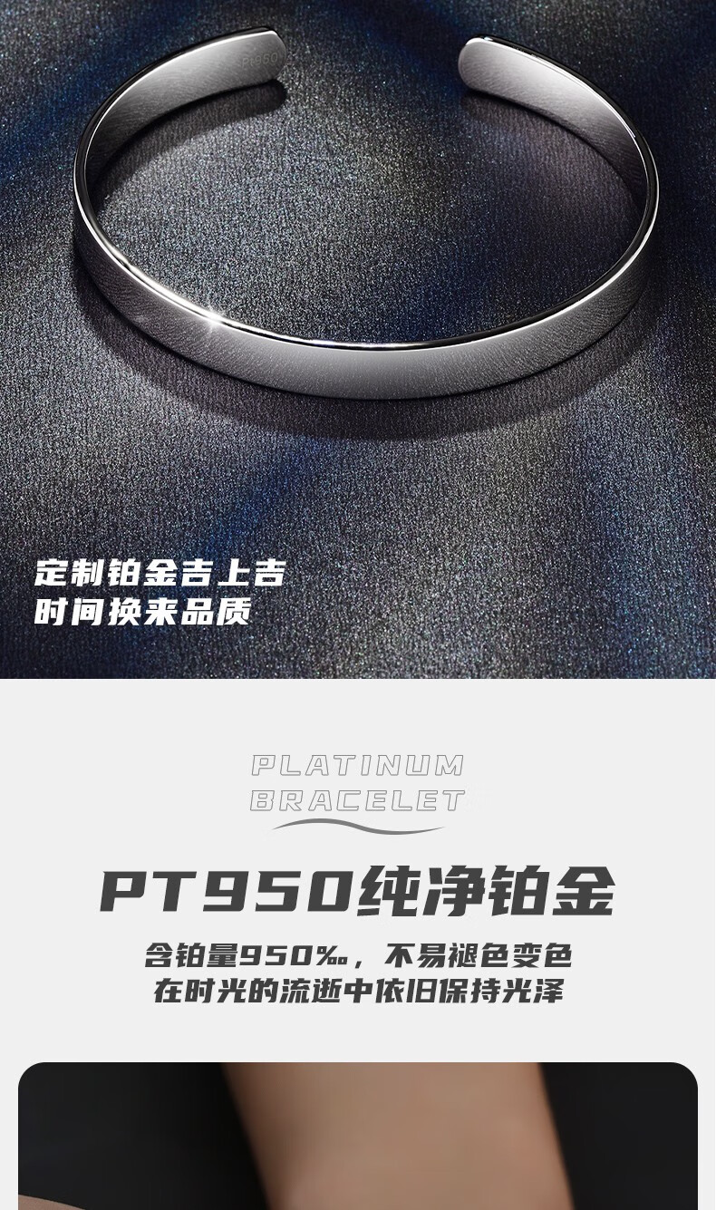 GsunGGSUNG Platinum Men's Solid Bracelet Couple's Bracelet Women's Platinum PT950 Simple and Fashionable Men's and Women's Model Customized Deposit Special Shot Single Shot Invalid No Shipment