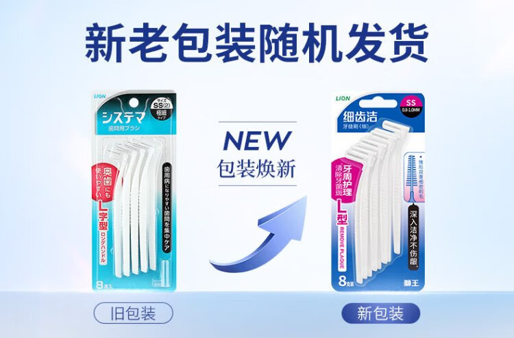 Lion Fine Teeth Cleaner Orthodontics Professional Gum Protecting Interdental Brush Superfine SS*8 L-shaped Reusable New and Old Packaging Mixed Hair