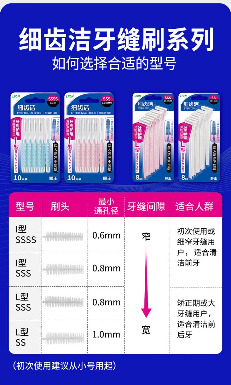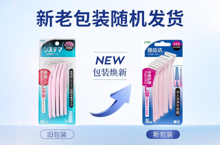 Lion Fine Tooth Cleaner Orthodontic Professional Gum Protecting Interdental Brush Ultra-fine SSS*8 L-shaped Reusable New and Old Packaging Mixed Hair