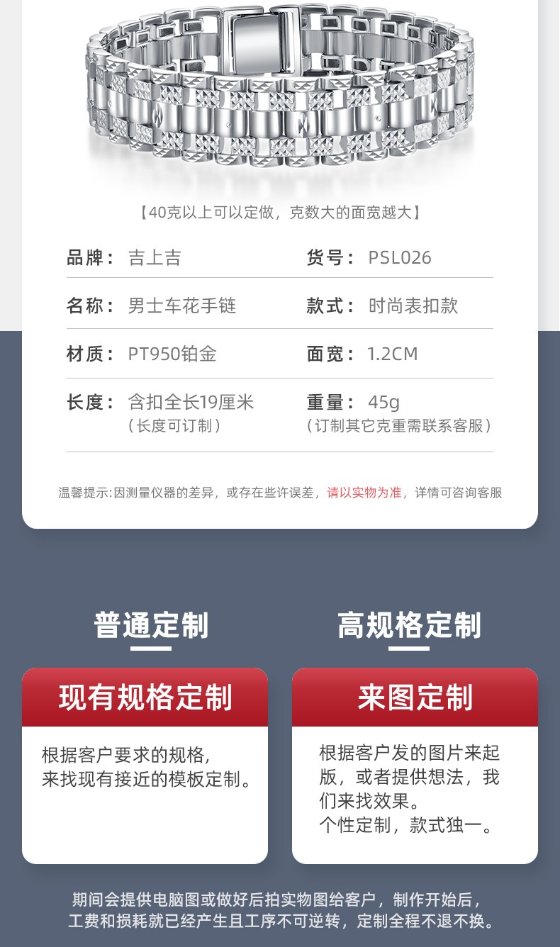 GsunGGSUNG pt950 platinum bracelet men's shiny platinum watch with bracelet customization needs to be customized. Customized gold special shot. Single shot is invalid and will not be shipped.