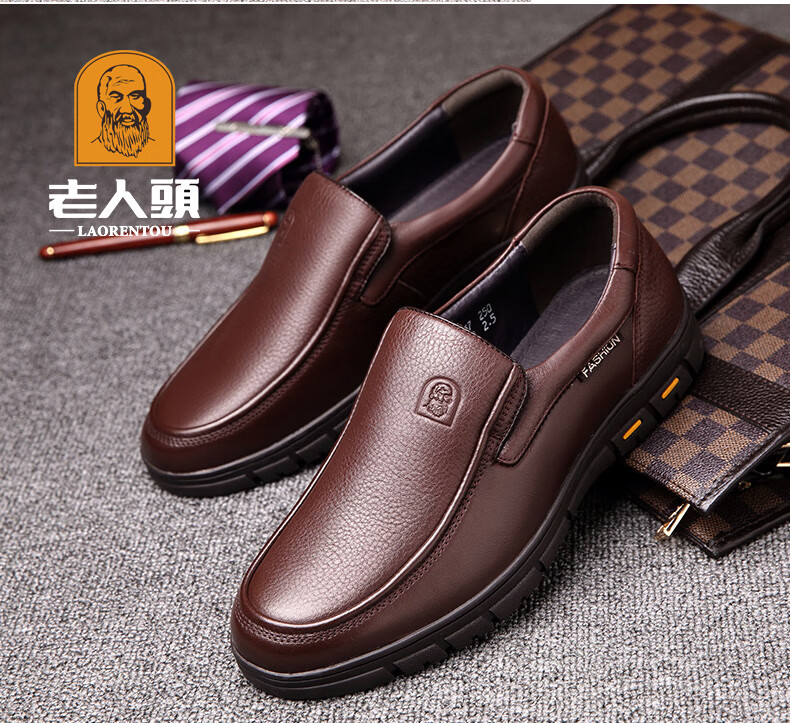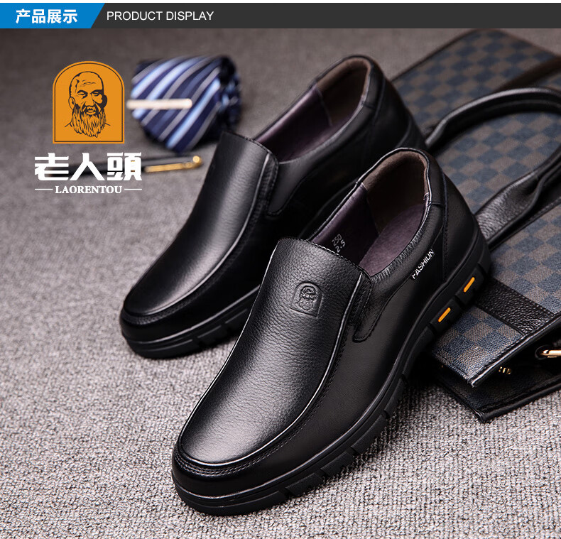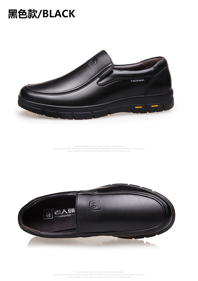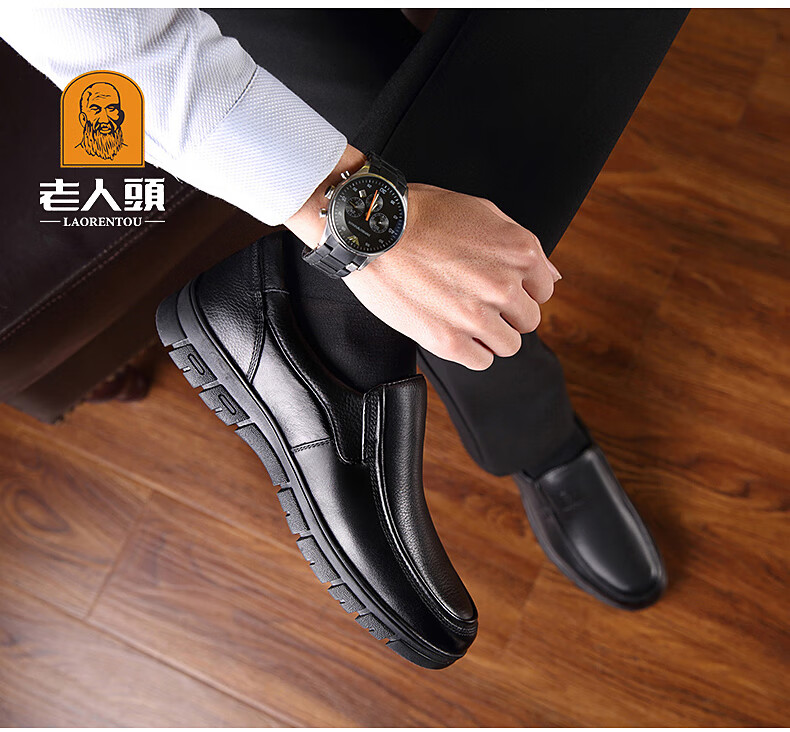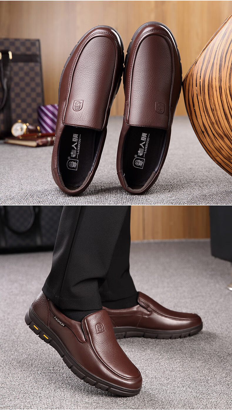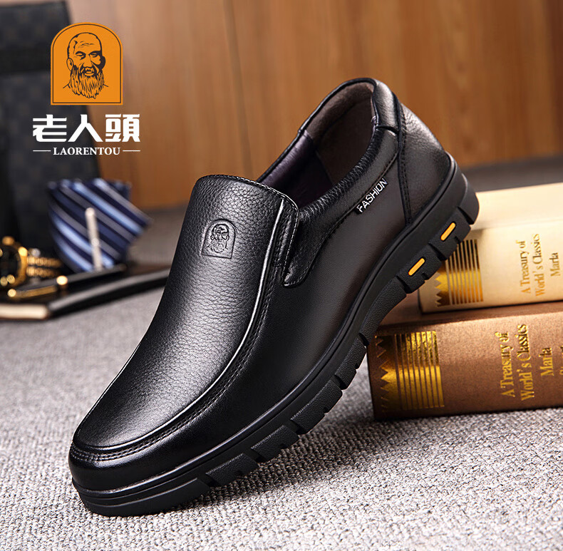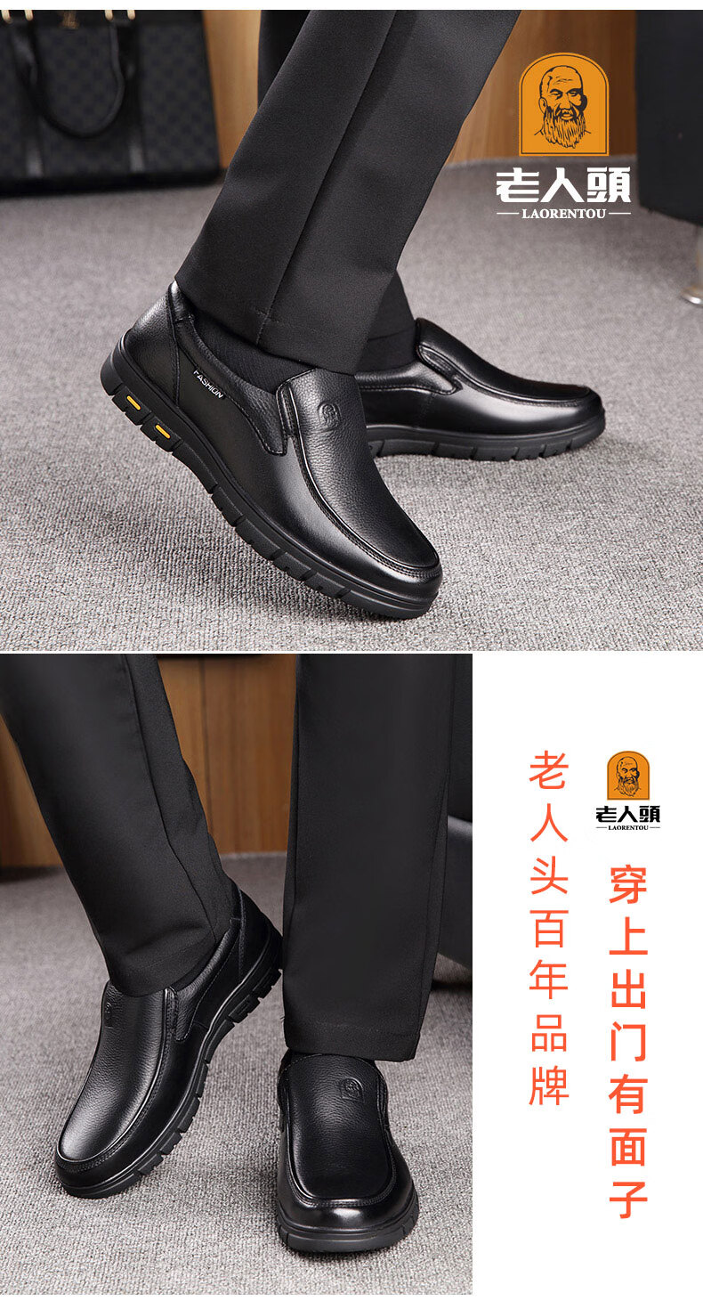 Old man's head (laorentou) leather shoes men's autumn and winter genuine leather men's shoes business casual shoes breathable middle-aged and elderly dad shoes soft sole comfortable leather shoes four seasons - black 41