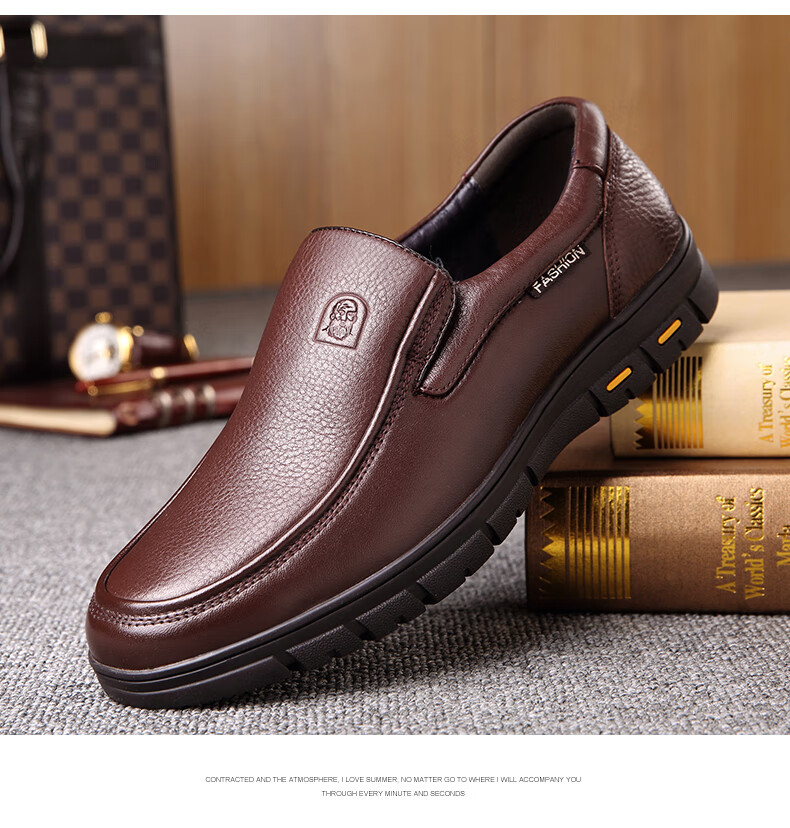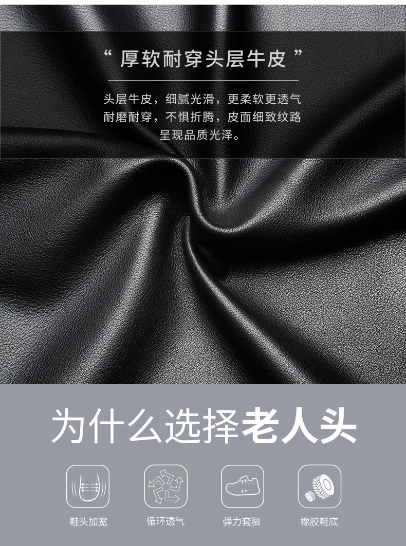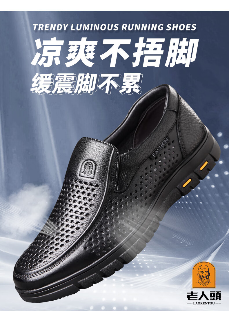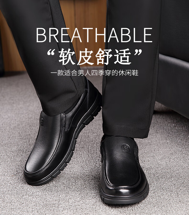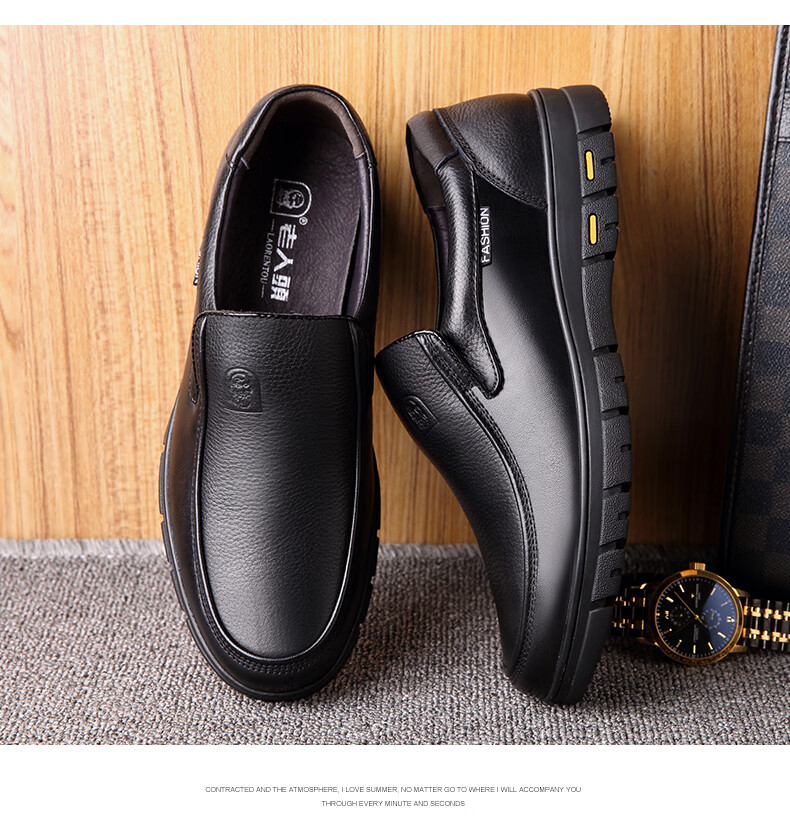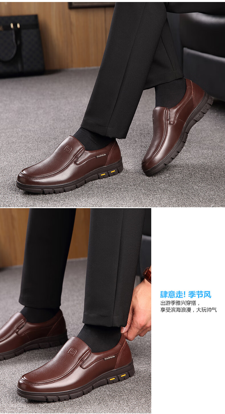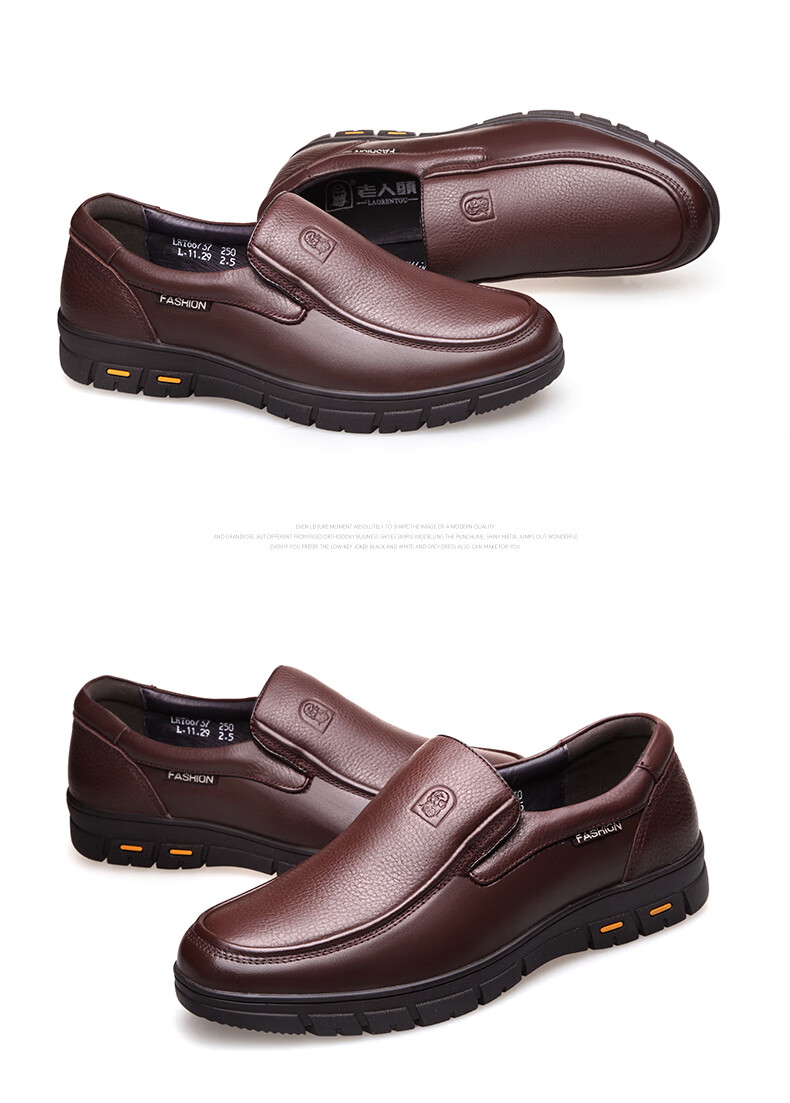 Old man's head (laorentou) leather shoes men's autumn and winter genuine leather men's shoes business casual shoes breathable middle-aged and elderly dad shoes soft sole comfortable leather shoes four seasons - black 41
