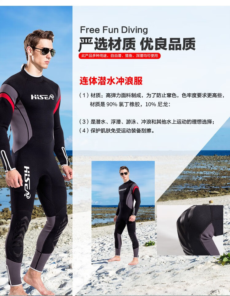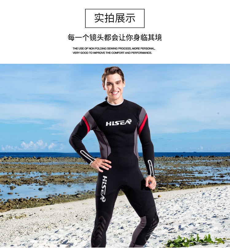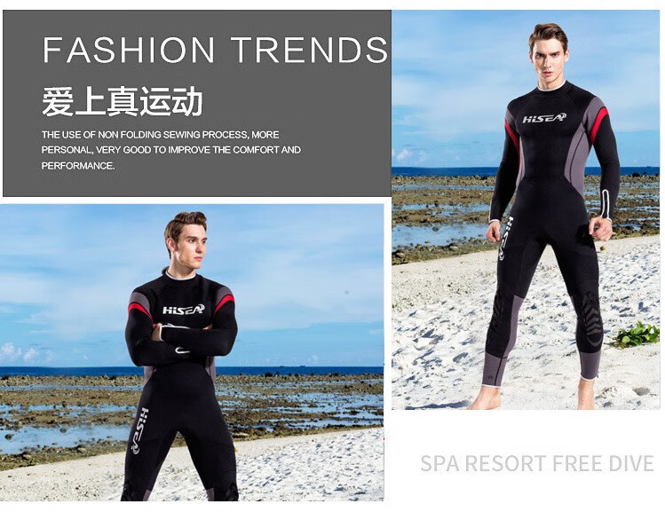 HiSEA2.5mm wetsuit men's one-piece long-sleeved thermal suit swimsuit SCR outdoor snorkeling suit surfing suit jellyfish suit gray M