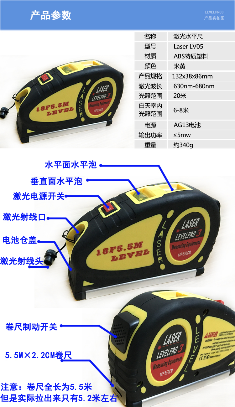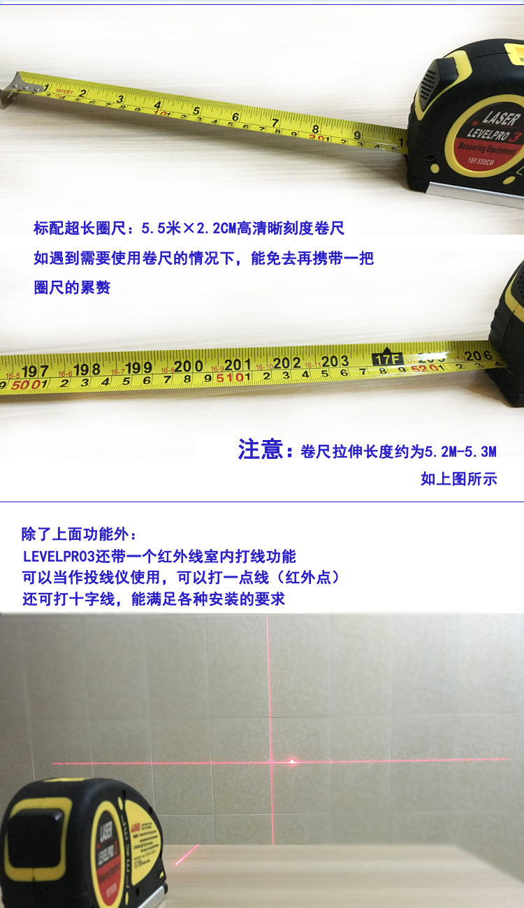 Douchemcl laser level infrared cross line one-point line meter line striker decoration level ruler machine with 3 batteries + 3 batteries
