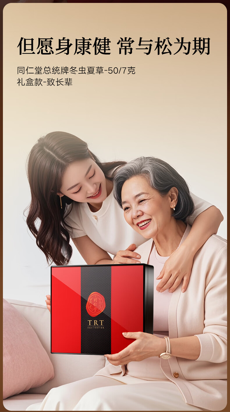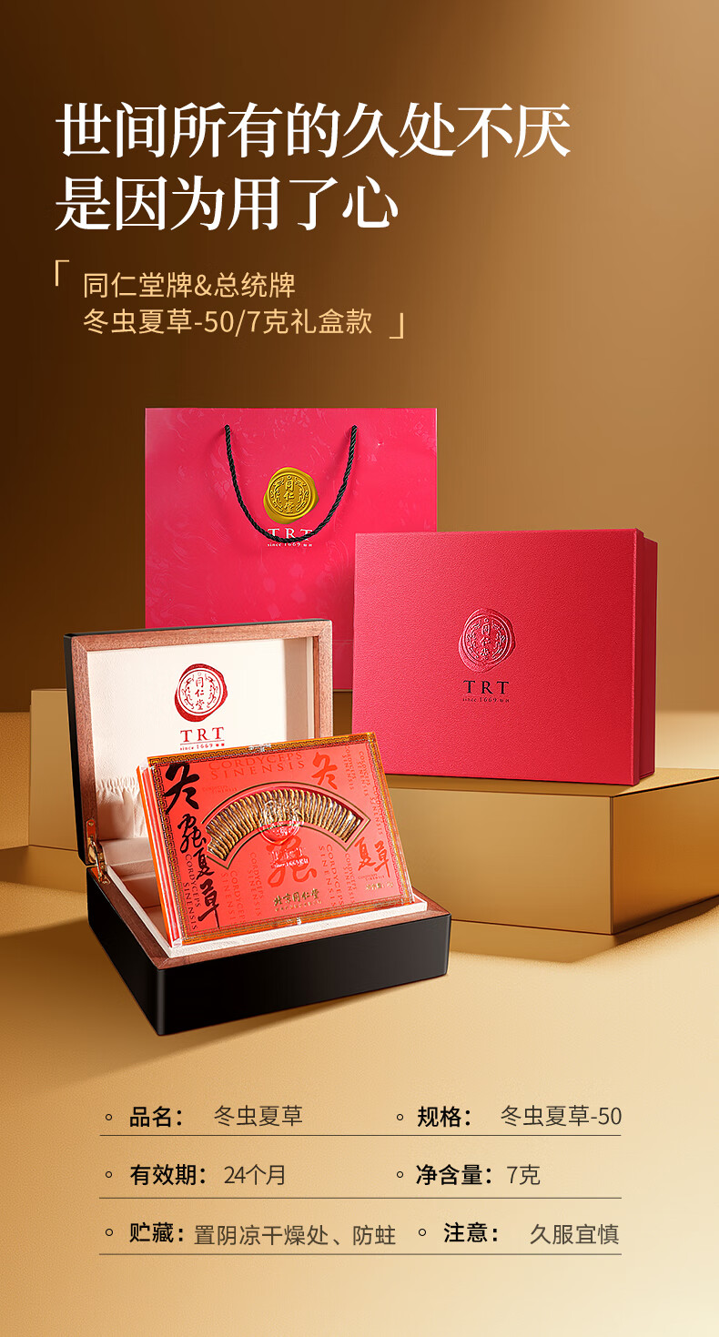 Tongrentang brand Beijing Tongrentang Cordyceps sinensis high-end nourishing gift box gift for the elders Fankaifugui About 5 pieces/g 7g*1 box