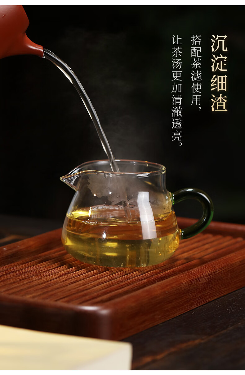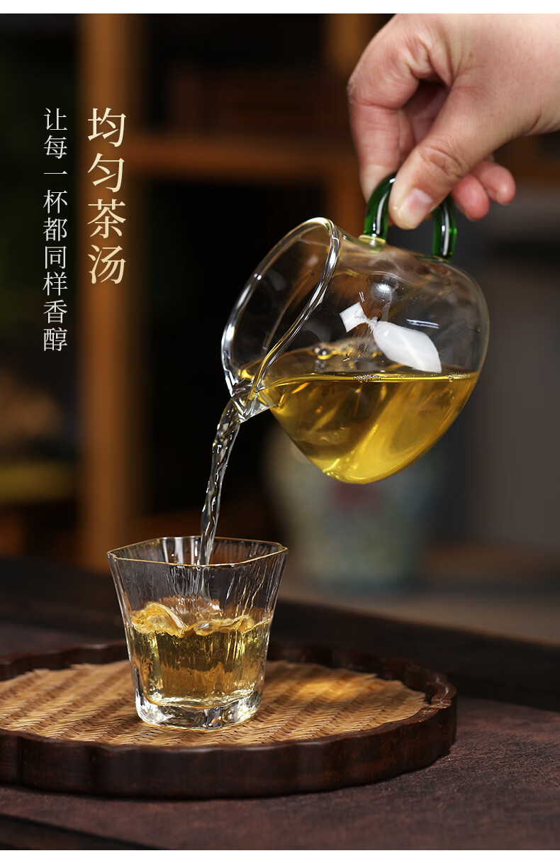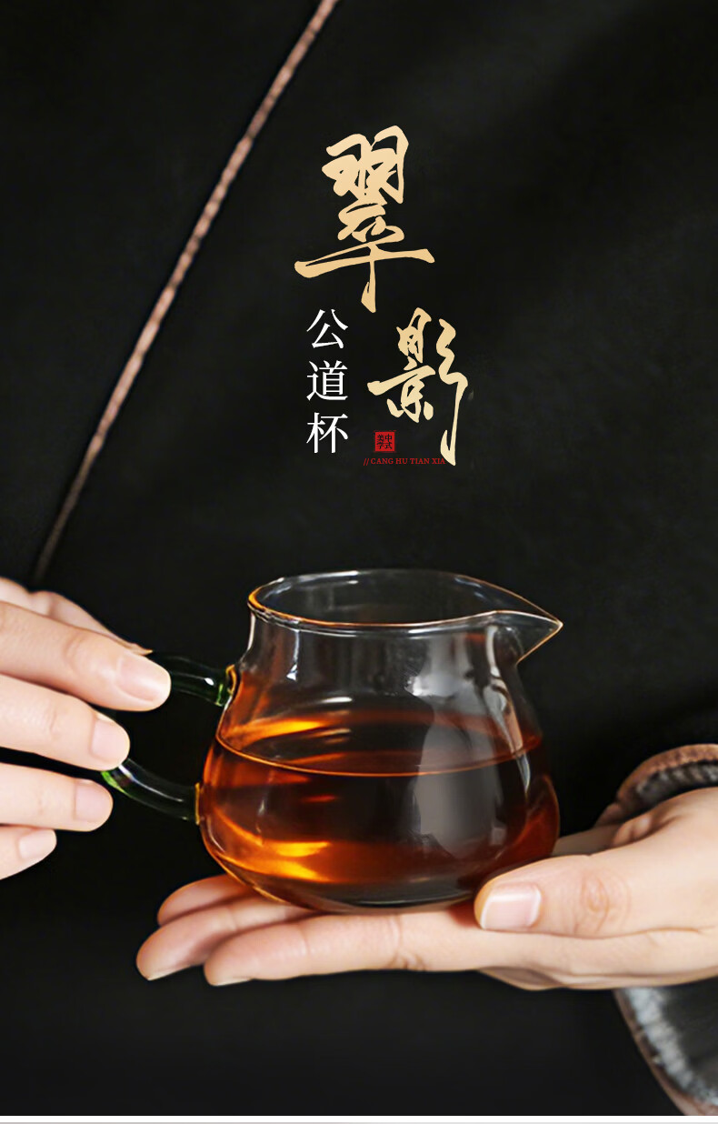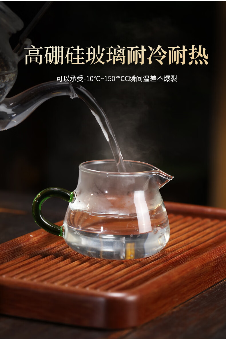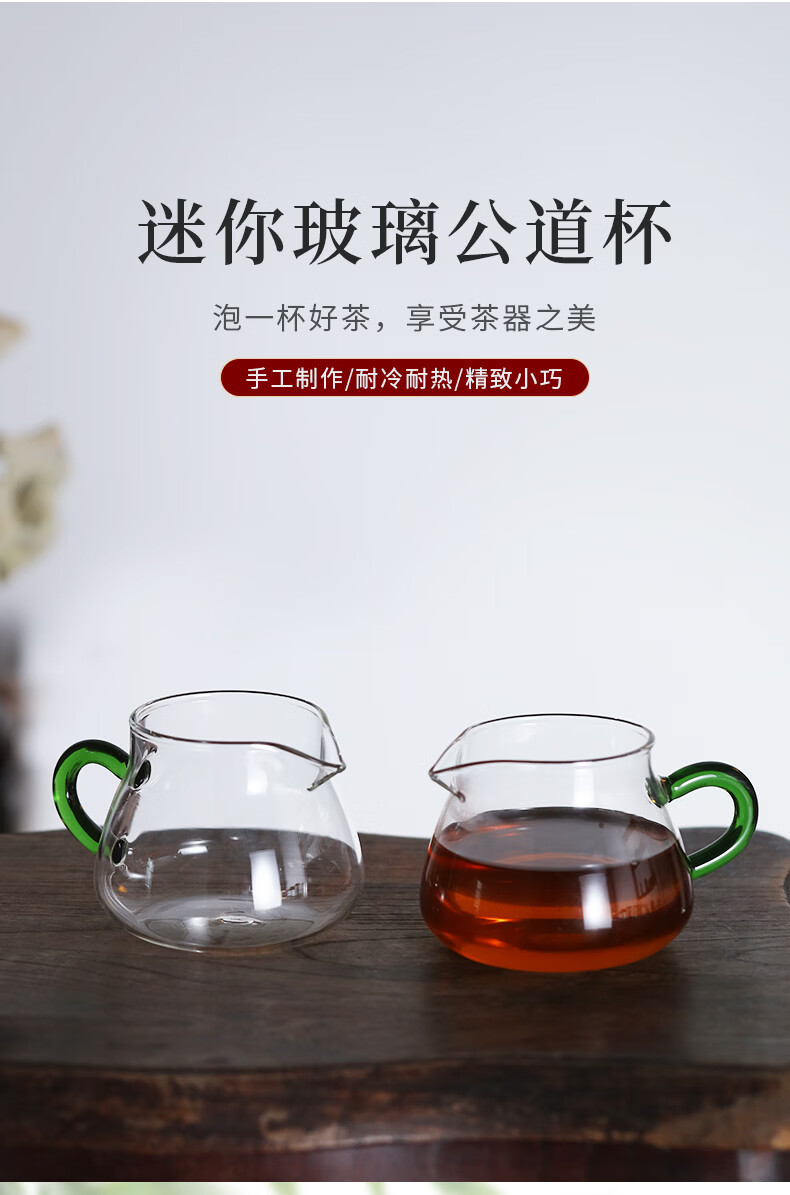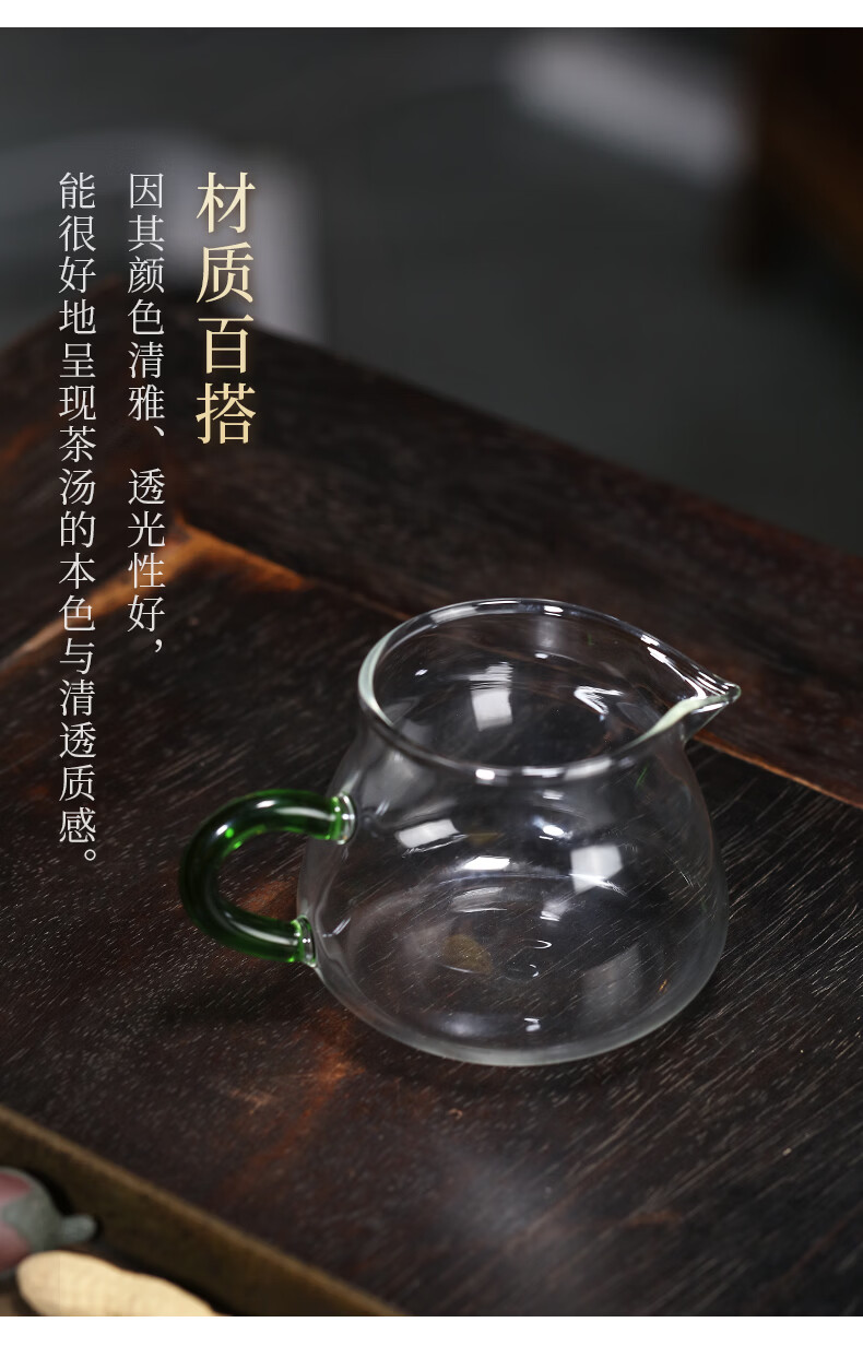 Zanghu Tianxia transparent heat-resistant glass fair cup with handle household thickened high temperature tea sea tea divider Kung Fu tea set accessories Cuiying fair cup 200ml