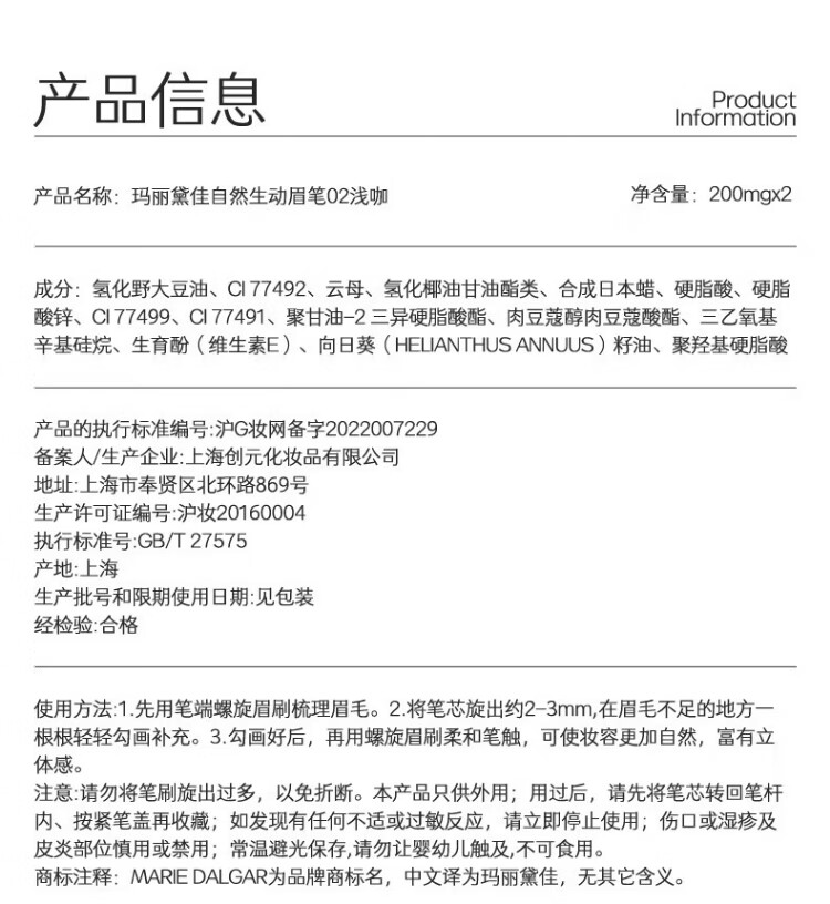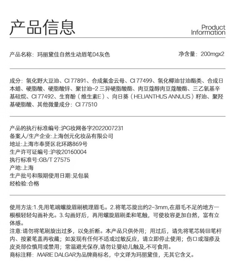 MARIE DALGAR Christmas gift natural and vivid eyebrow pencil suitable for novices, long-lasting and not easy to fade, flat head 03 dark coffee 0.2g*2