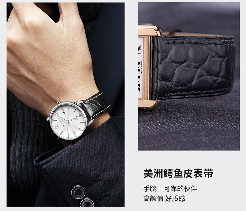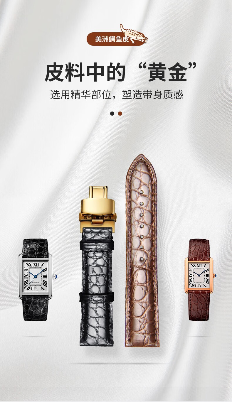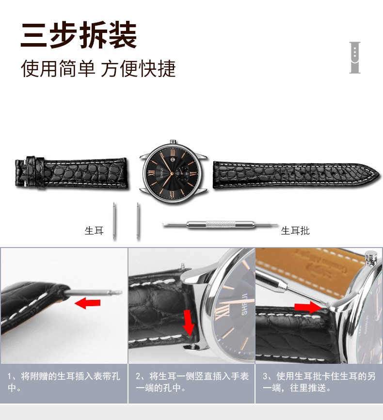 SHIRUI imported American crocodile leather watch strap for men and women suitable for Longines Tissot Le Locle IWC Jaeger-LeCoultre Omega Cartier leather watch strap black black line no buckle 20mm