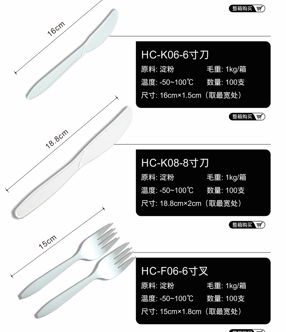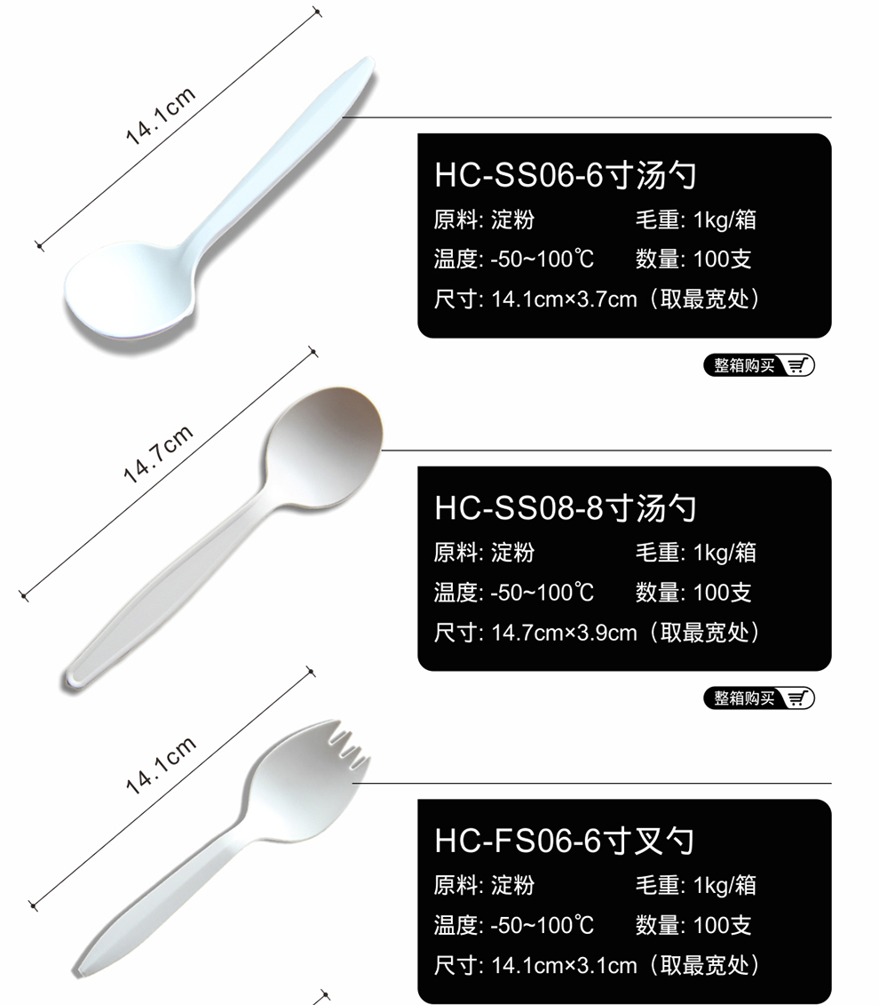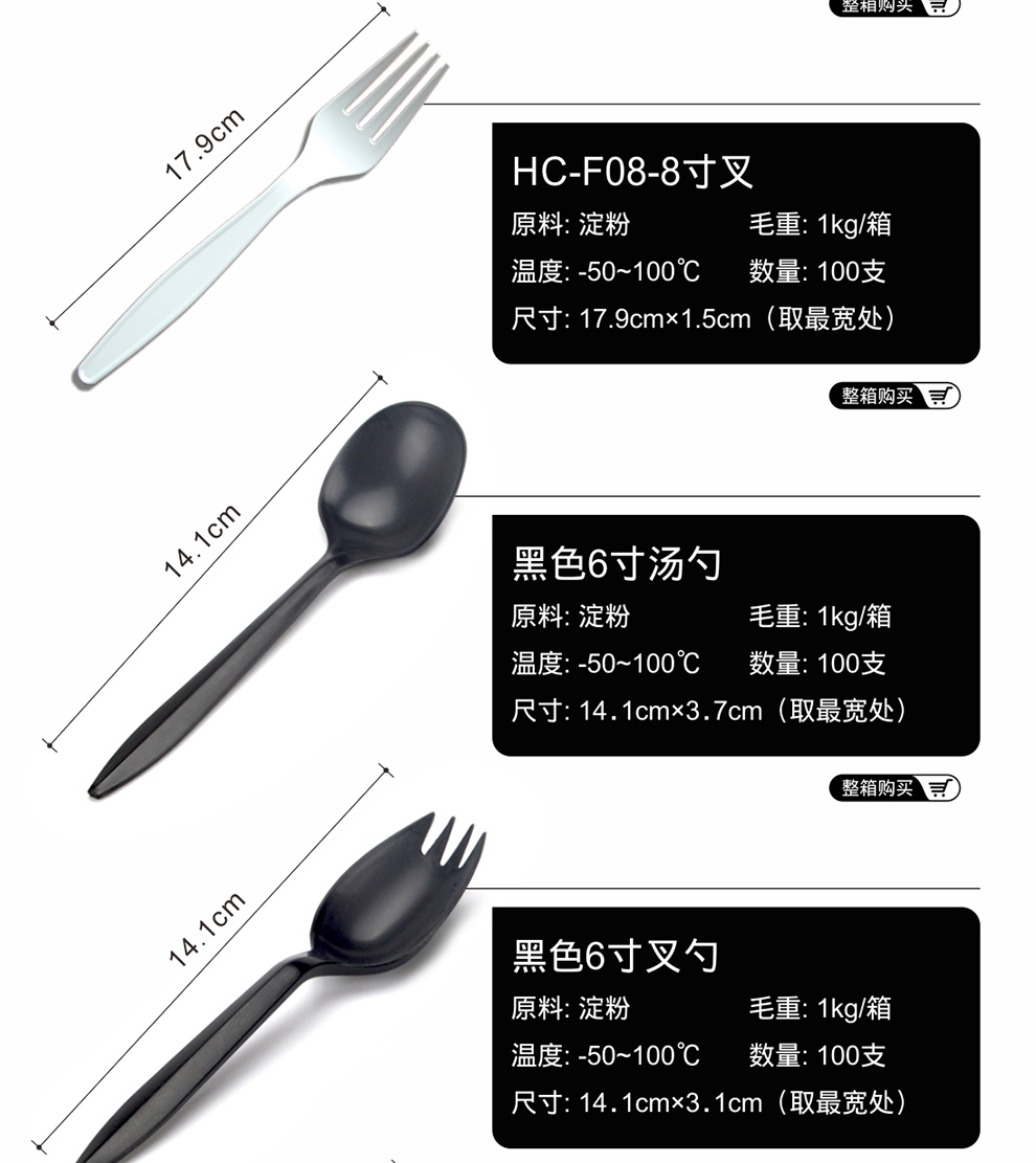 Petunia thickened disposable spoon disposable fork disposable knife and fork spoon starch-based disposable tableware 8-inch starch spoon (length 14.7cm) 100 pieces of disposable tableware