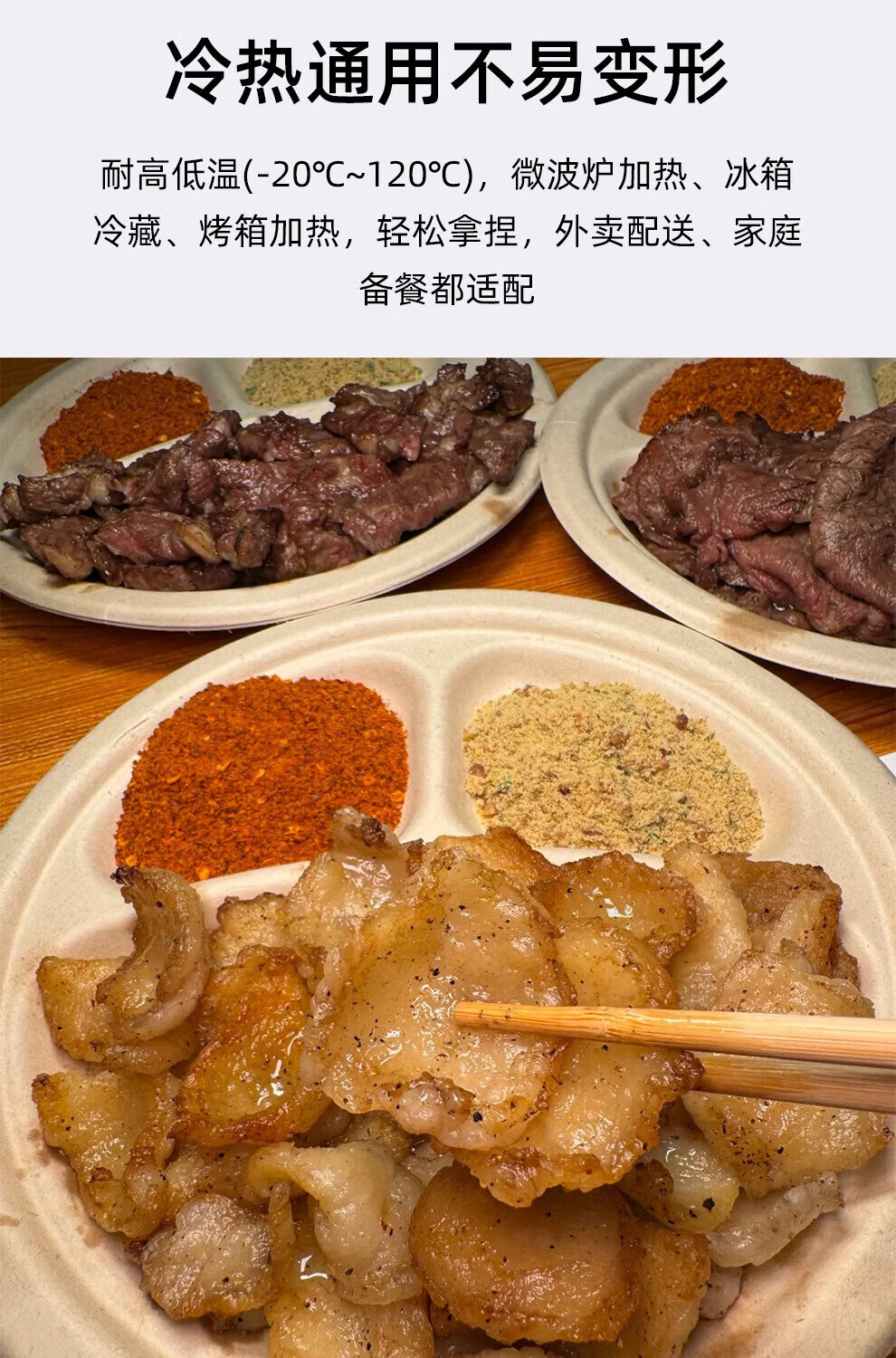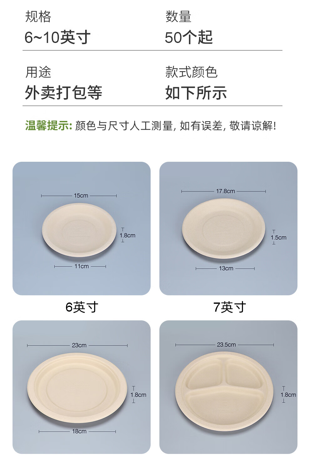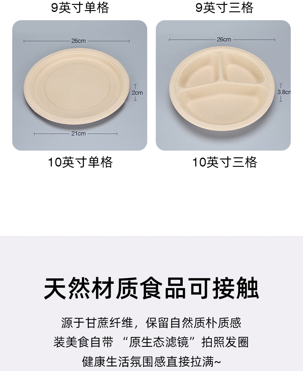 Petunia disposable paper bowl paper plate sugar cane pulp plate paper plate fruit plate barbecue plate snack plate wooden spoon wooden fork 6-inch round plate-50 pieces paper
