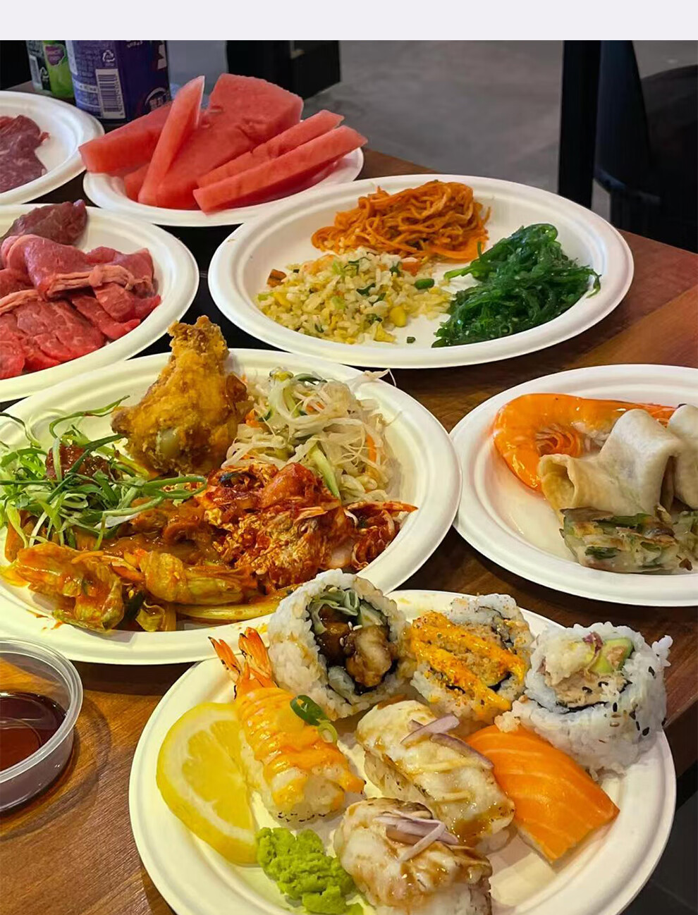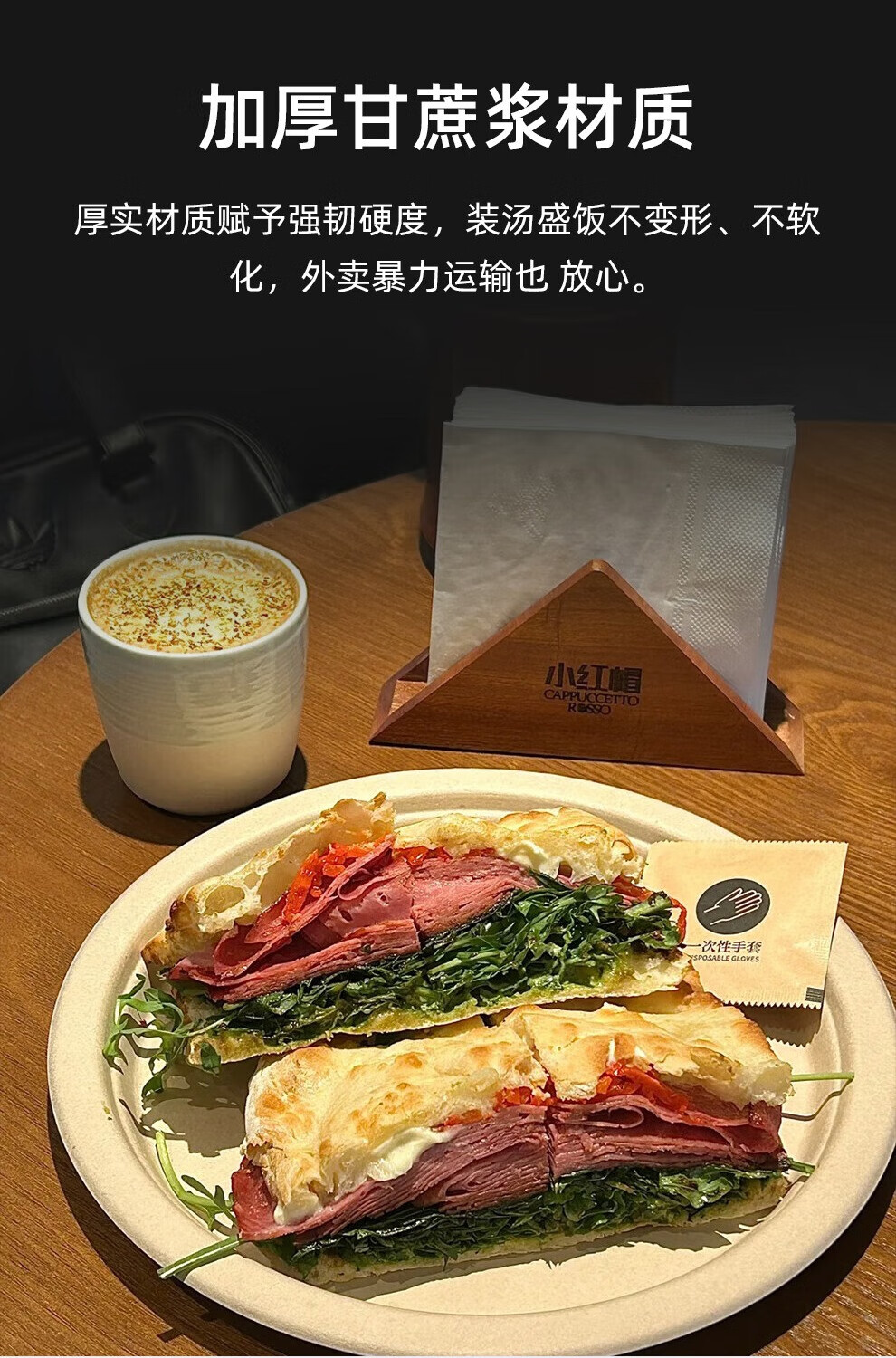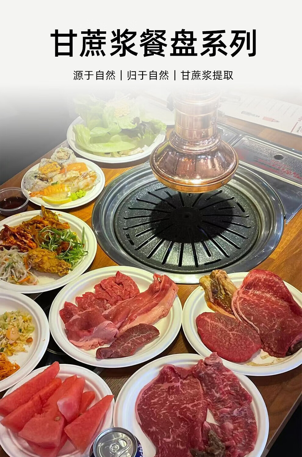 Petunia disposable paper bowl paper plate sugar cane pulp plate paper plate fruit plate barbecue plate snack plate wooden spoon wooden fork 6-inch round plate-50 pieces paper