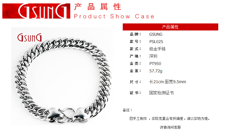 GsunG pt950 platinum hand ornaments flat riding whip for men and women, solid texture platinum bracelet, need to be customized, please contact customer service to confirm the gold weight price