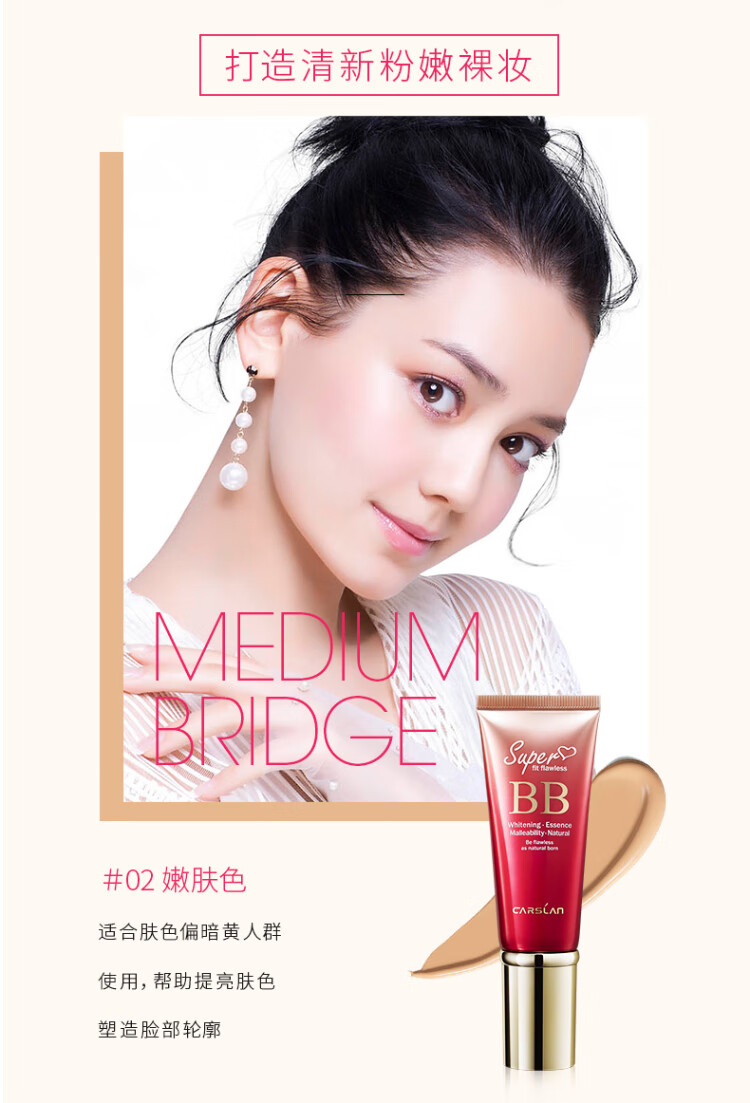 Carslan Silky Flawless BB Cream Before Makeup Isolating Oil Control Concealer Moisturizing Long-lasting 02# Tender Skin 48g Birthday Gift for Women