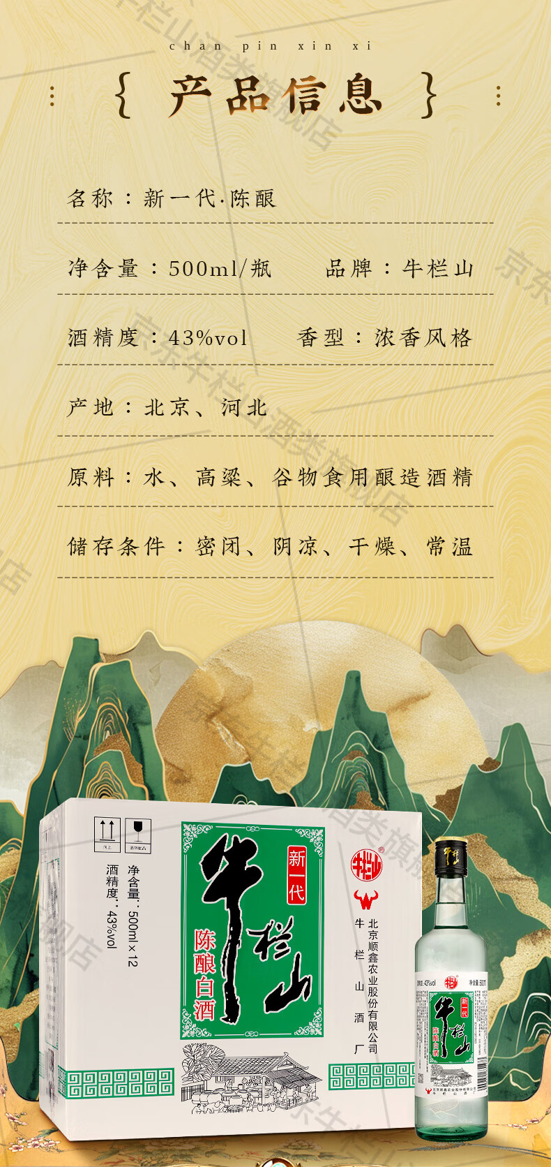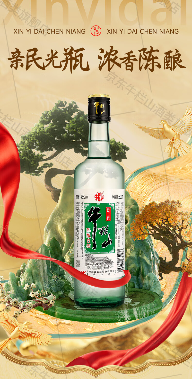 Niulanshan Erguotou New Generation Refined Aged 43% Liquor Strong Fragrance Style Liquor New Year Gift for Elders 43% 500mL 12 Bottles Full Box