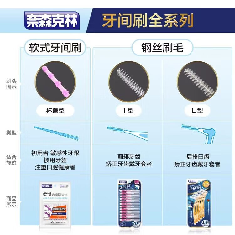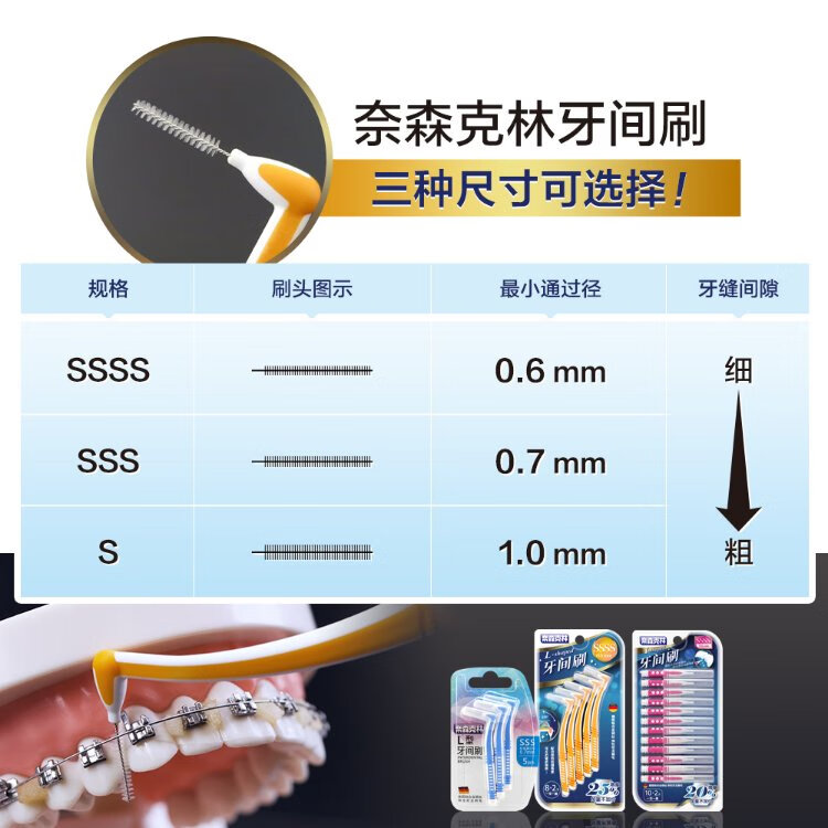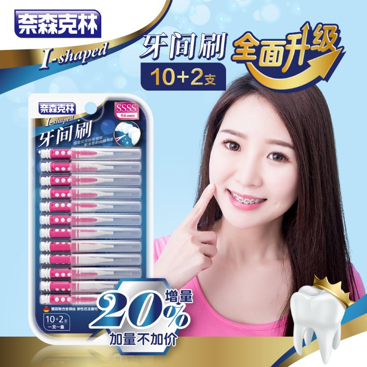 Nessenklin I-type interdental brush, two-color portable interdental space brush, orthodontic toothbrush, 12 pieces * 1 card SSSS number