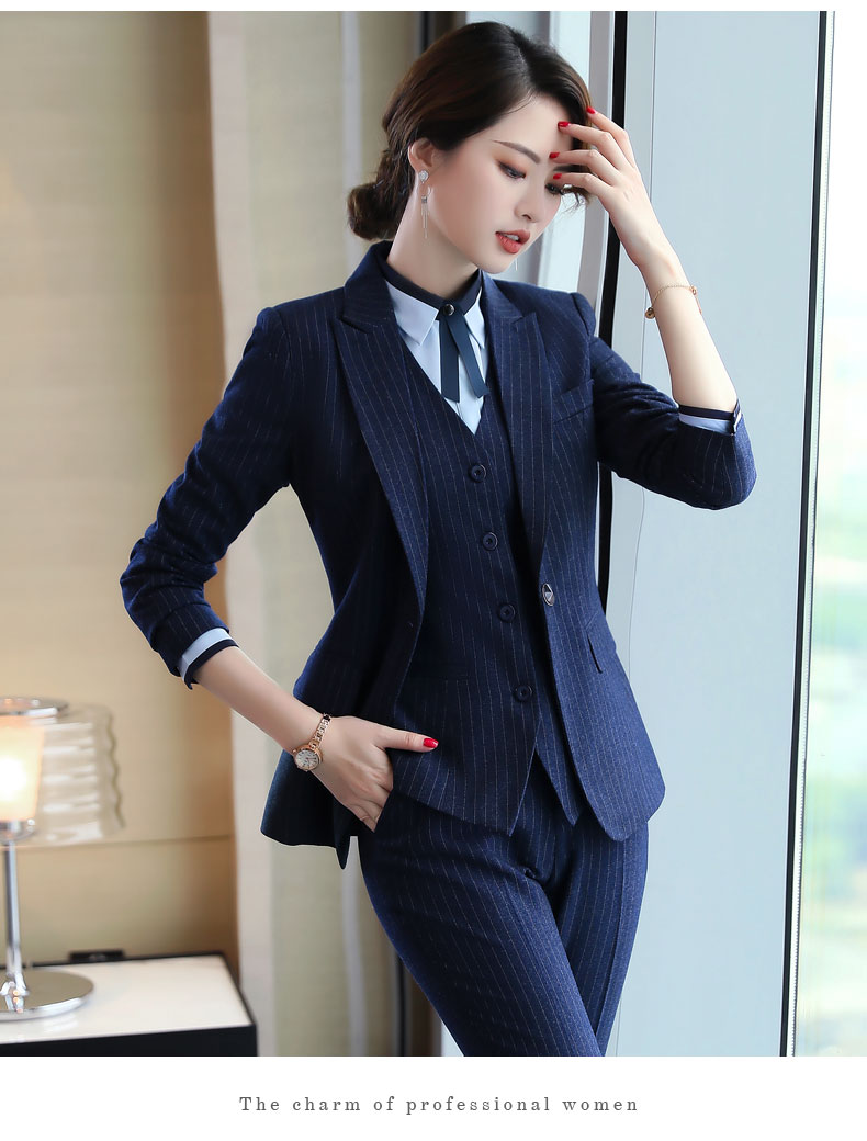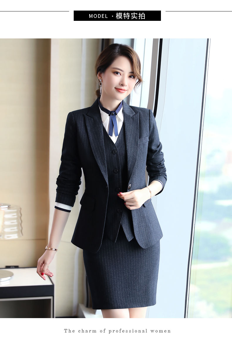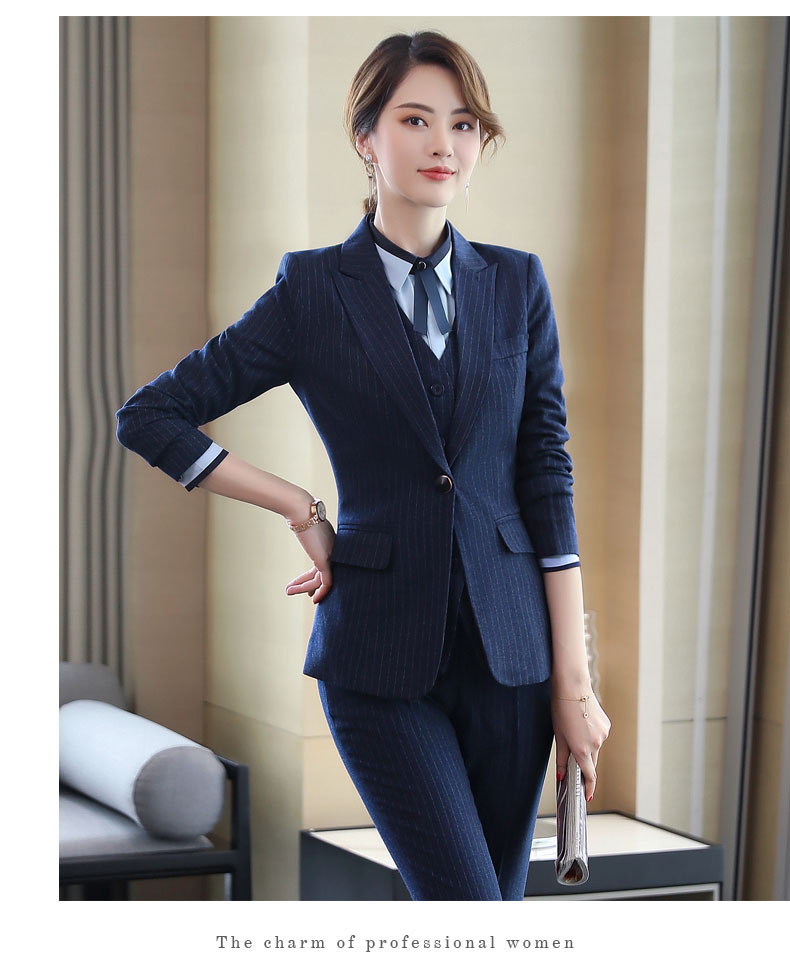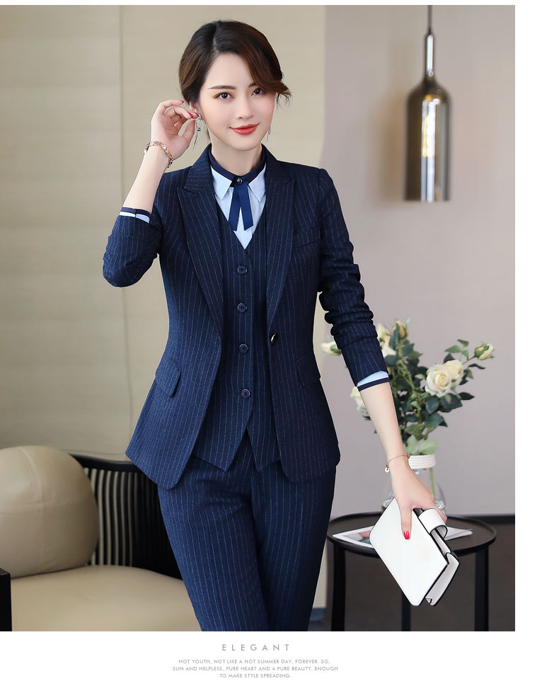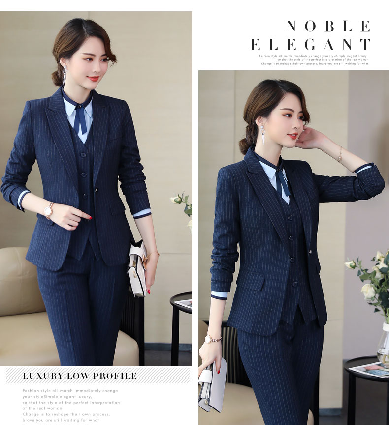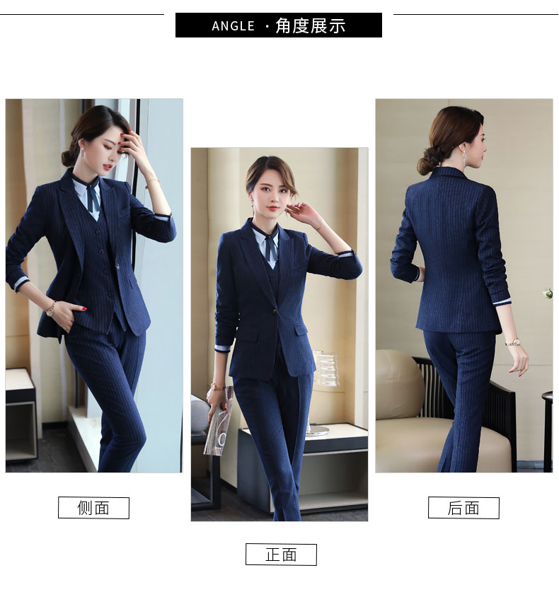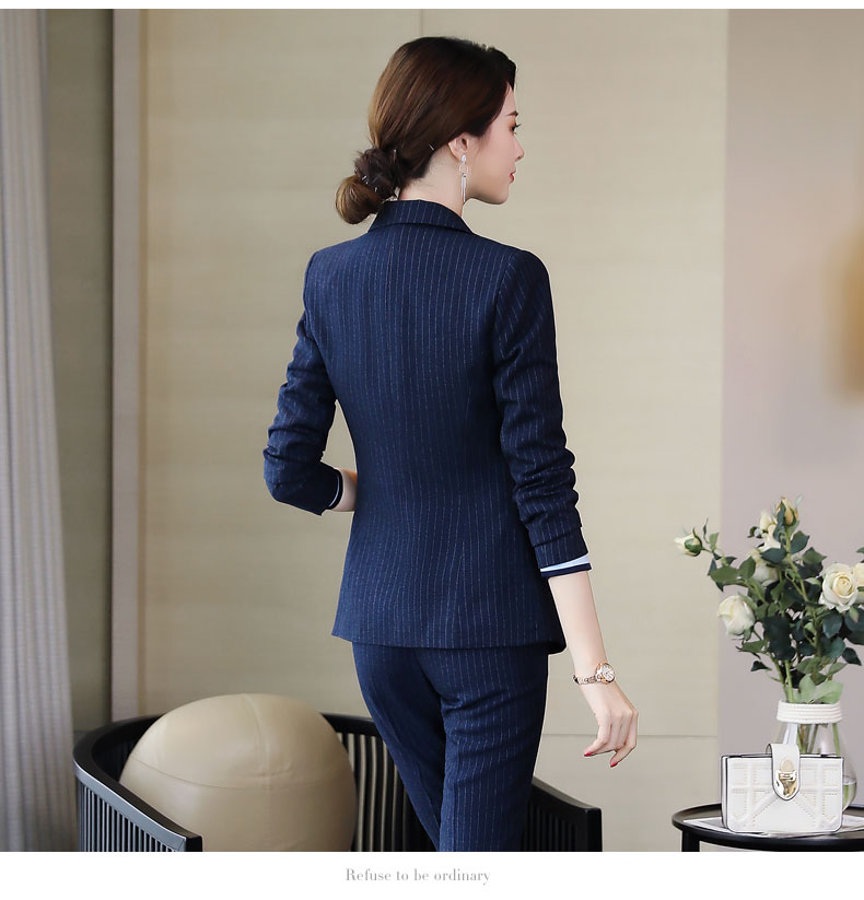 Zi Mei Qiao Business Suit Women's Striped Small Suit Jacket Hotel Real Estate 4S Store Sales Formal Suit Group Work Wear Blue Stripe (Single Suit) XL (Recommended 110-120 Jin Jin equals 0.5 kg)