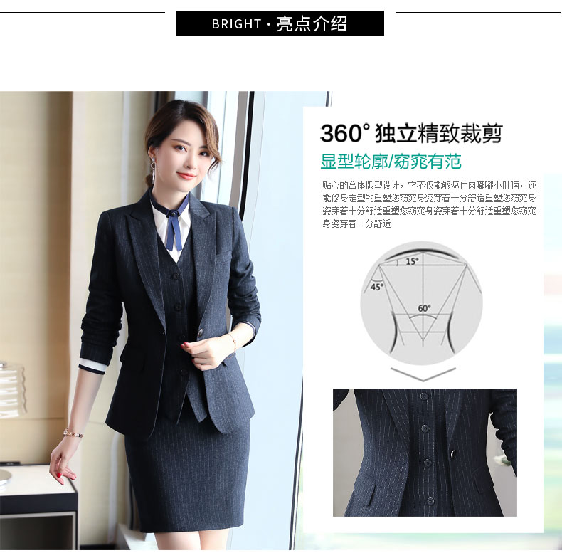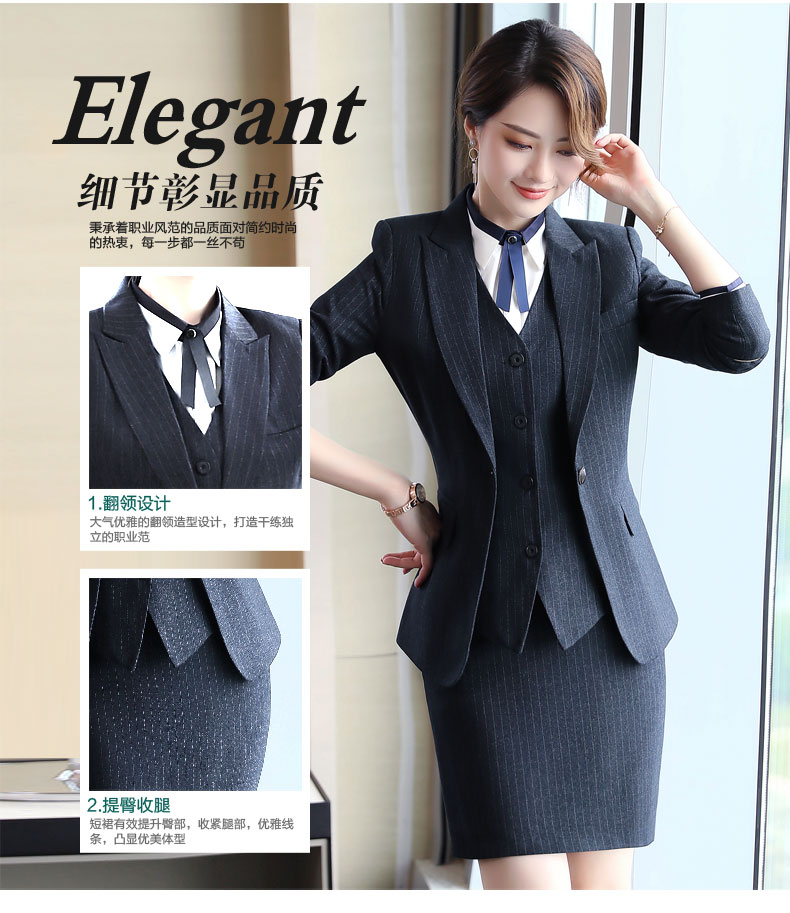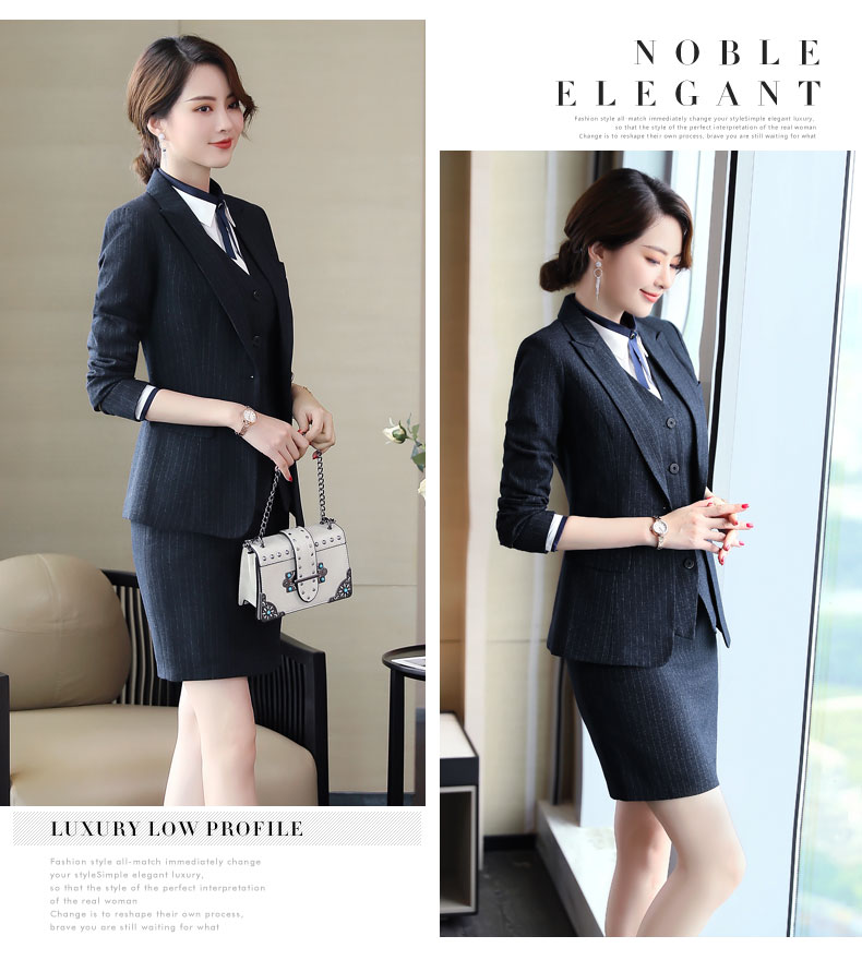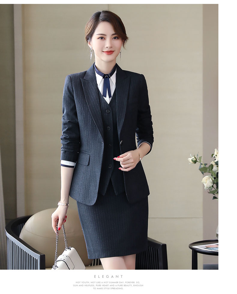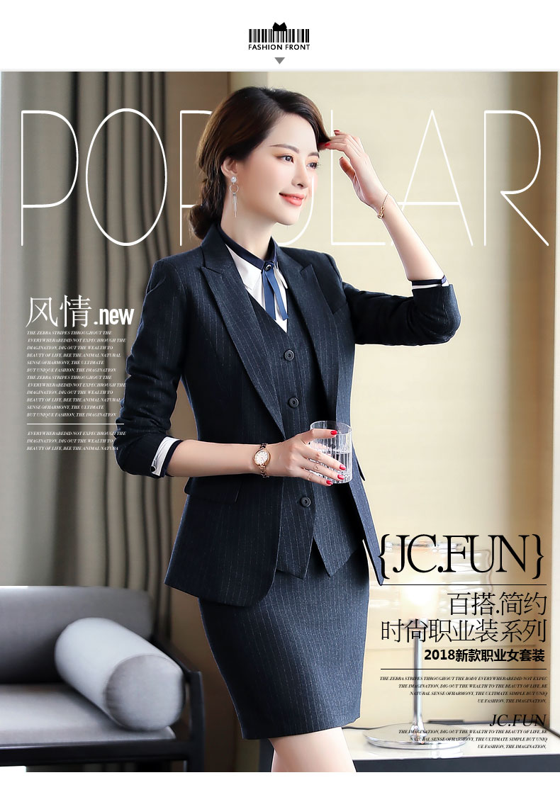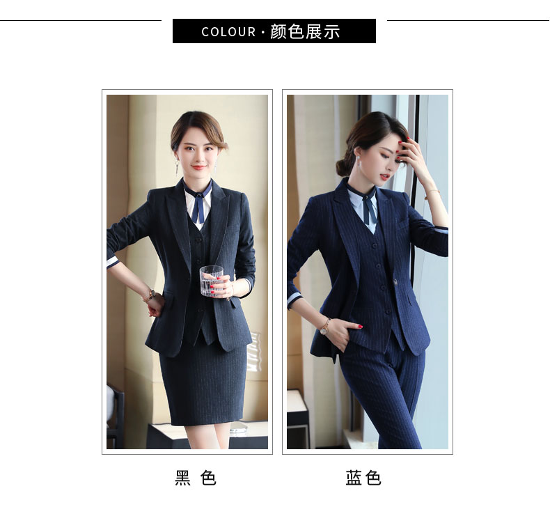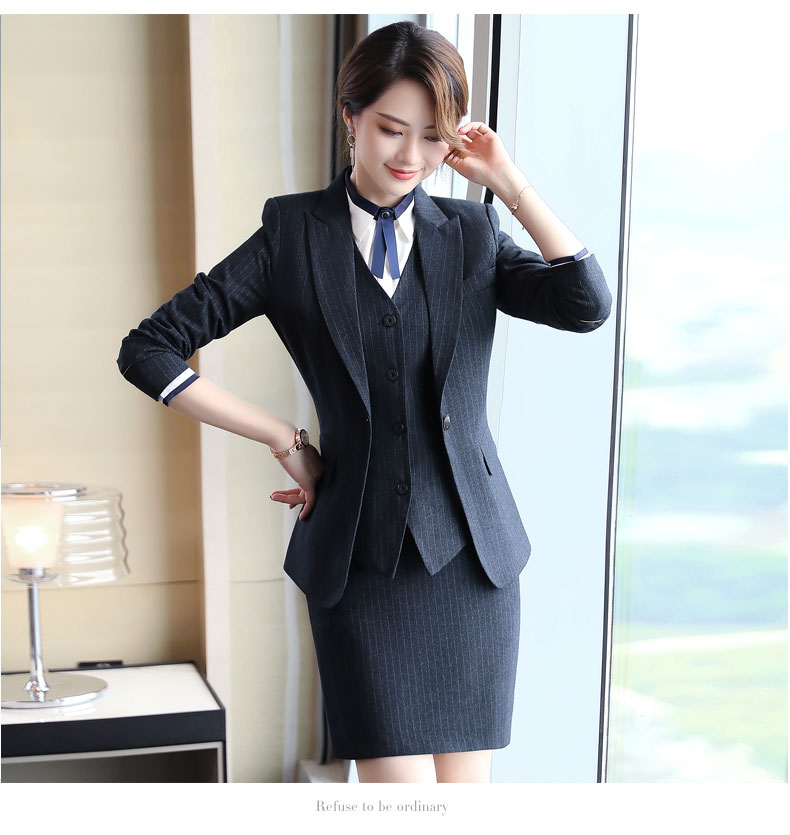 Zi Mei Qiao Business Suit Women's Striped Small Suit Jacket Hotel Real Estate 4S Store Sales Formal Suit Group Work Wear Blue Stripe (Single Suit) XL (Recommended 110-120 Jin Jin equals 0.5 kg)