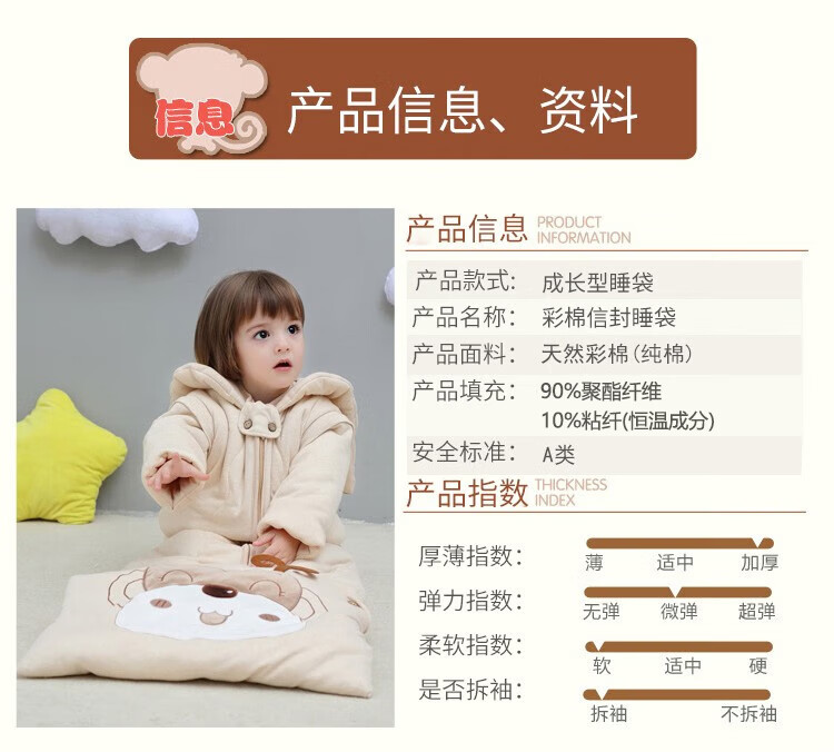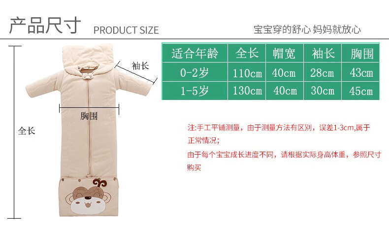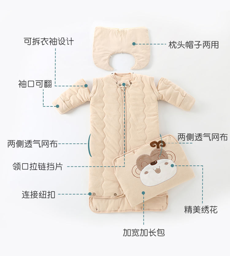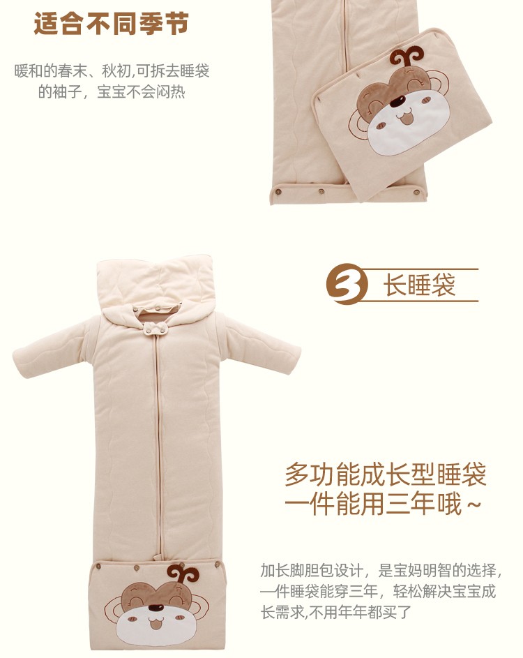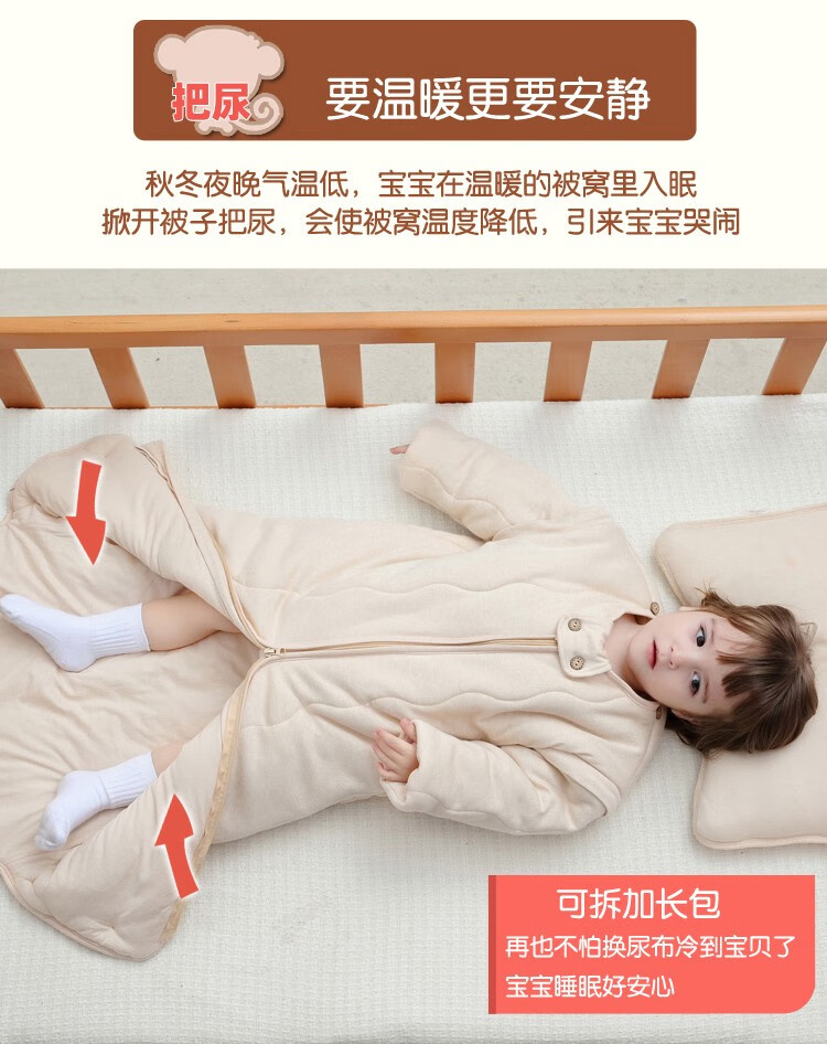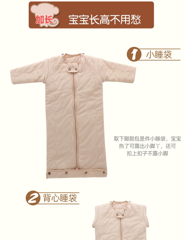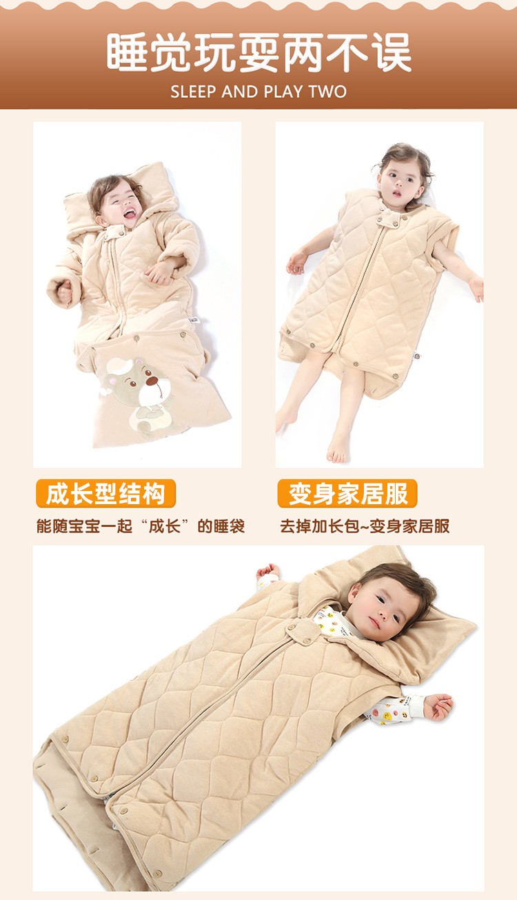 Bamile Baby Sleeping Bag, Children's Anti-Kick Quilt, Baby's Removable Sleeves, Extended Color Cotton Autumn and Winter Blanket, Thick Autumn and Winter Style, 0-20 Degrees, 130CM (Total Length of Sleeping Bag, Suitable for 1-5 Years Old Baby)