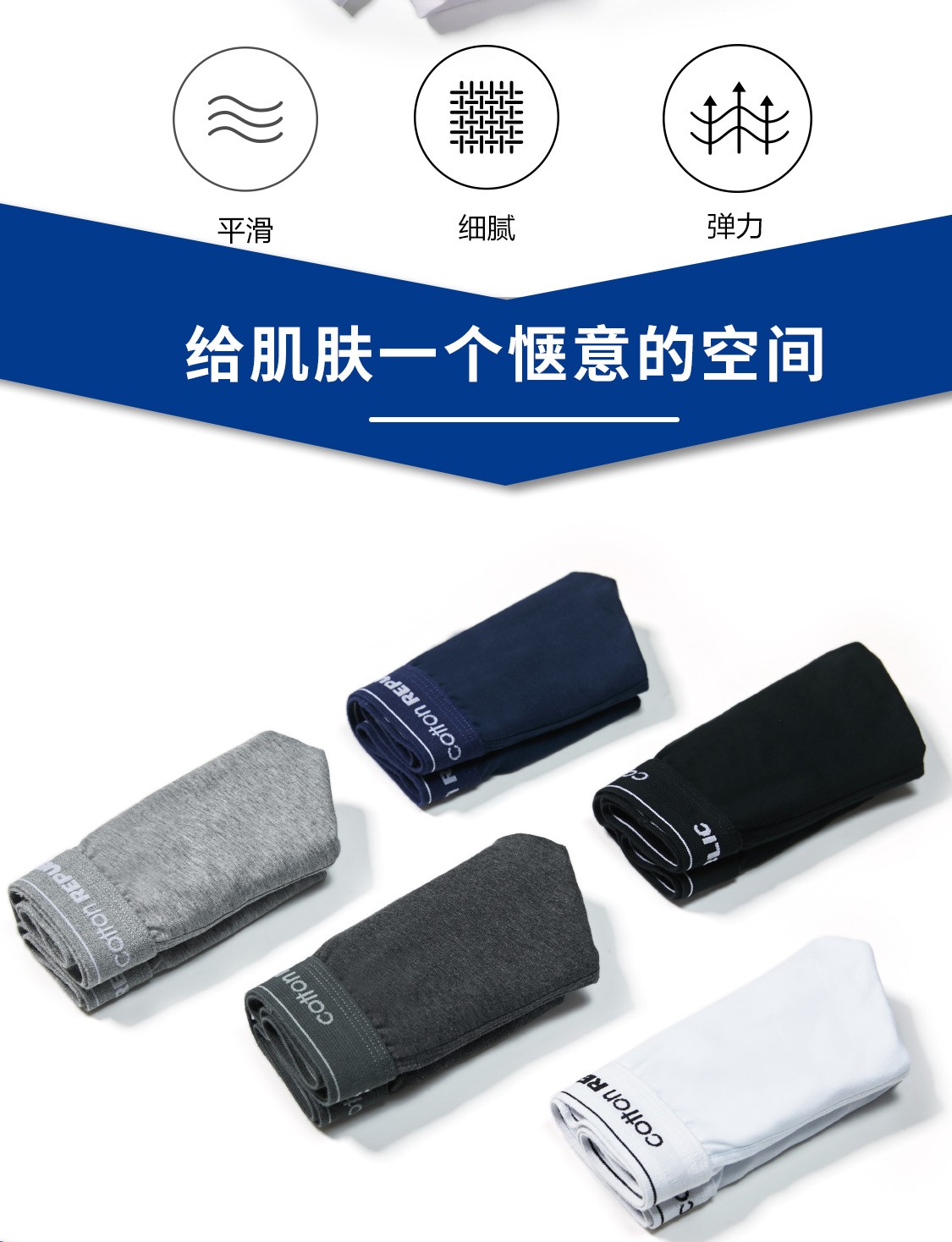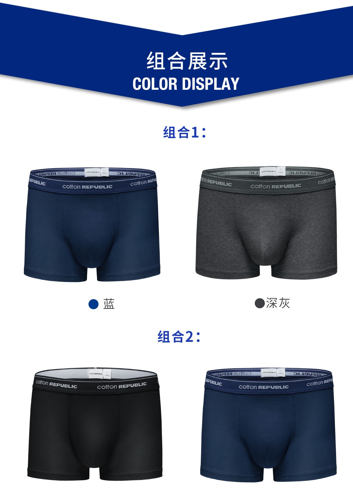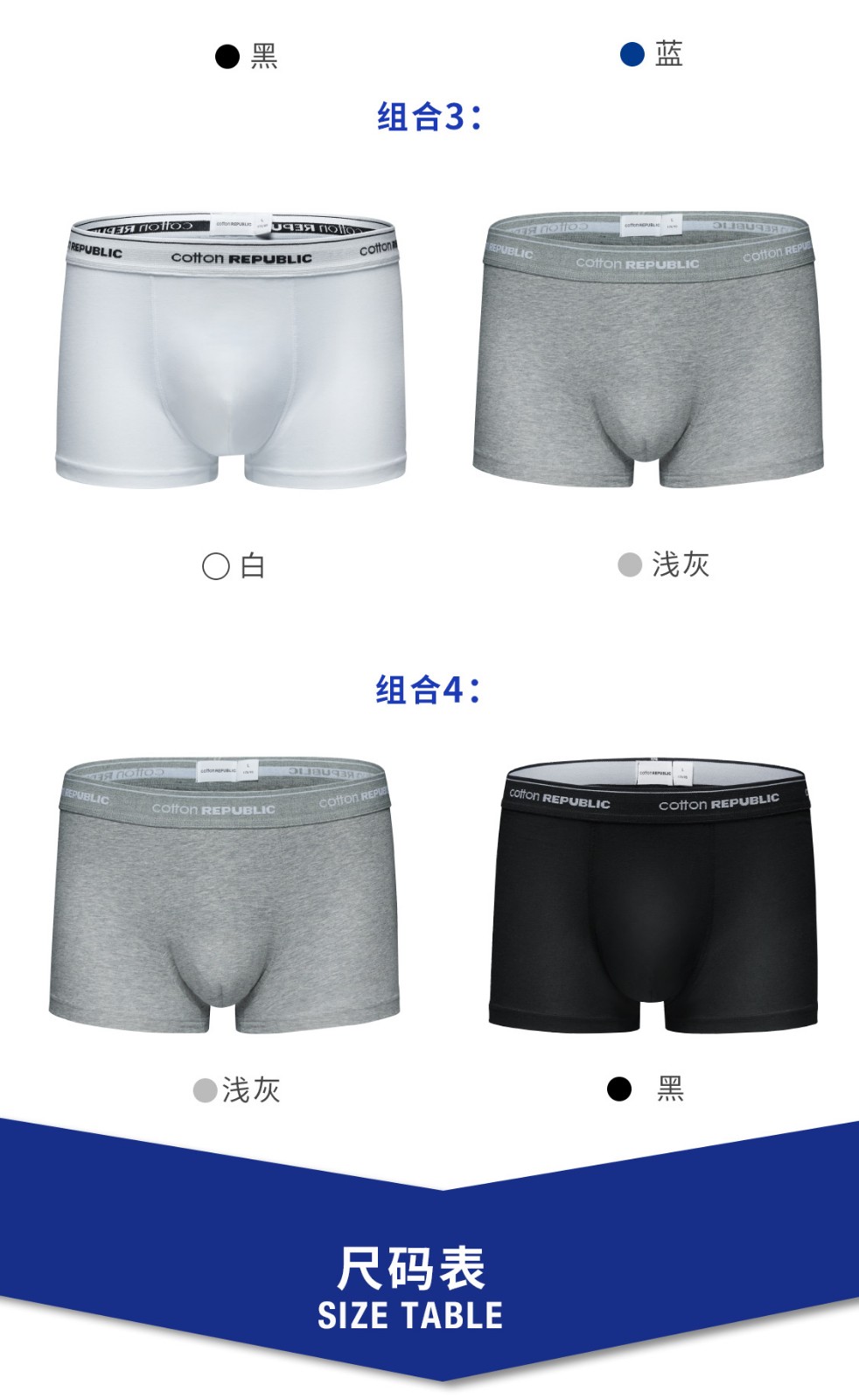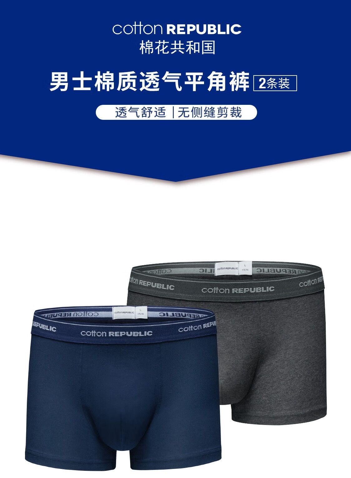 COTTON REPUBLIC Cotton Republic men's underwear 2-pack boxer briefs US cotton breathable boxer briefs white gray M (170/90)