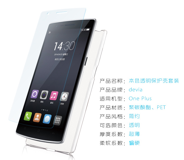 DEVIA natural transparent protective case + screen protector set for OnePlus