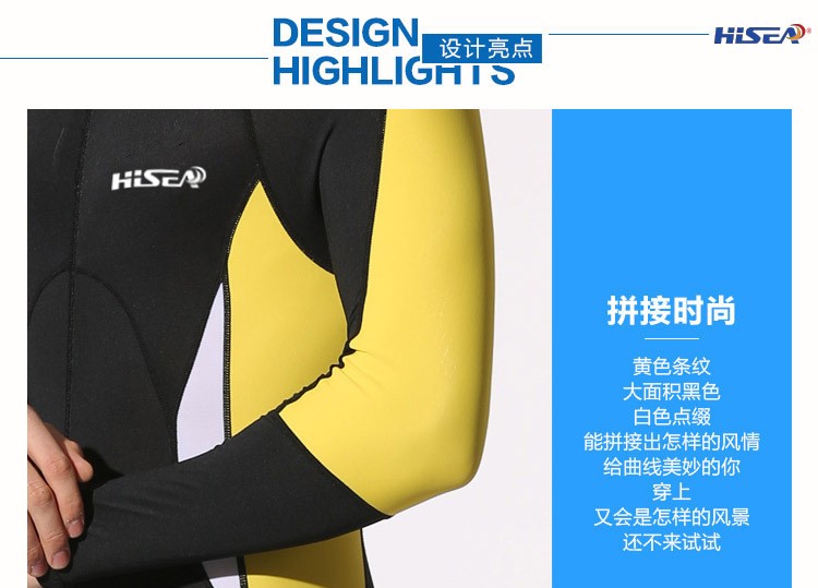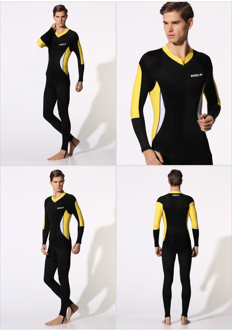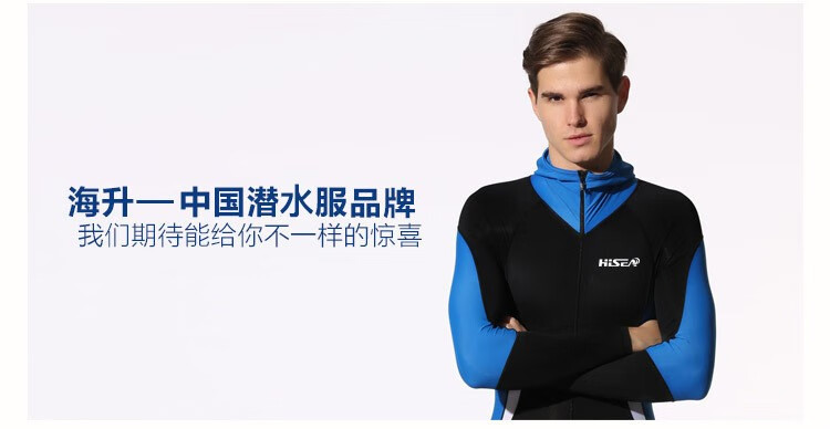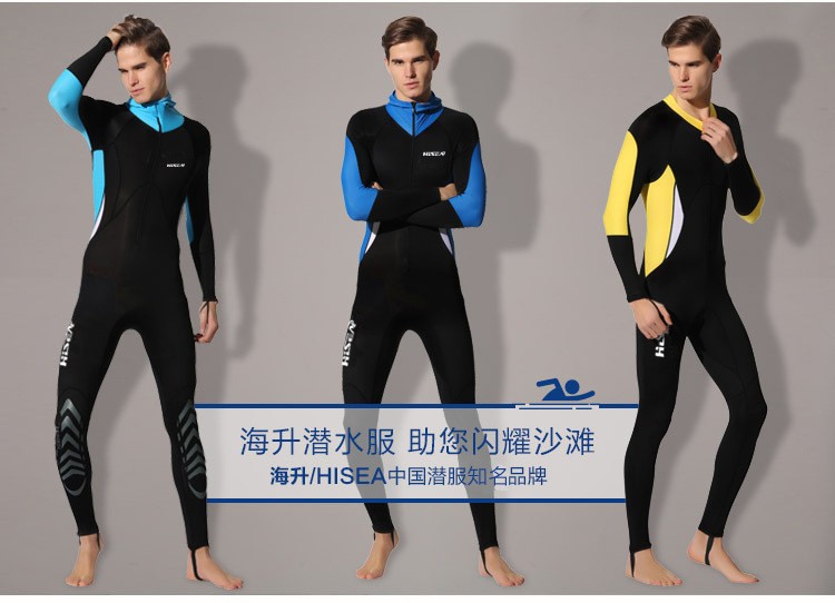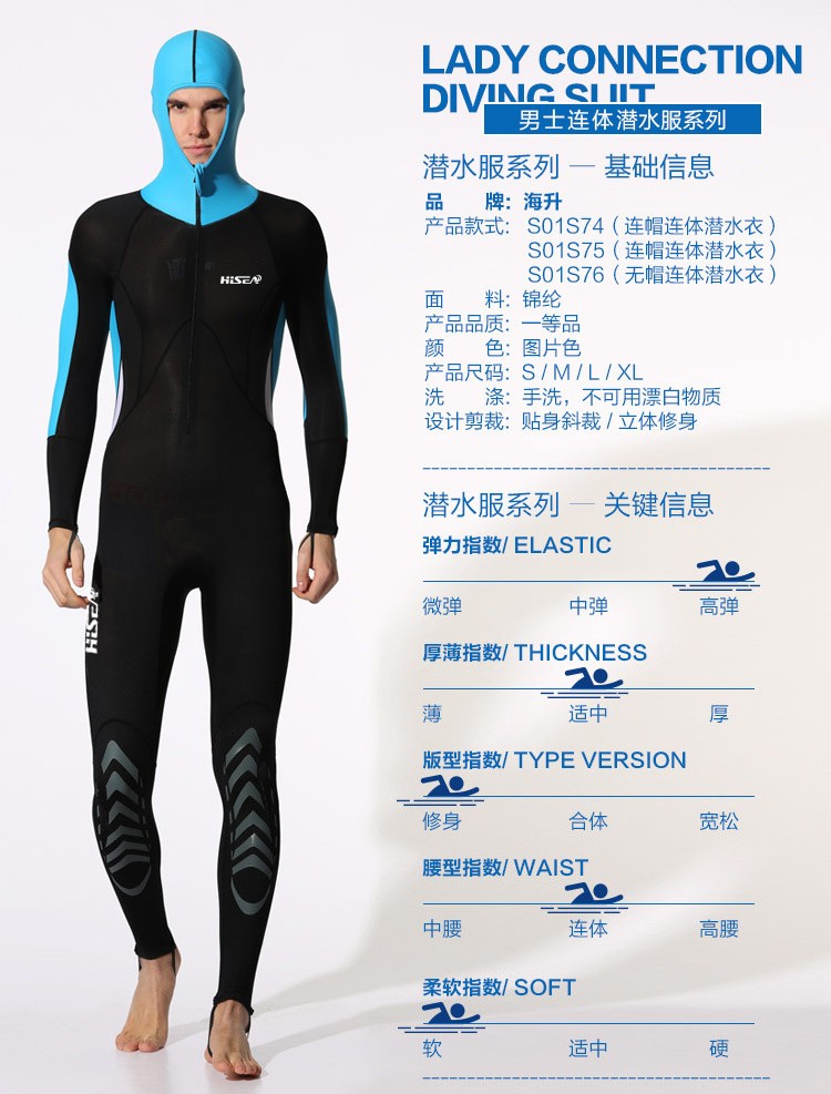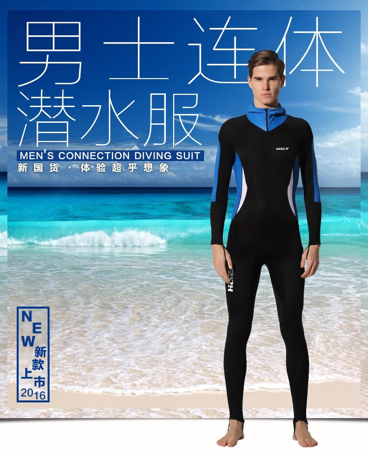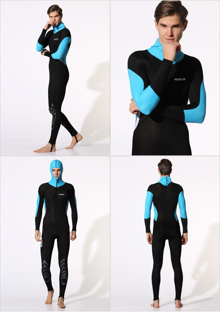 HiSEA new long-sleeved one-piece wetsuit for men, quick-drying suit, snorkeling suit, surfing suit, beach jellyfish suit, swim suit, dark blue hooded M