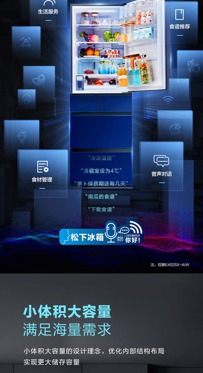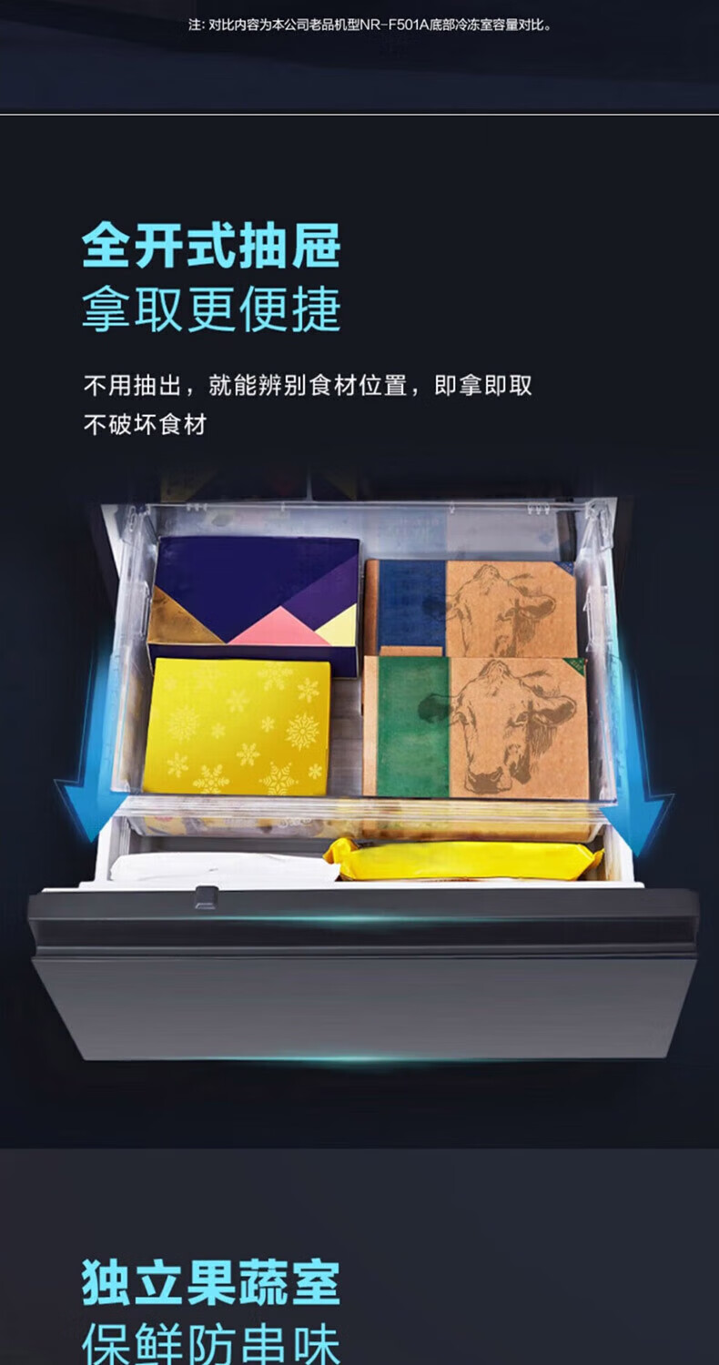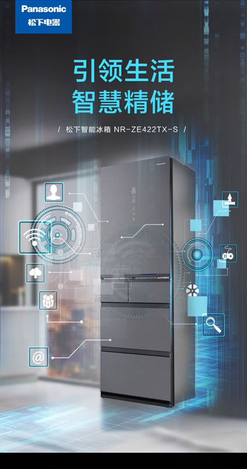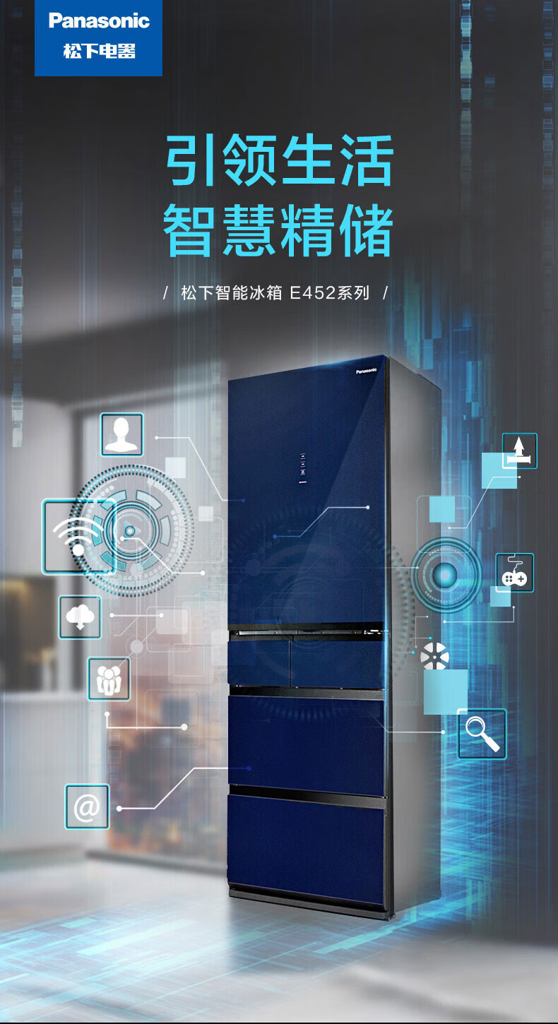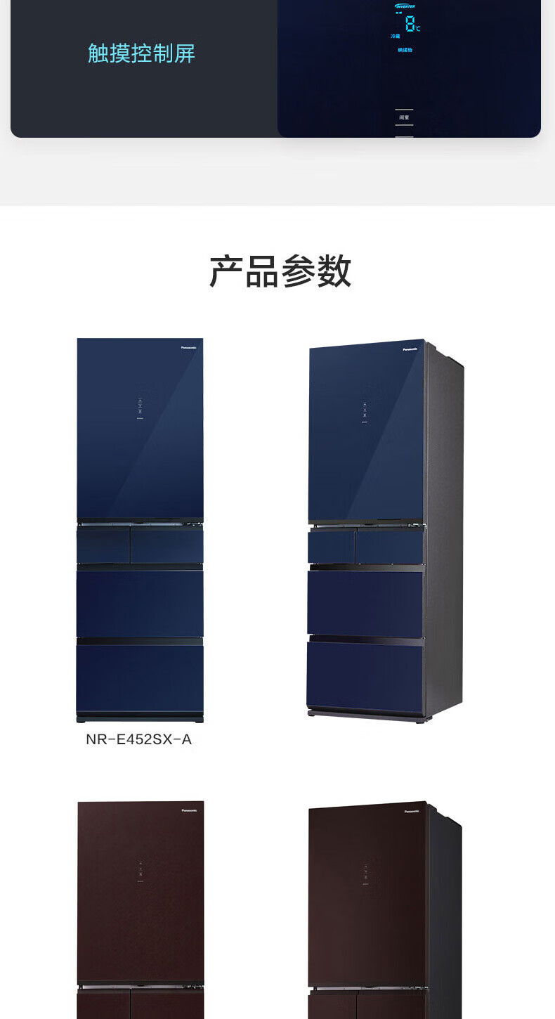 Panasonic multi-door refrigerator 435L air-cooled frost-free inverter refrigerator nano water ion sterilization automatic ice making machine NR-E452SX-A APP intelligent IoT tail cargo machine NR-E452SX-A 435L deep sea blue automatic ice making
