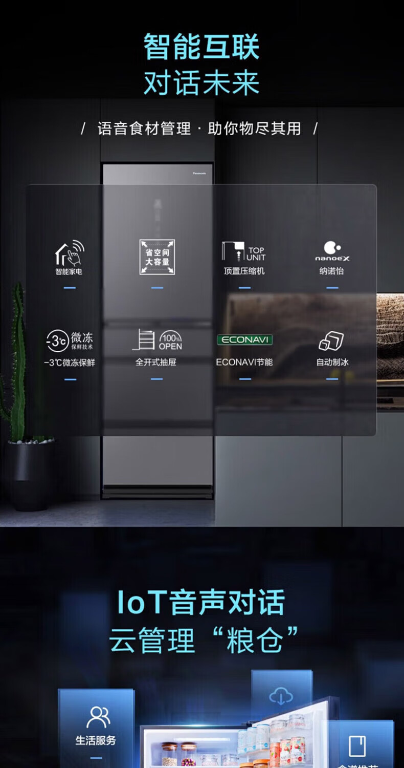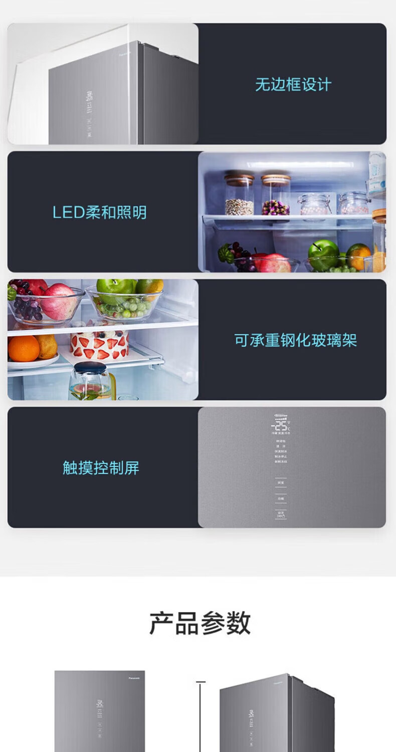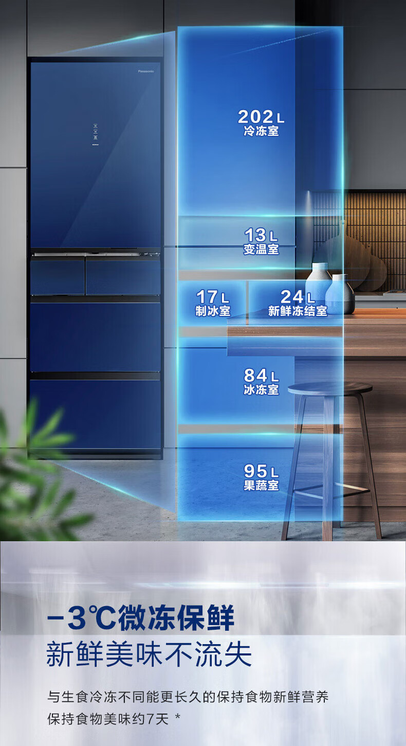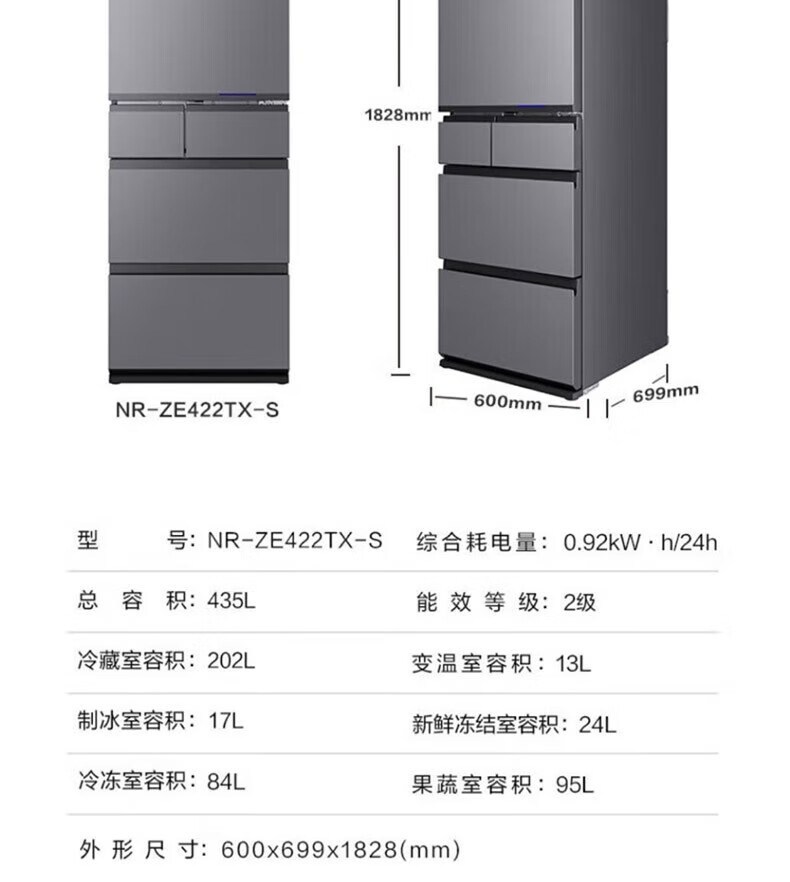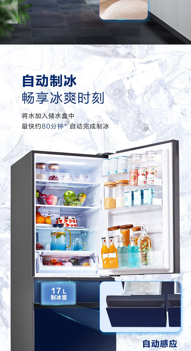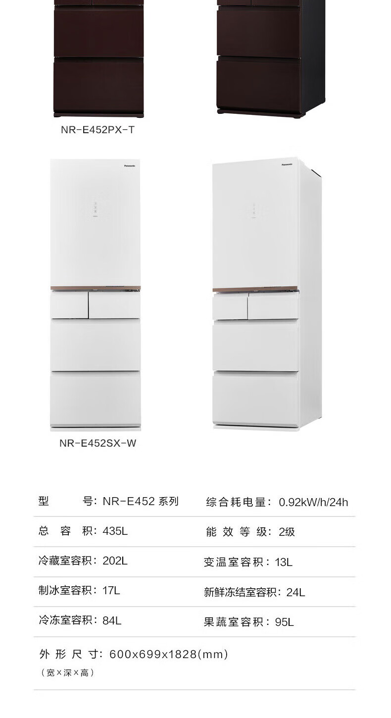 Panasonic multi-door refrigerator 435L air-cooled frost-free inverter refrigerator nano water ion sterilization automatic ice making machine NR-E452SX-A APP intelligent IoT tail cargo machine NR-E452SX-A 435L deep sea blue automatic ice making