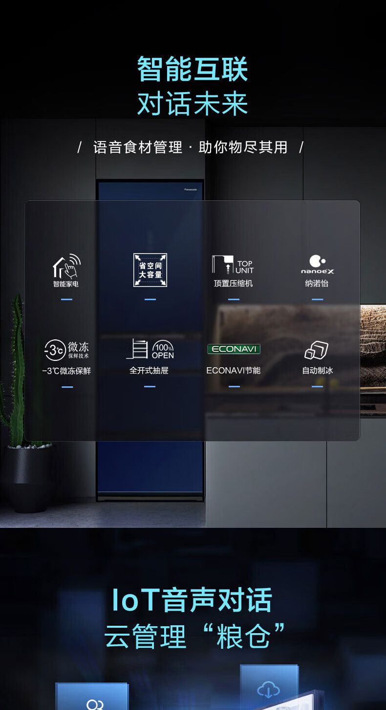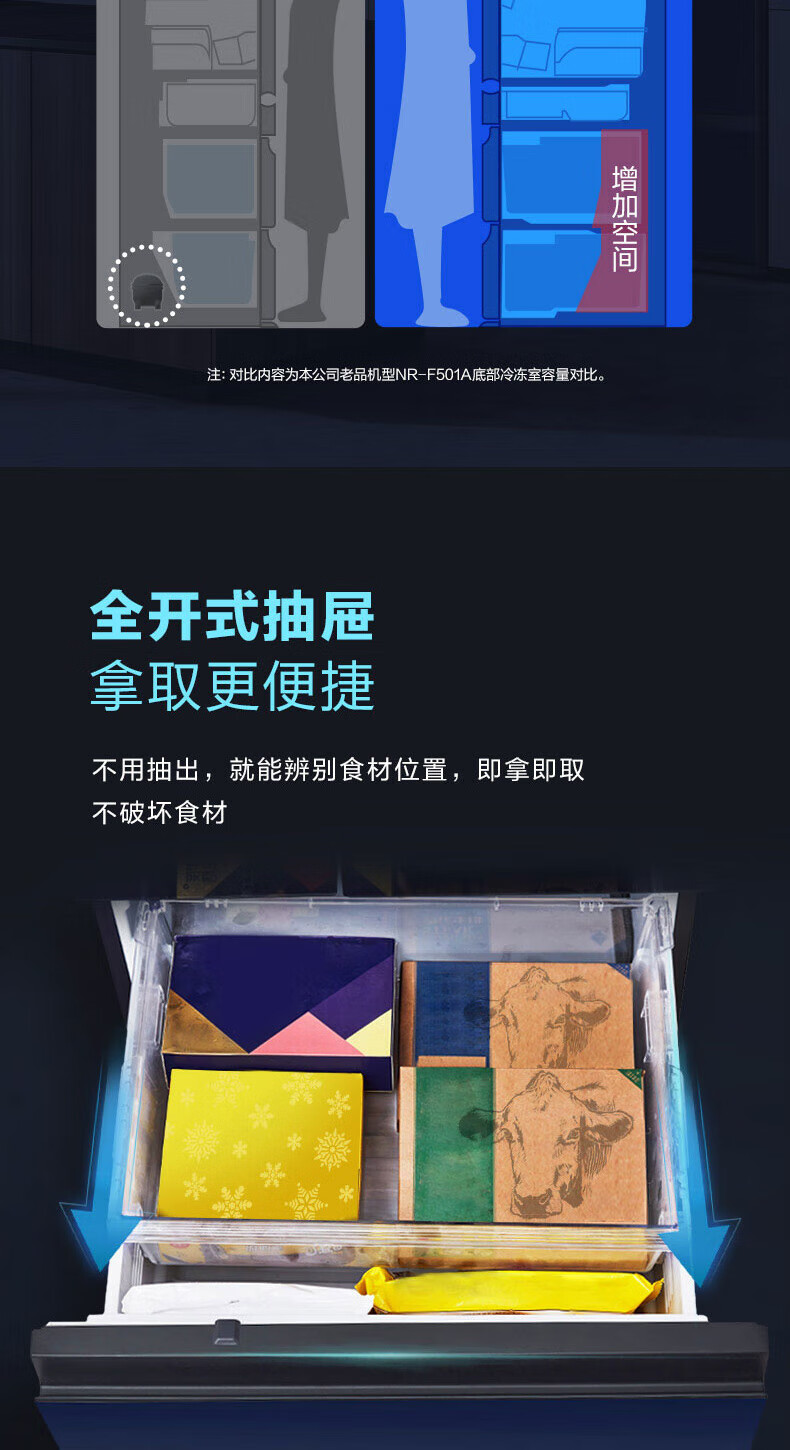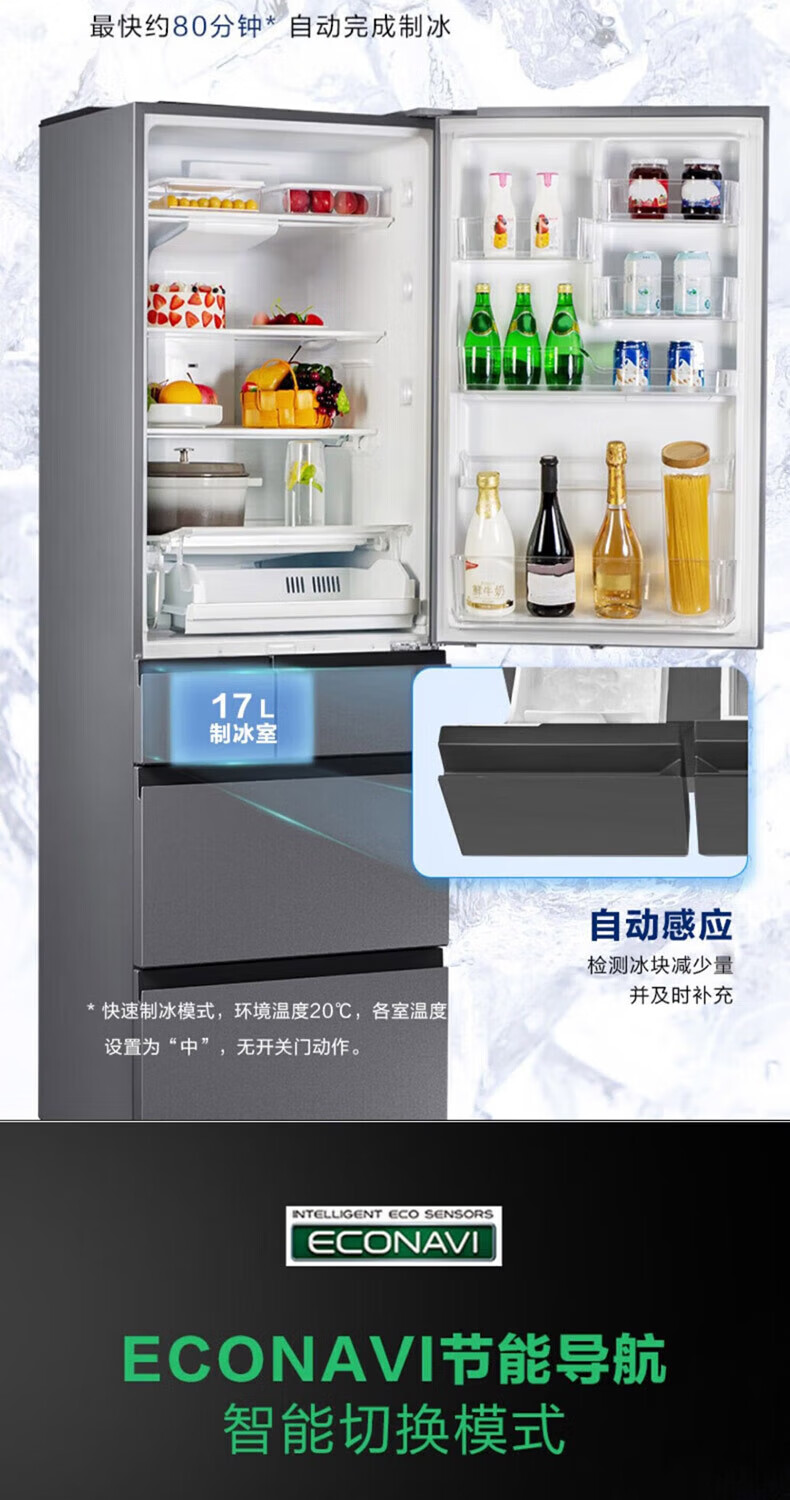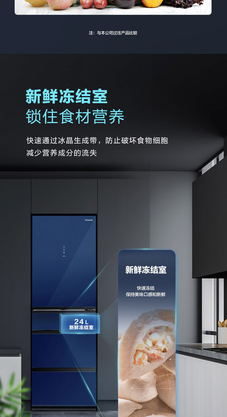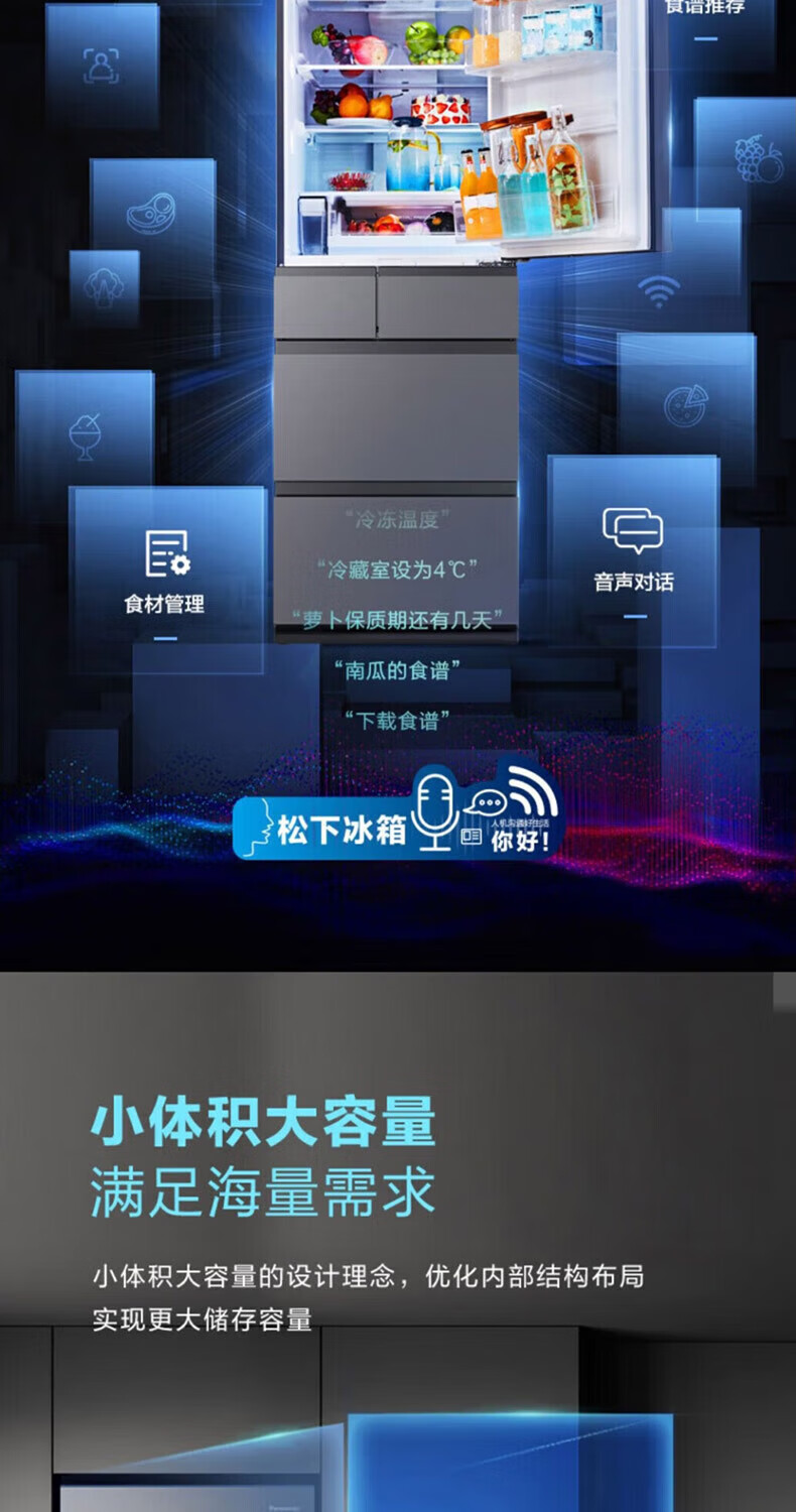 Panasonic multi-door refrigerator 435L air-cooled frost-free inverter refrigerator nano water ion sterilization automatic ice making machine NR-E452SX-A APP intelligent IoT tail cargo machine NR-E452SX-A 435L deep sea blue automatic ice making