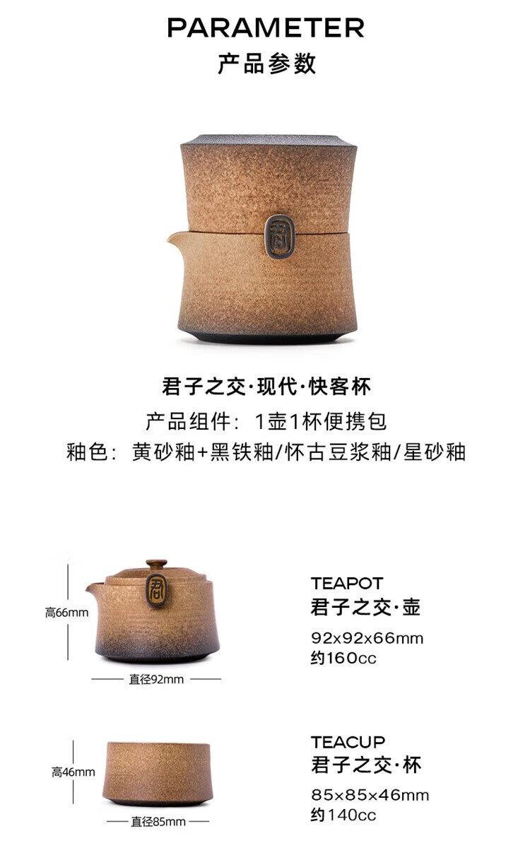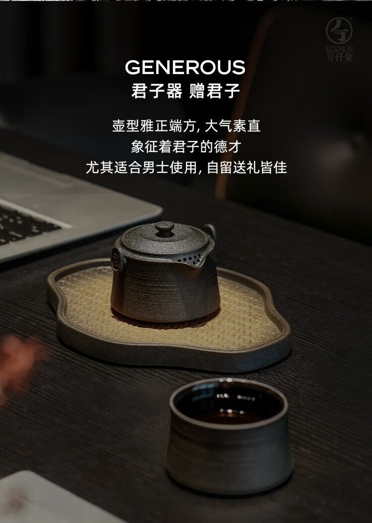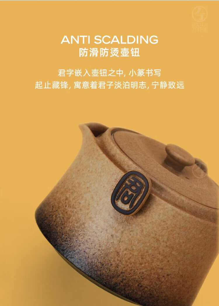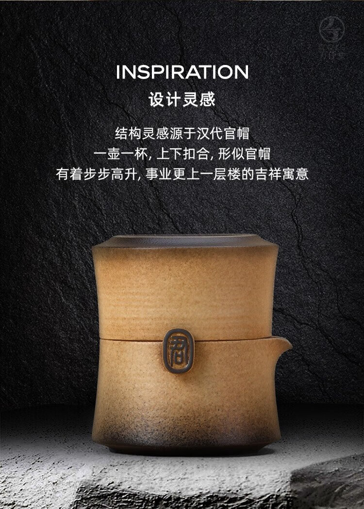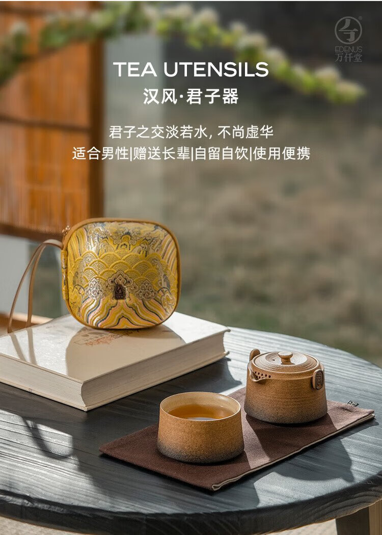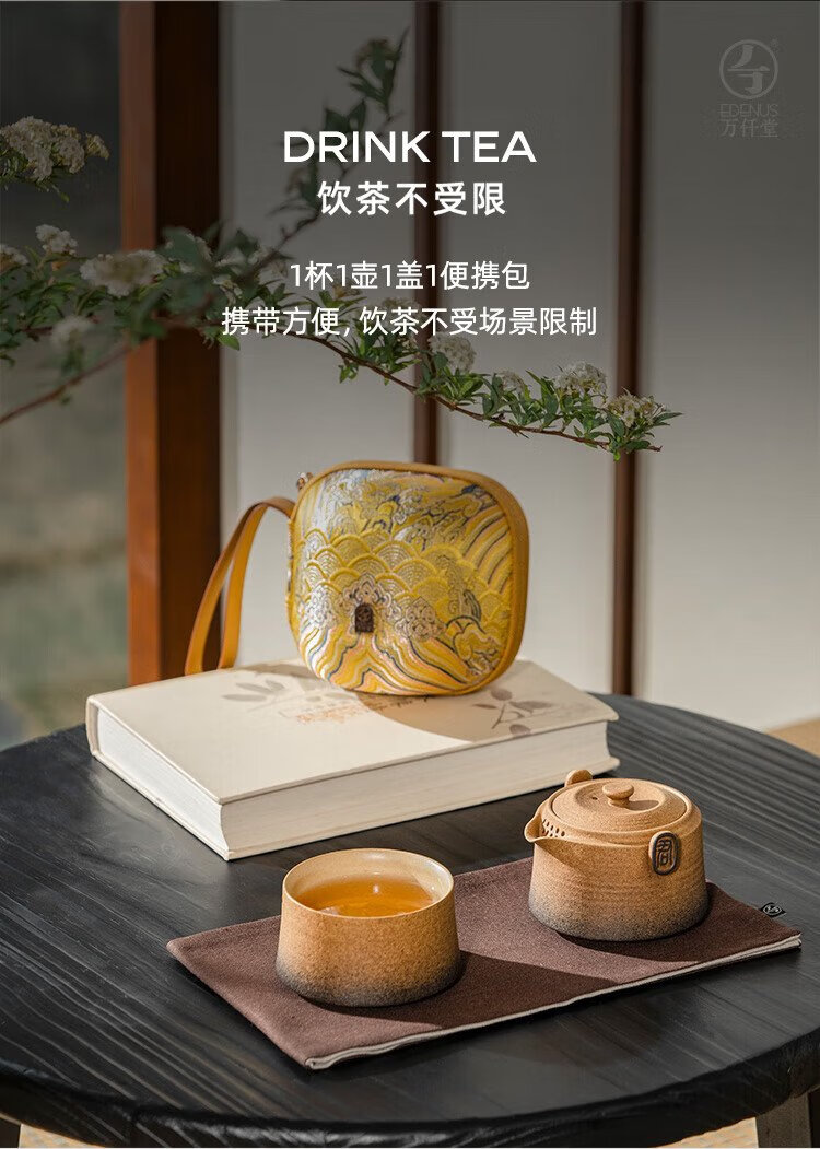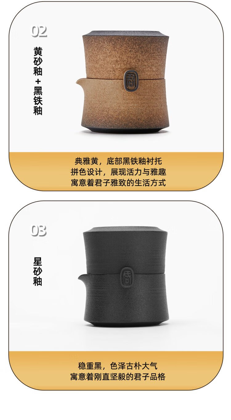 Wanqiantang (Edenus) Quick Cup High-end Tea Set Gift Stoneware Lazy Man Kung Fu One Pot and One Cup with Lid for Gifts Friendship between Gentlemen Yellow Sand Glaze + Black Iron Glaze 1 Pot 1 Cup 1 Cloth Bag
