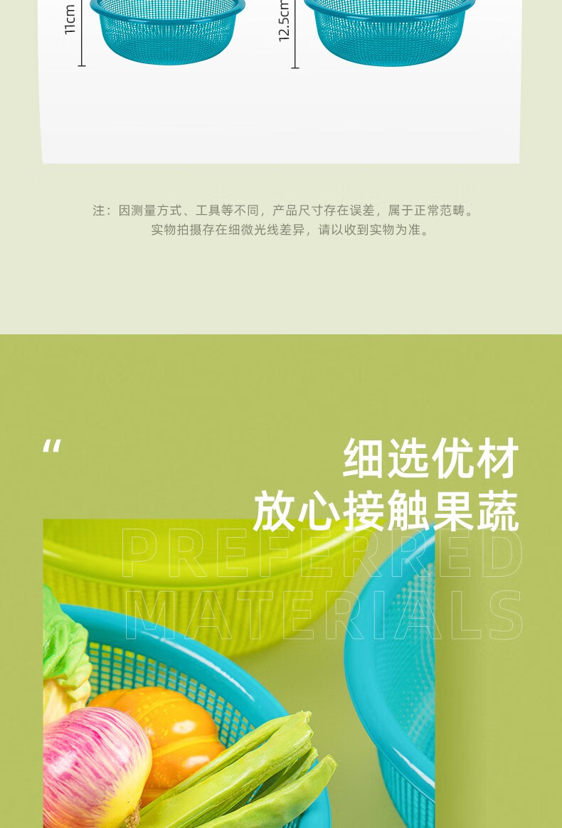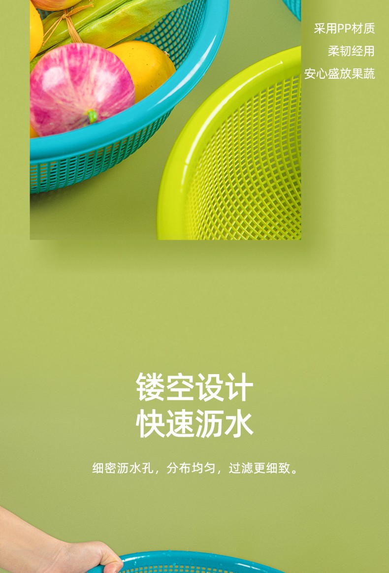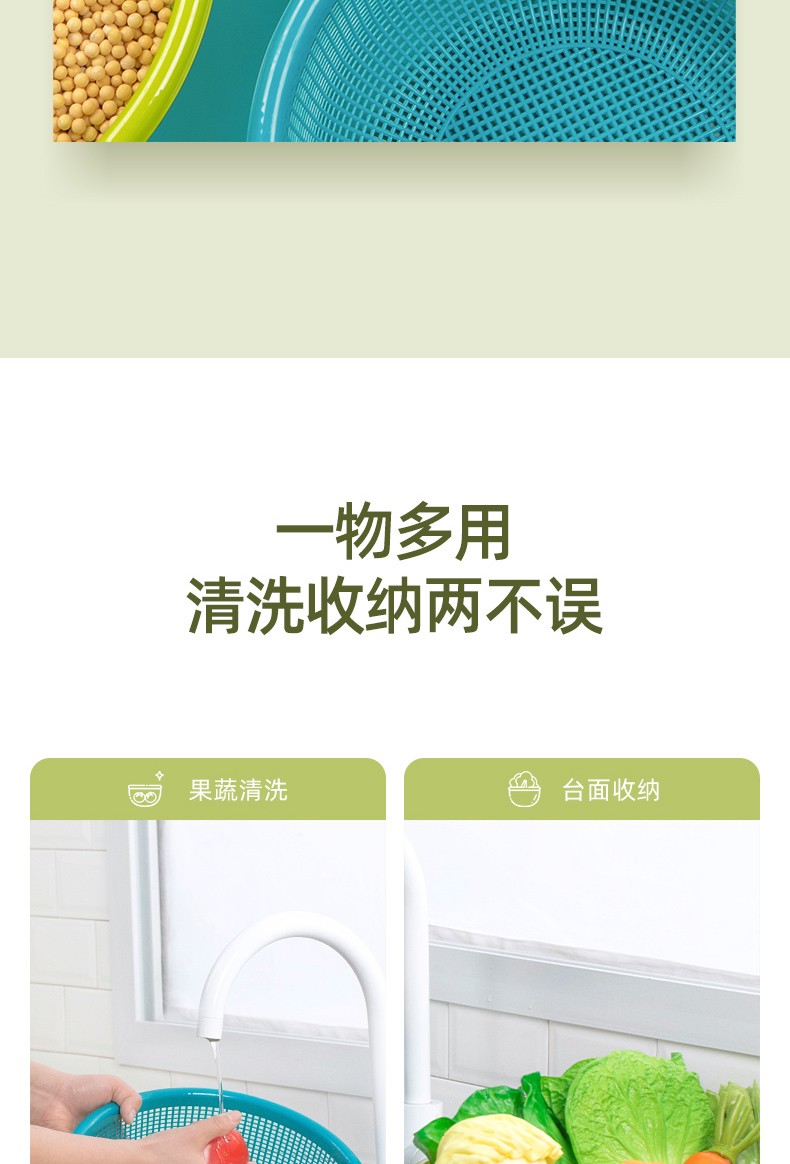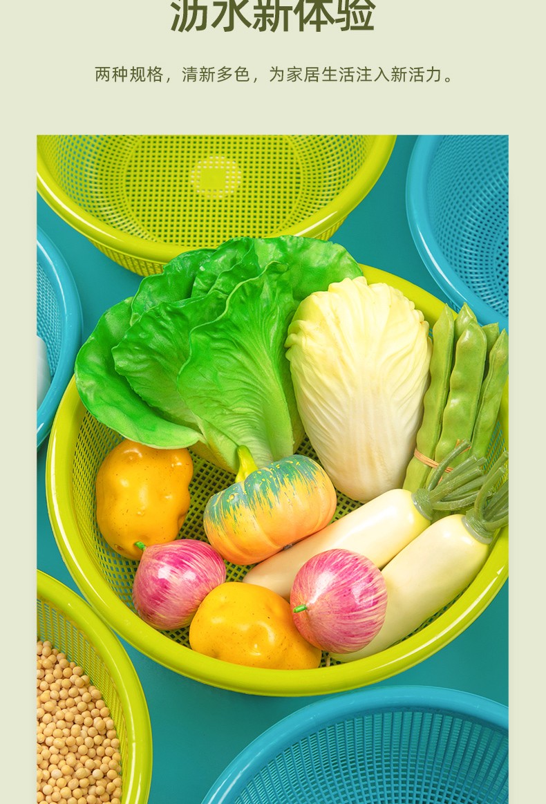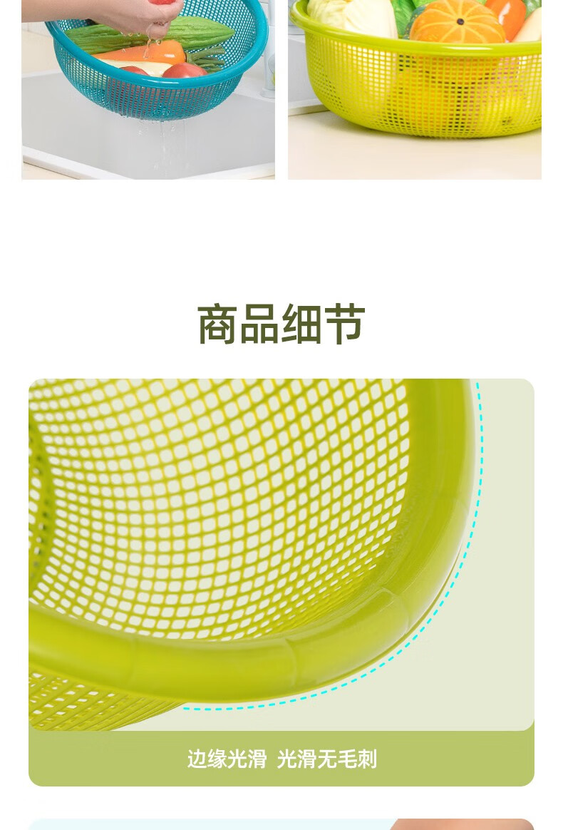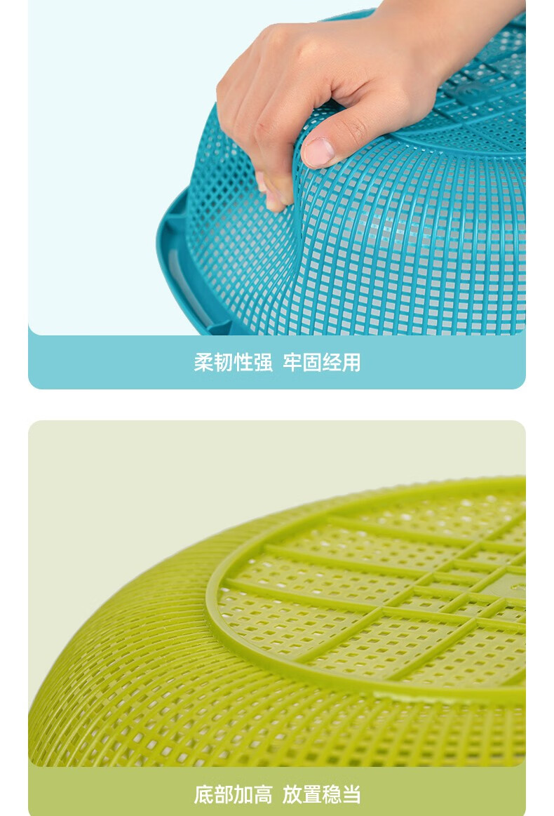 Camellia vegetable washing basket drain basket large plastic thickened water filter kitchen living room fruit basin basket vegetable basin green 1 piece - 30cm