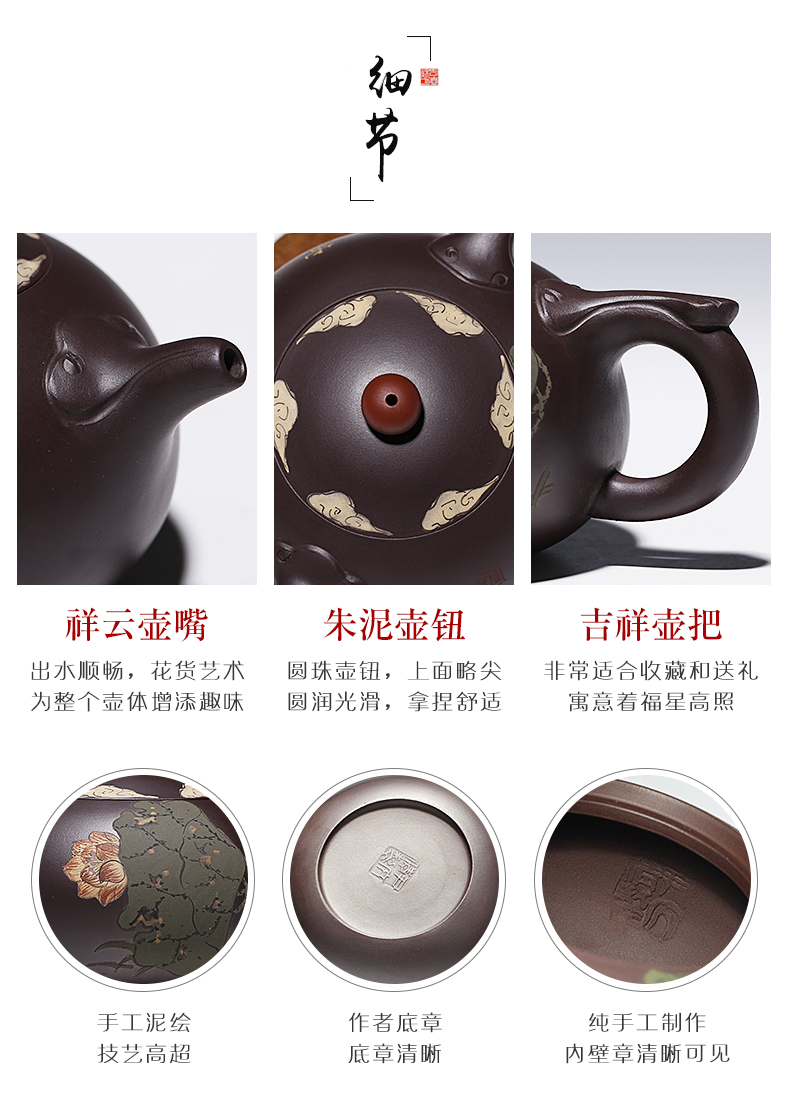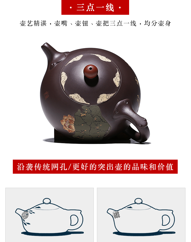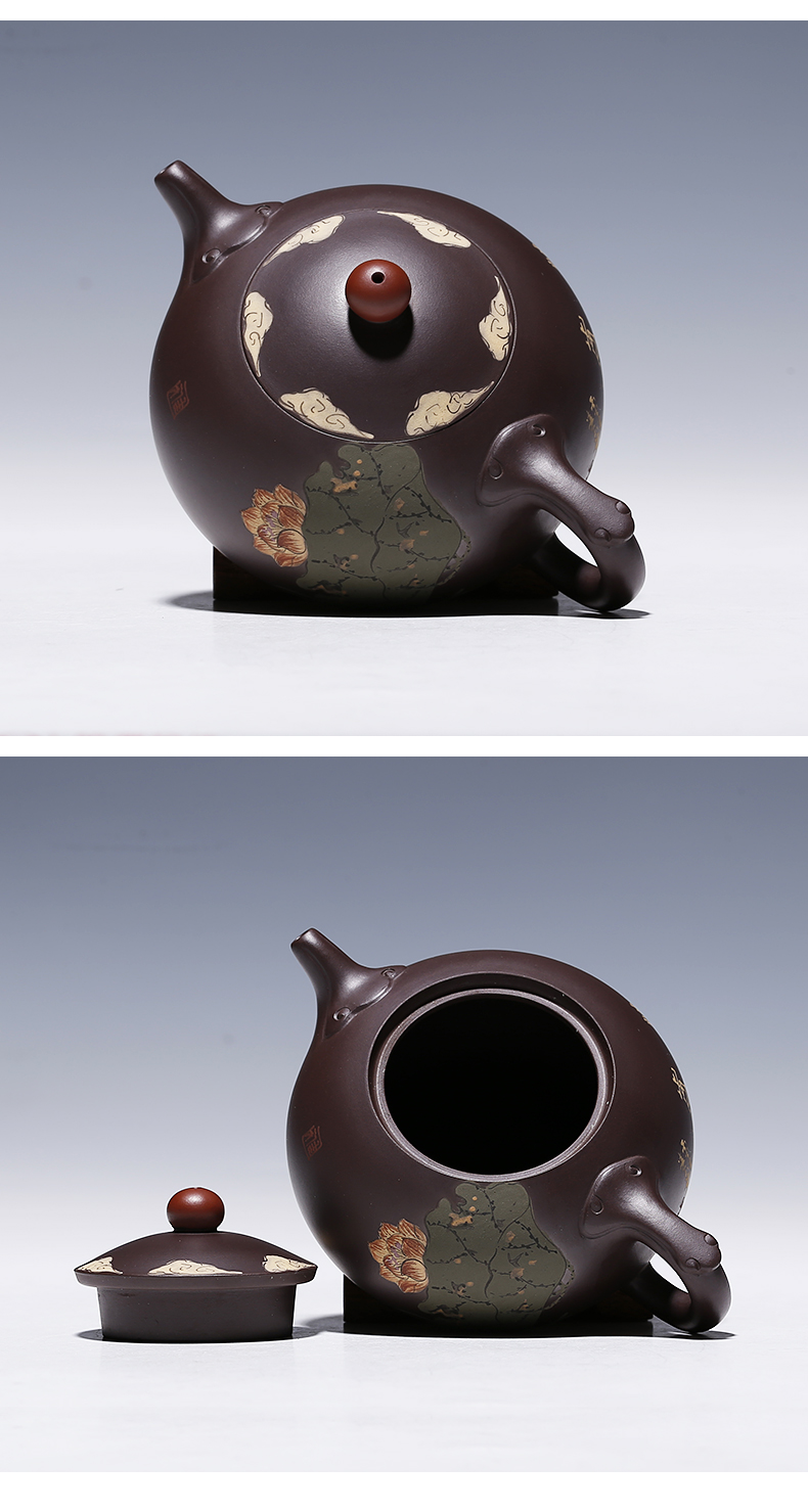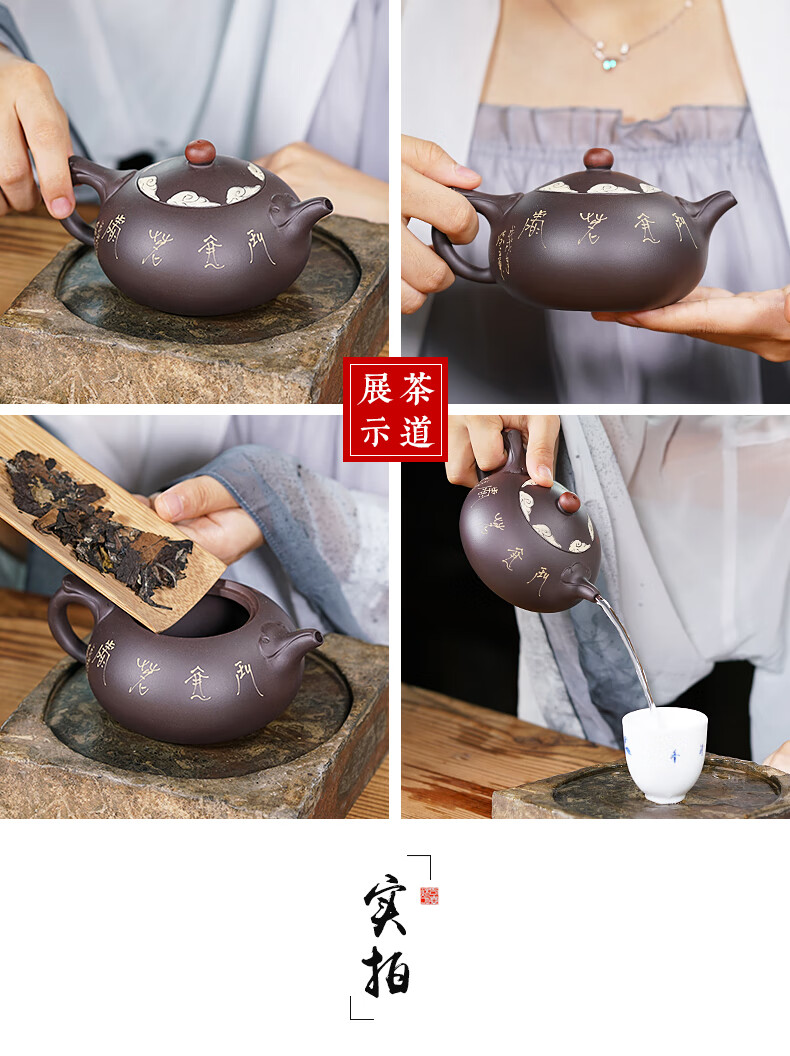 Famous Pot Qiuyue Yixing Zisha Pot Original Mine Old Purple Clay Famous Purely Handmade Teapot Kung Fu Teapot Tea Set Enlightenment Xi Shi Rooster Clay Painting Free 2 Cups