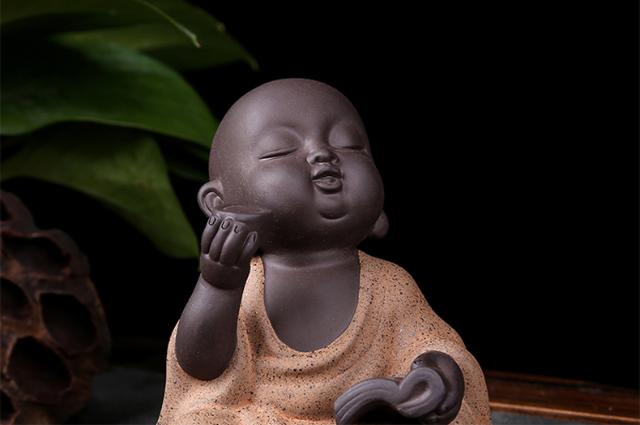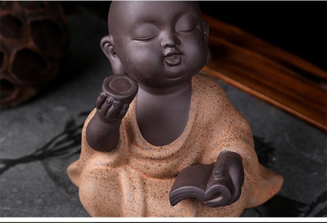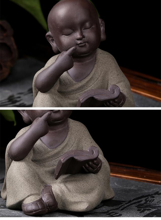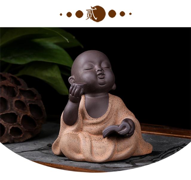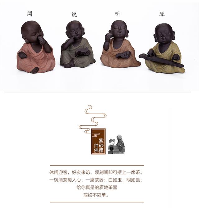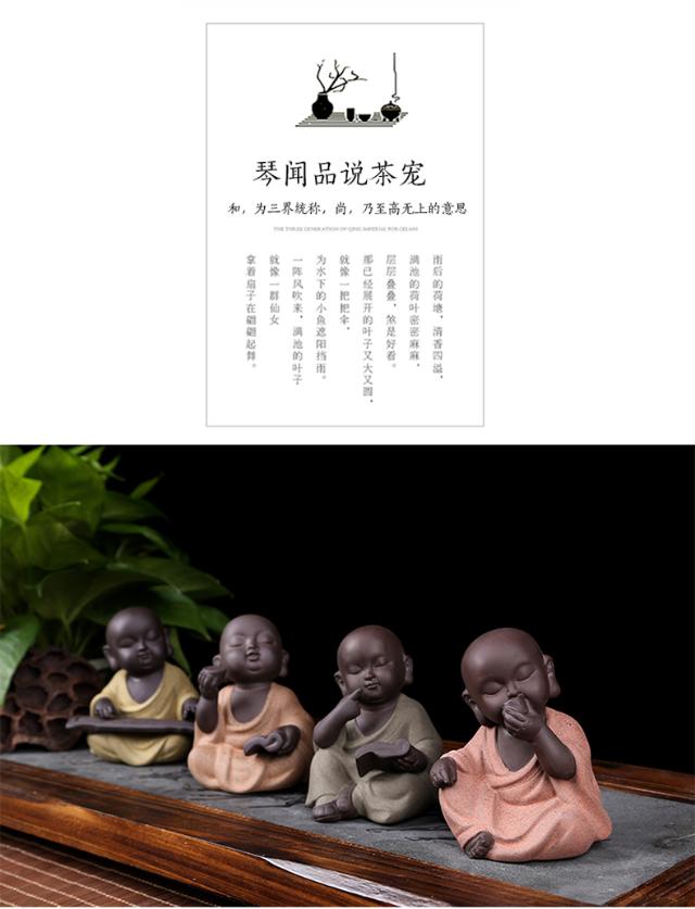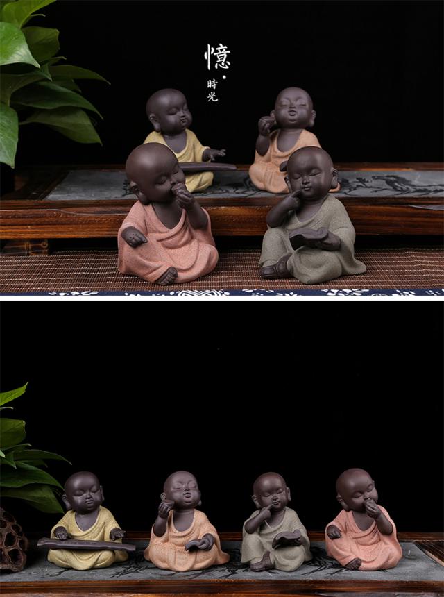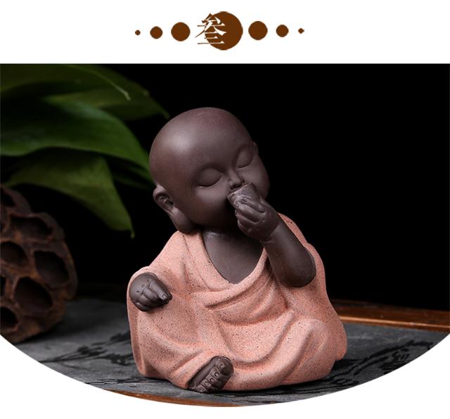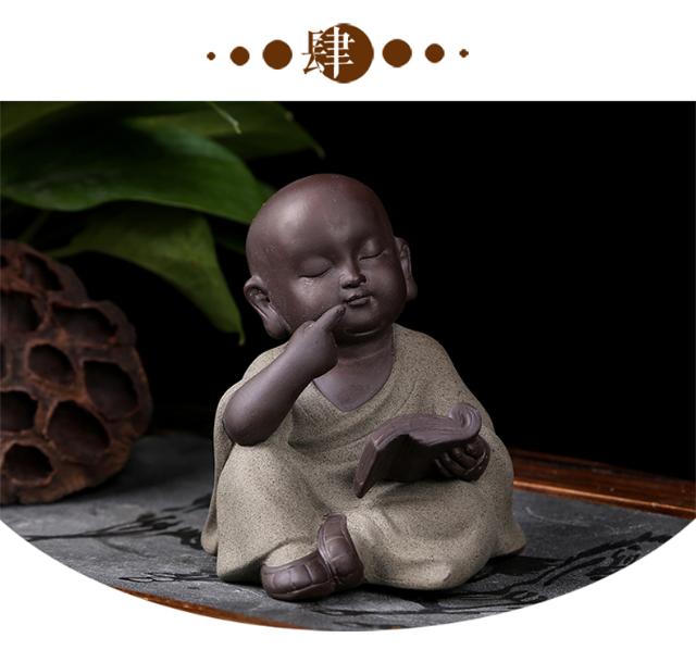 Ku-life purple sand tea pet ornaments little monk tea play colored sand pottery tea set ornaments tea ceremony accessories four pack