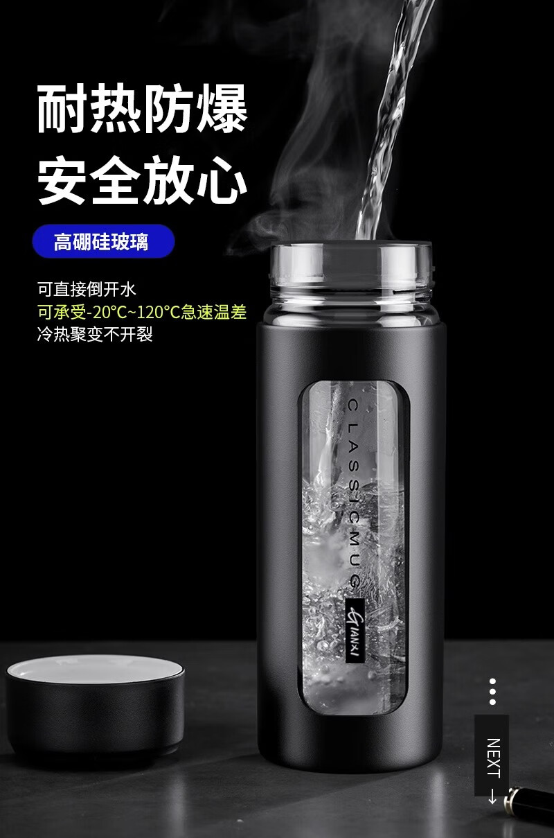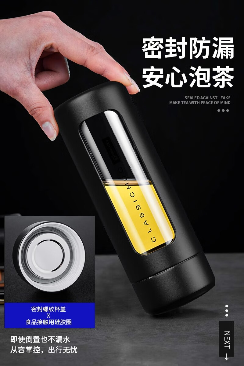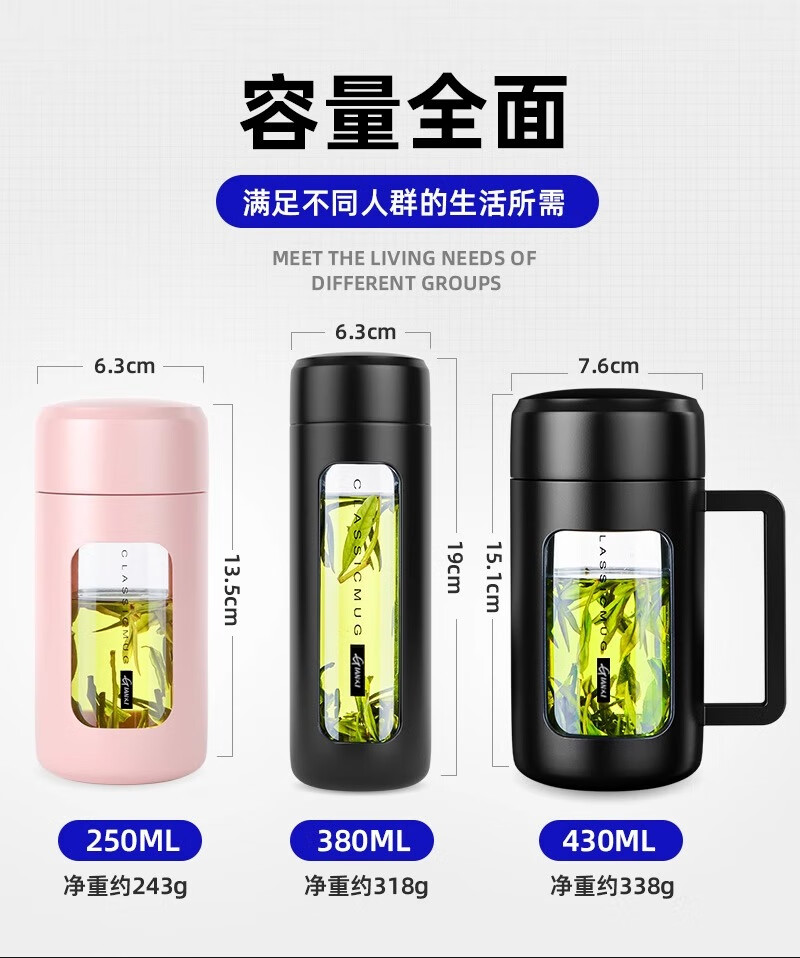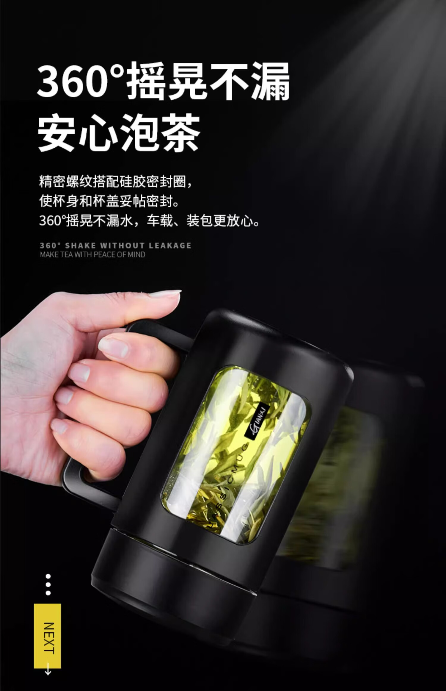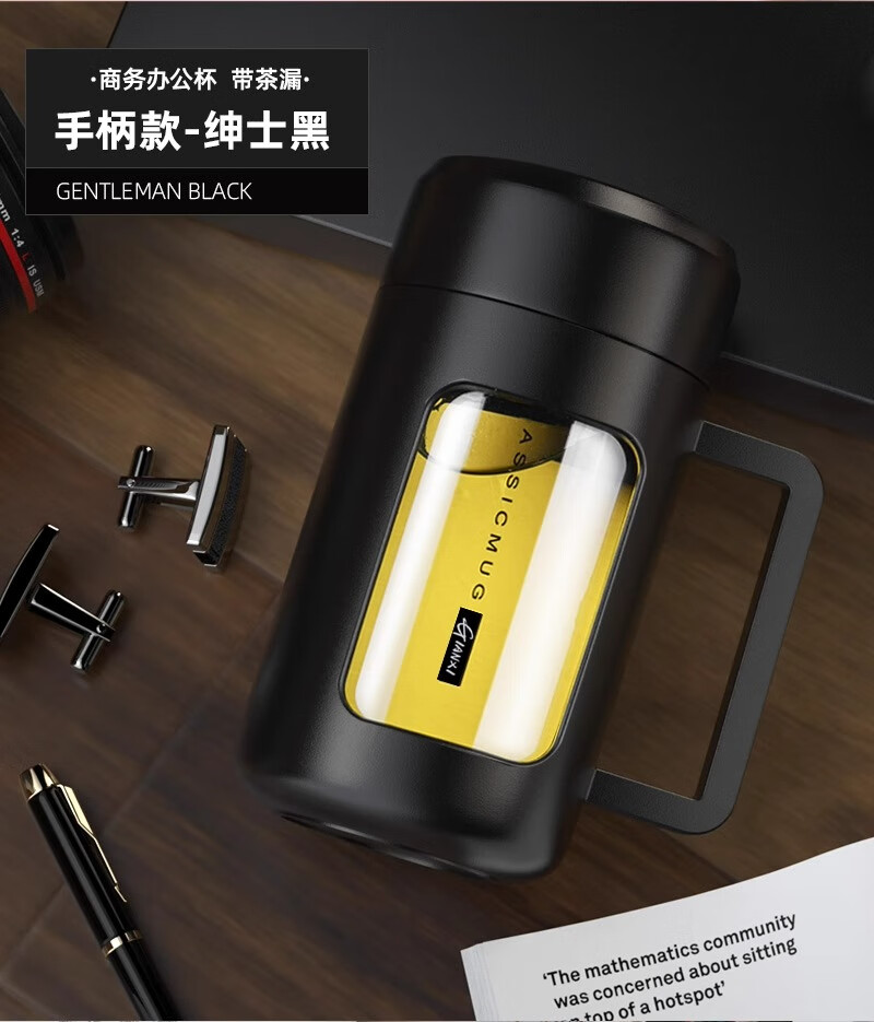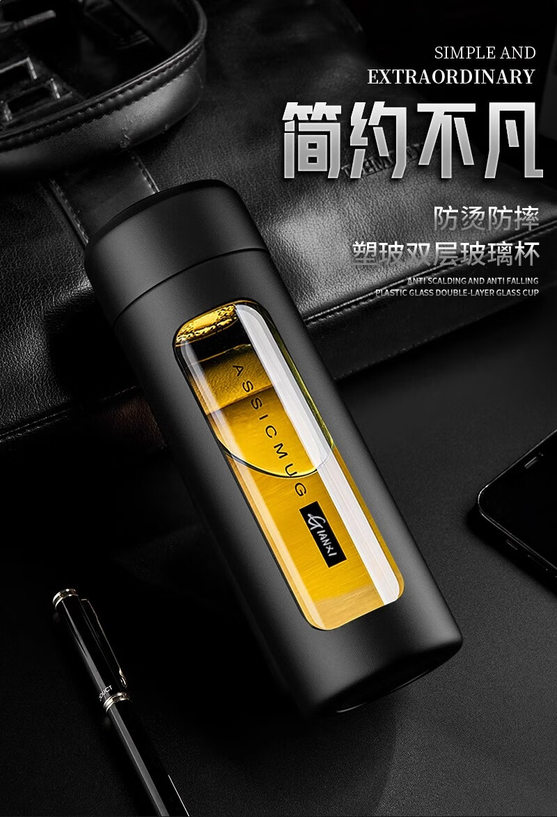 Tianxi (TIANXI) glass plastic cup for men and women, tea cup, tea water separation cup, portable office water cup, black 380ml