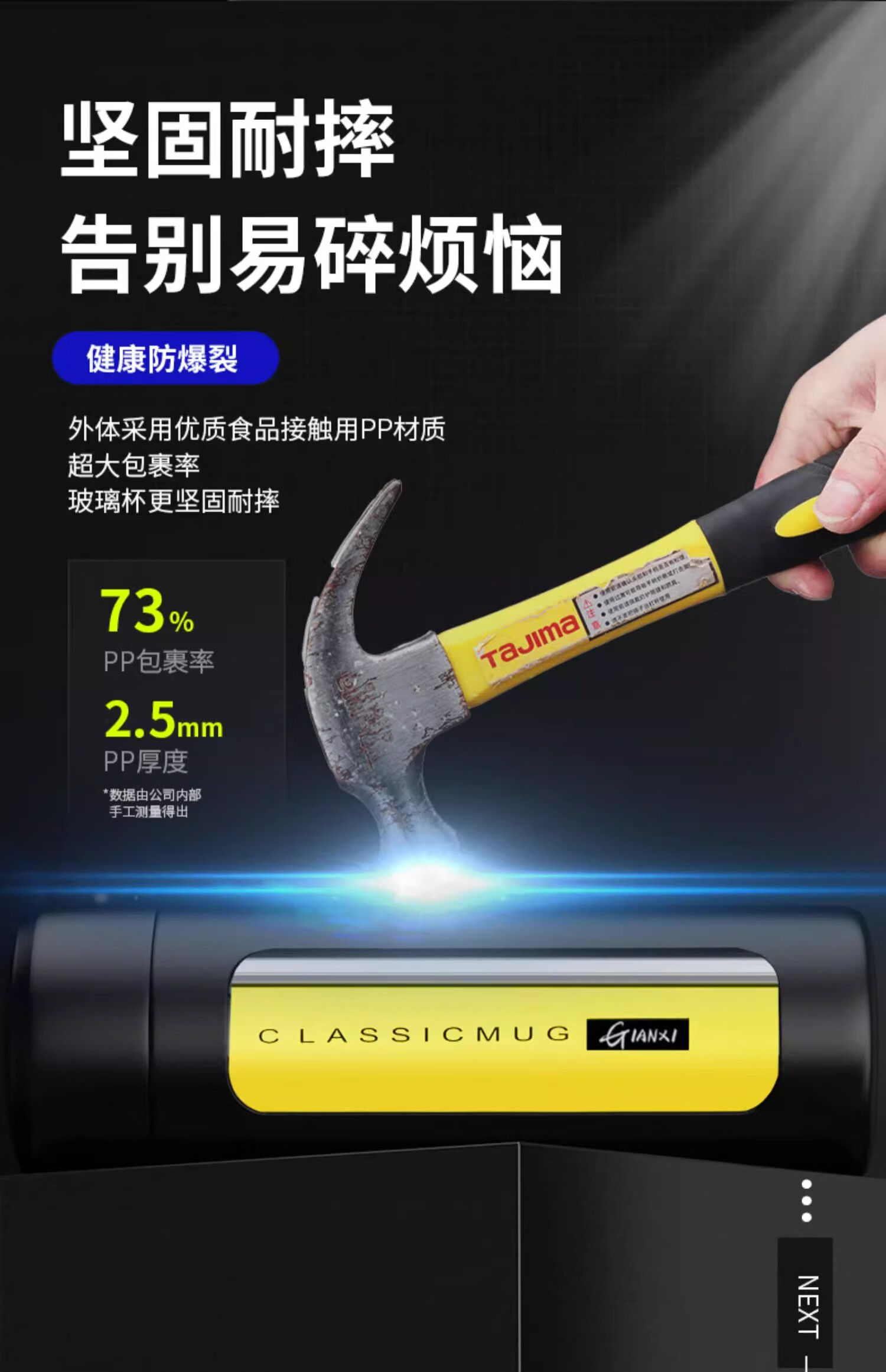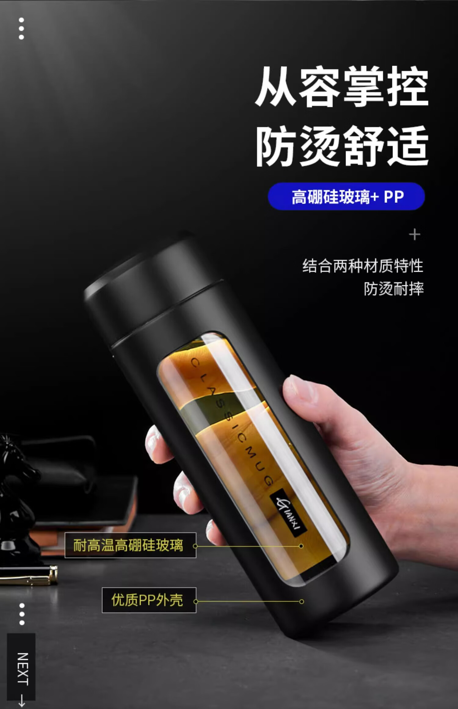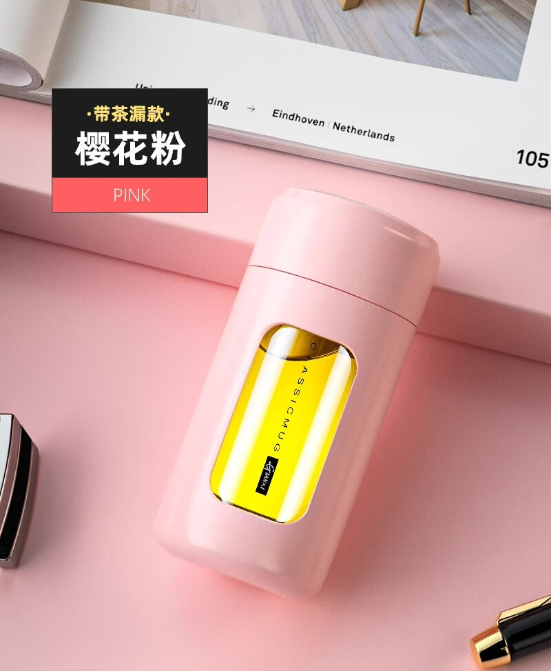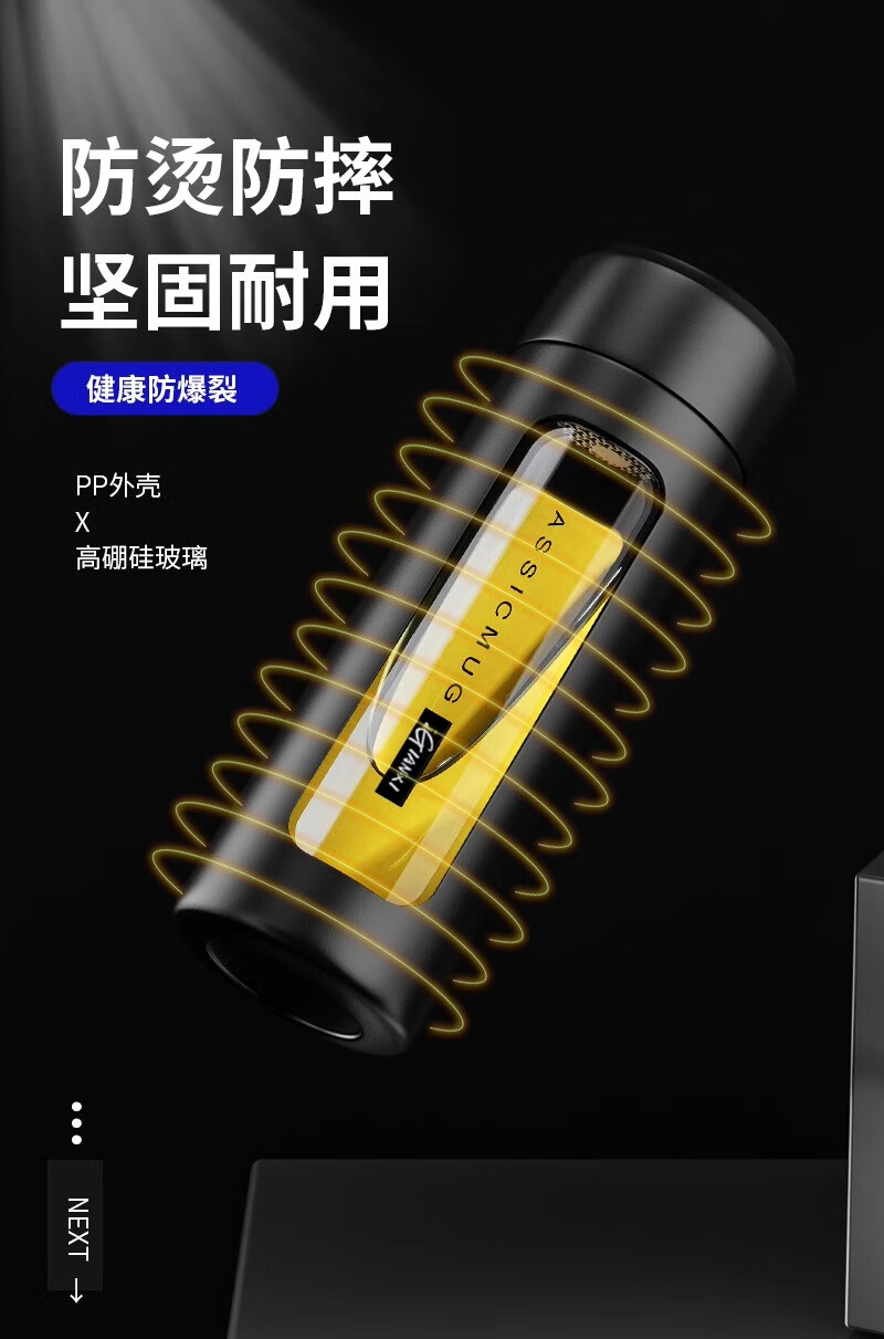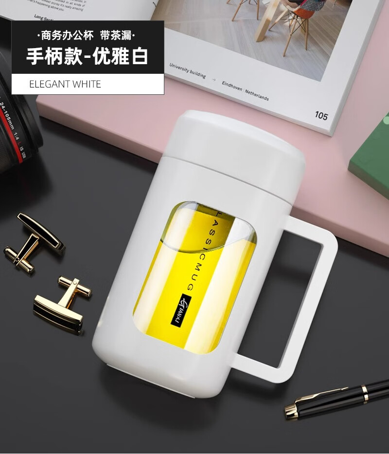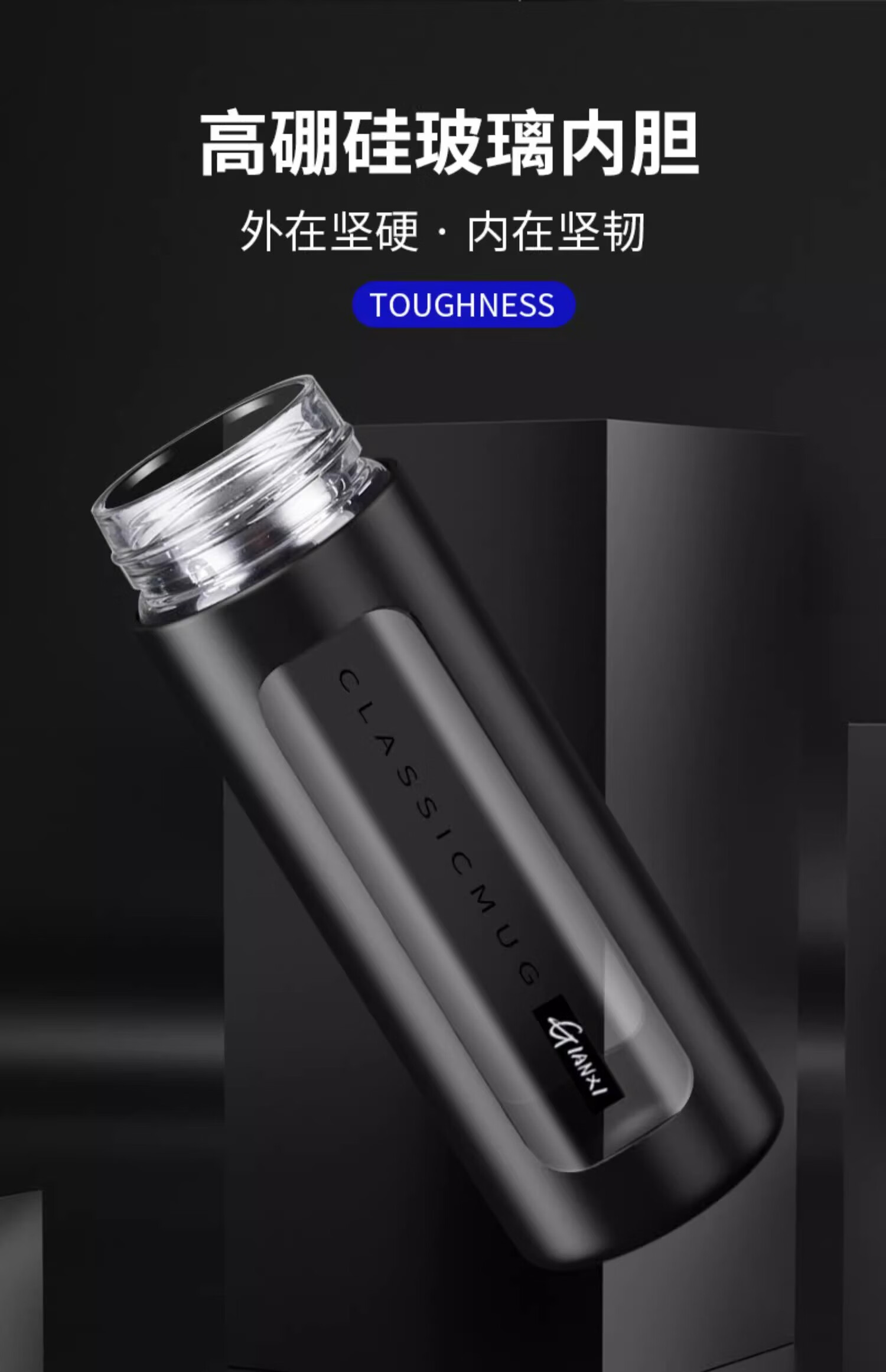 Tianxi (TIANXI) glass plastic cup for men and women, tea cup, tea water separation cup, portable office water cup, black 380ml