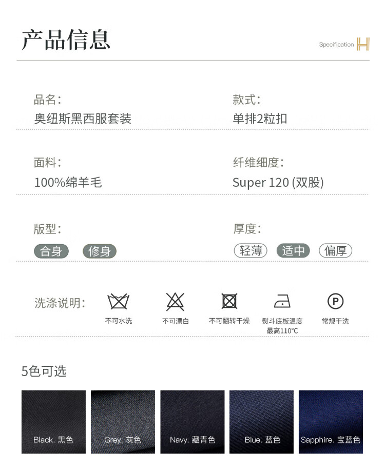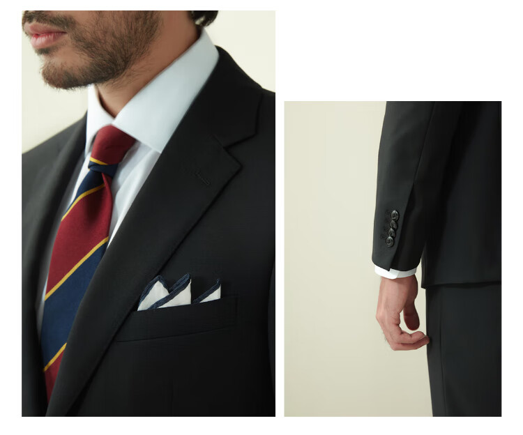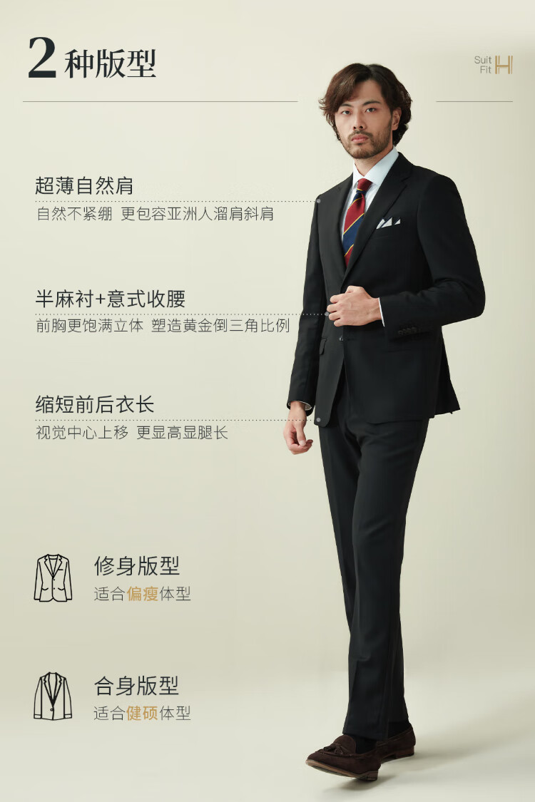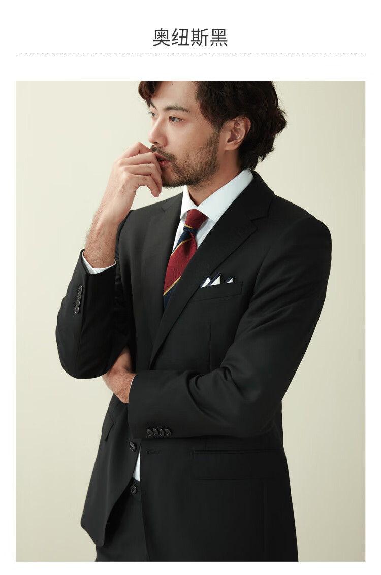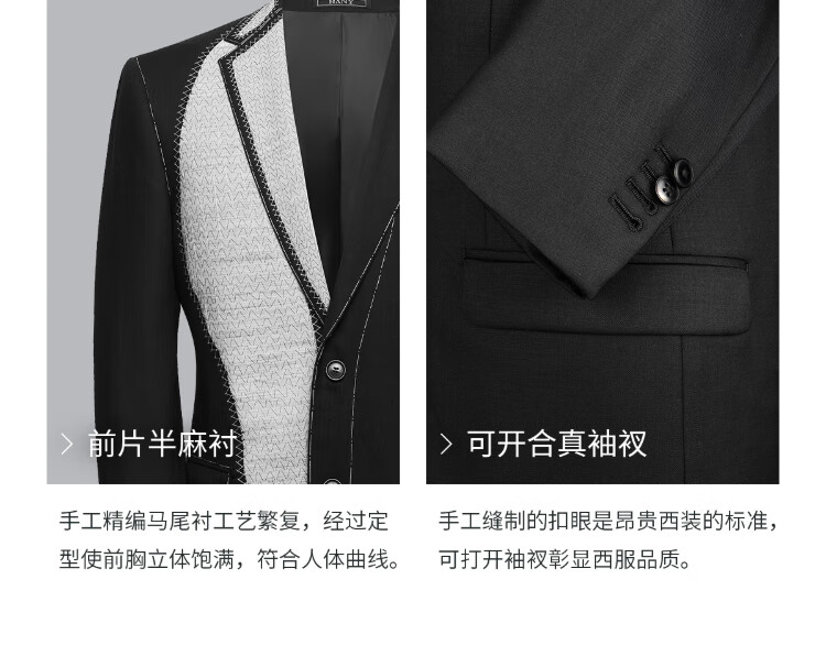 Hany (HANY) high-end craftsmanship pure wool suit suit for men's wedding, groom's wedding, black high-end business suit for men, Onius black, flat lapel 7.8CM, fitted version 46 For trousers, please contact customer service to select the size