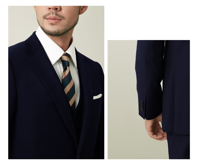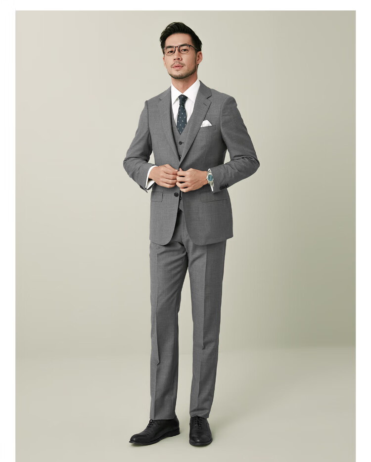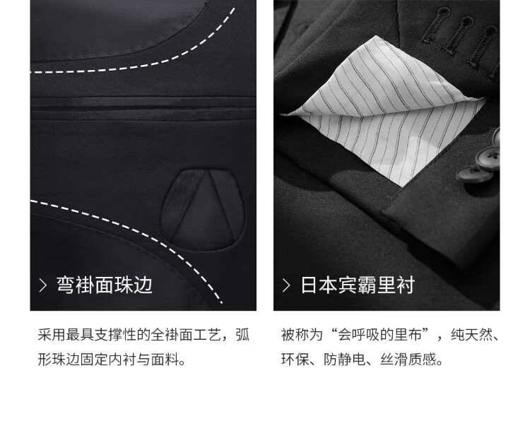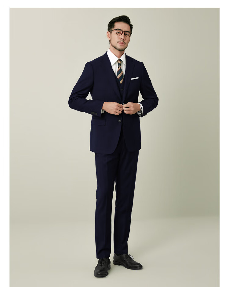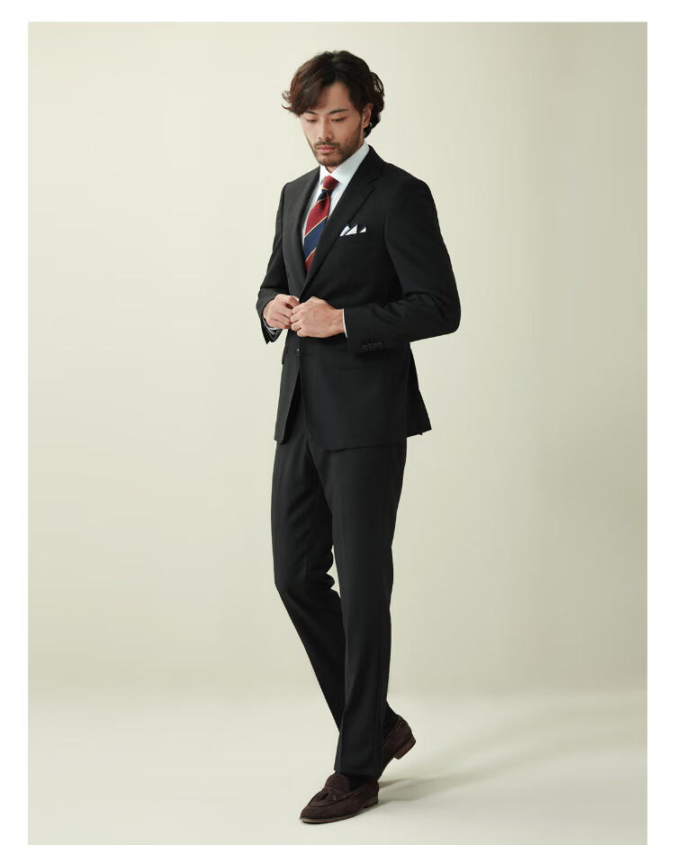 Hany (HANY) high-end craftsmanship pure wool suit suit for men's wedding, groom's wedding, black high-end business suit for men, Onius black, flat lapel 7.8CM, fitted version 46 For trousers, please contact customer service to select the size