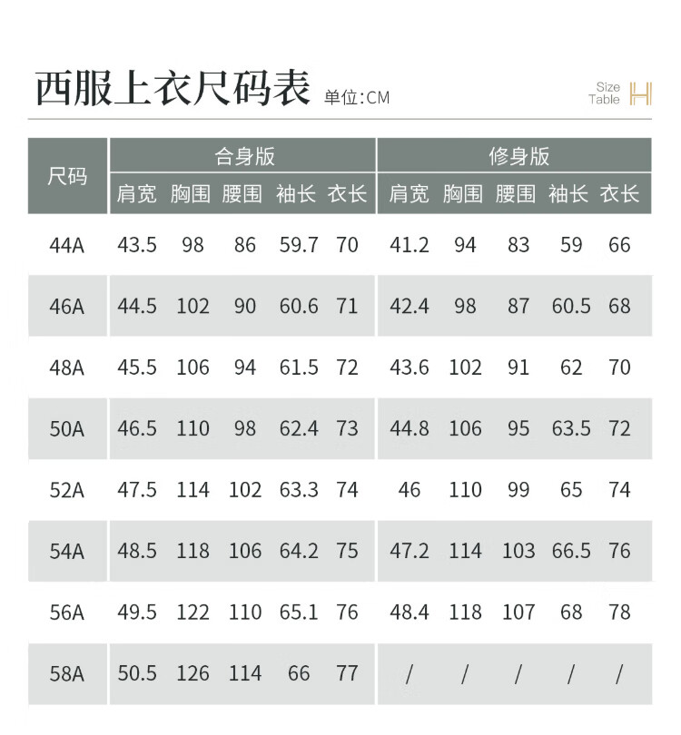 China (cm) 160-165/84-86 165-170 / 88-90 167-172 / 92-96 168-173 / 98-102 170-176 / 106-110