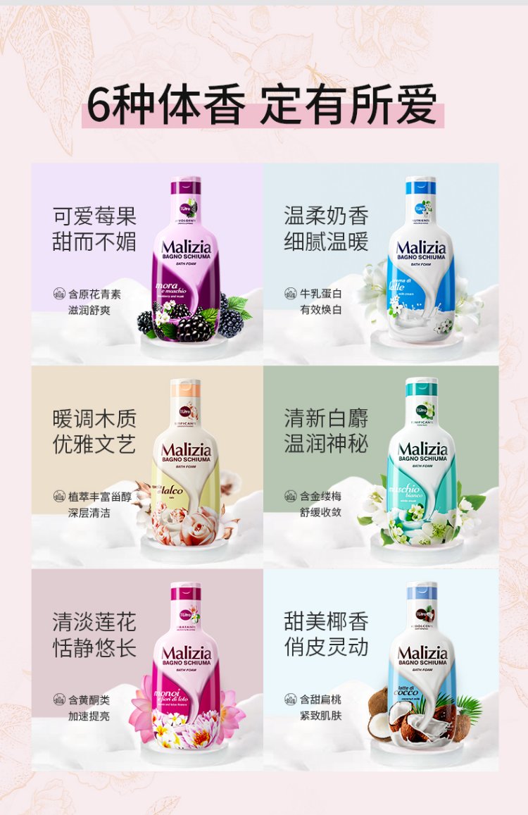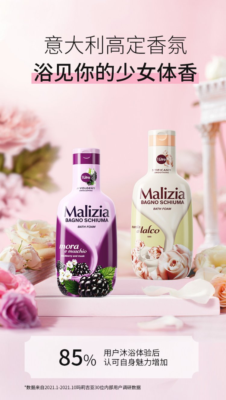 MALIZIA imported shower gel, long-lasting fragrance, 72 hours body fragrance 1L, moisturizing shower gel for men and women, No. 1 on the gold list