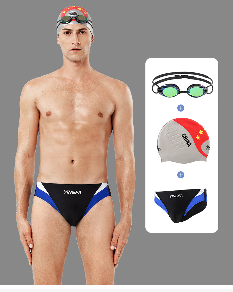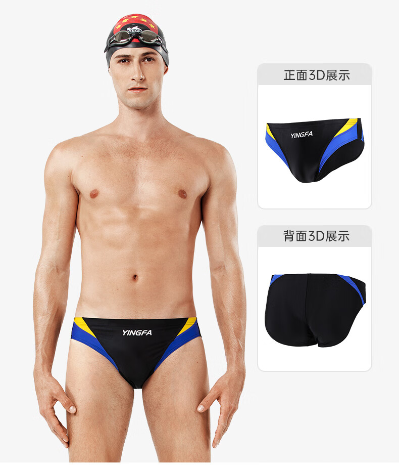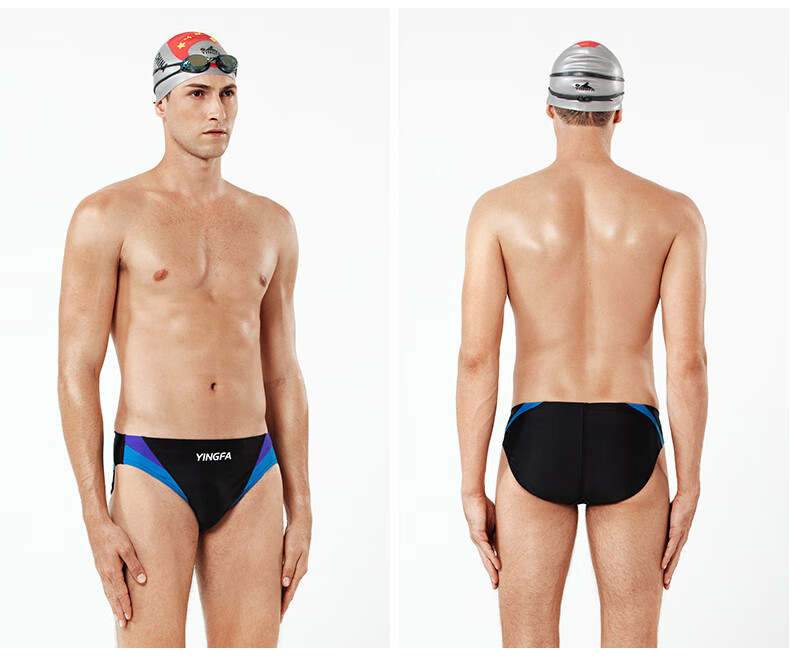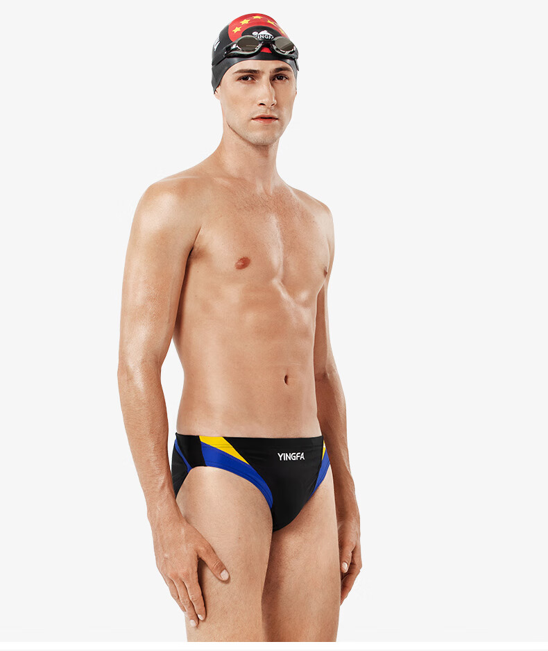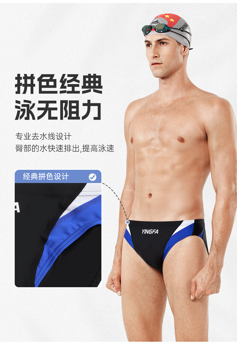 YINGFA men's professional swimming trunks, fashionable color matching low resistance swimming competition racing training swimming trunks 9462-1 black and blue and white 2XL (waist 86-90cm/33-35 size)
