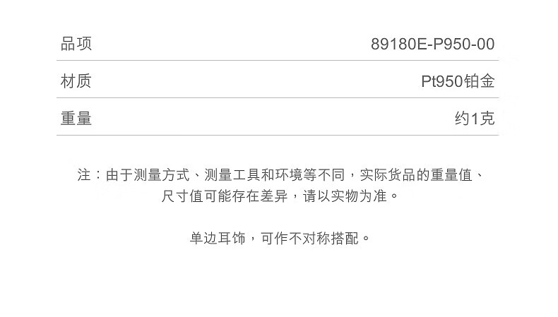 Chow Sang Sang Pt950 platinum earrings platinum earrings single-sided earrings 89180E pricing
