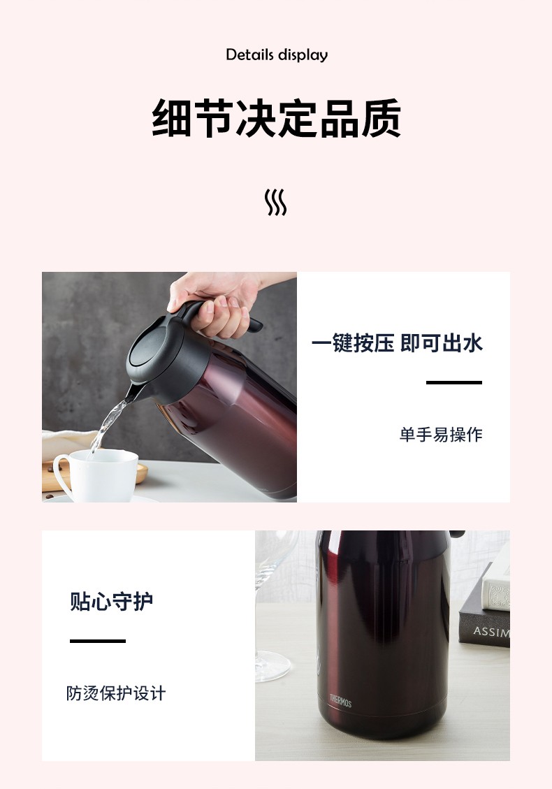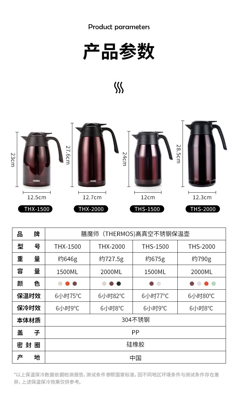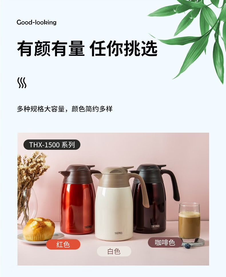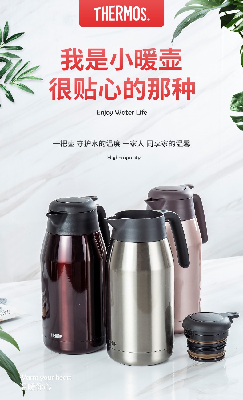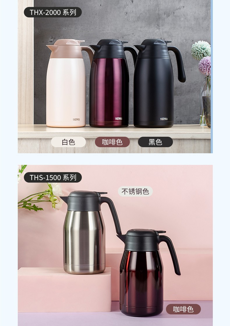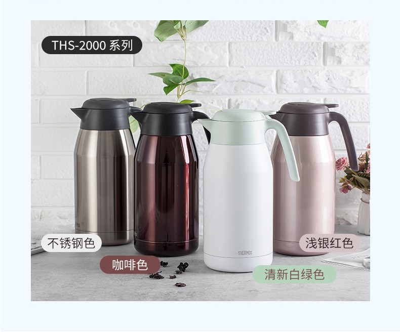 THERMOS thermos kettle household large-capacity office thermos thermos 2L men's and women's stainless steel vacuum kettle THS/THX THS-2000 fresh white and green 2L