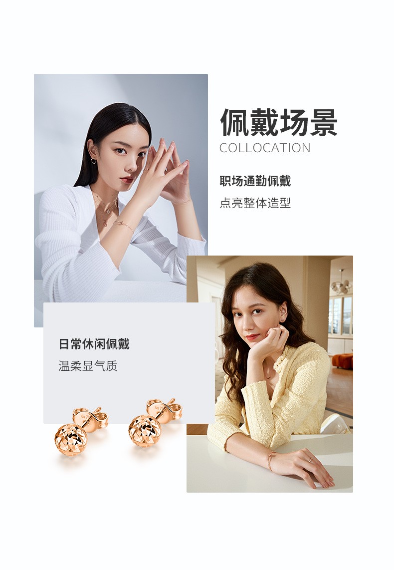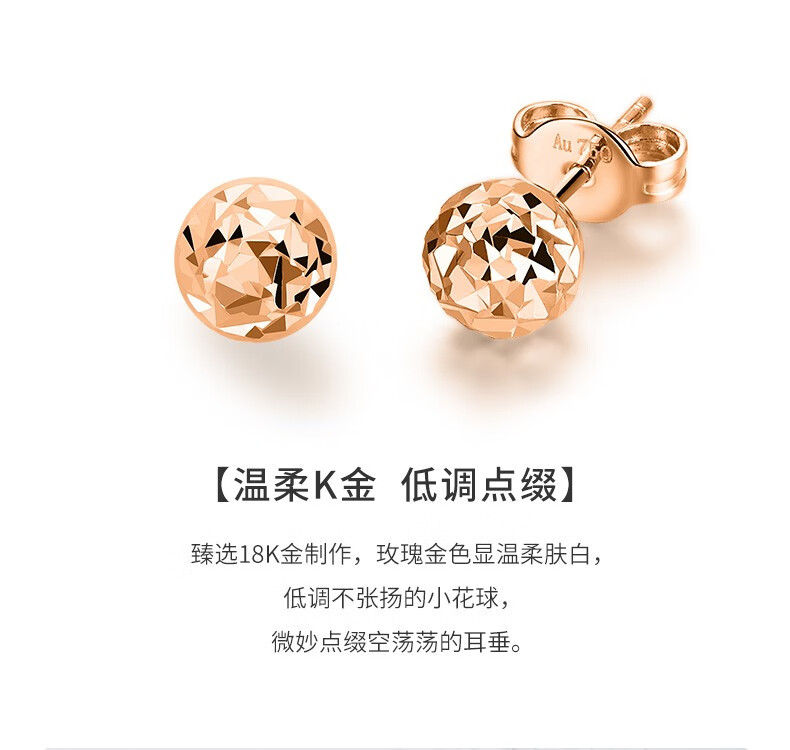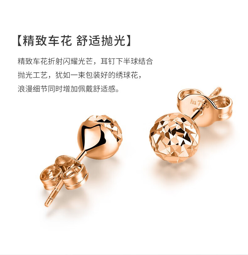 Xie Ruilin (TSL) 18K gold earrings rose gold spherical color gold earrings and earrings for birthday girl BB033 Pricing (pair of earrings)