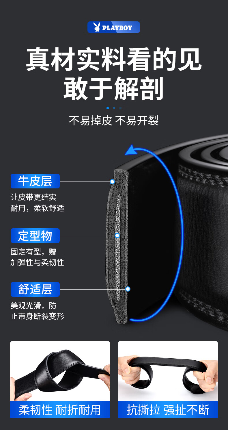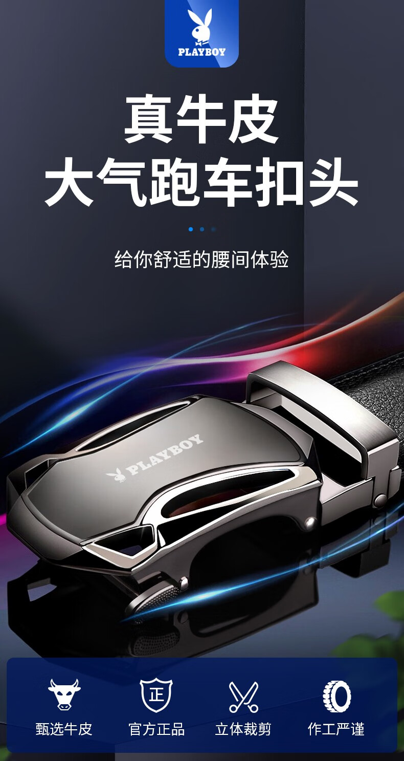 Playboy (PLAYBOY) belt men's genuine leather automatic buckle belt cowhide trouser belt young and middle-aged birthday gift for boyfriend and dad gift box business special model