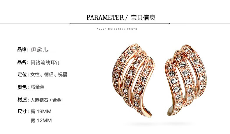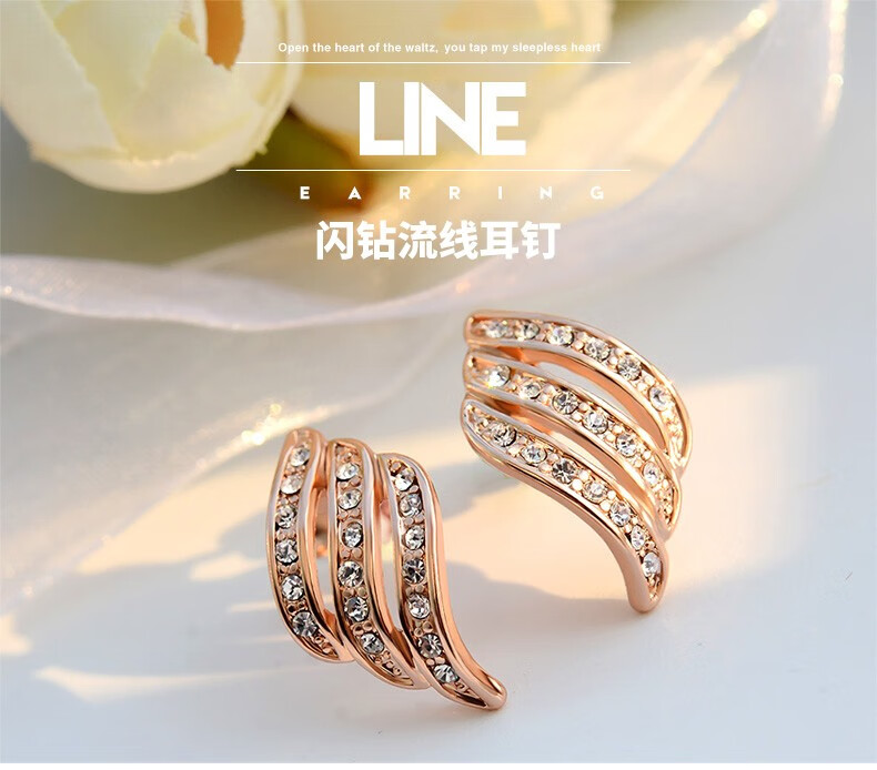 Idel earrings for women, sparkling diamond rose gold, Korean temperament and personality, trendy earrings, earrings for women, simple and fresh ear bone E0245 rose gold sparkling diamond earrings